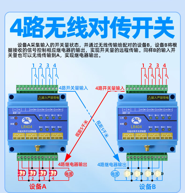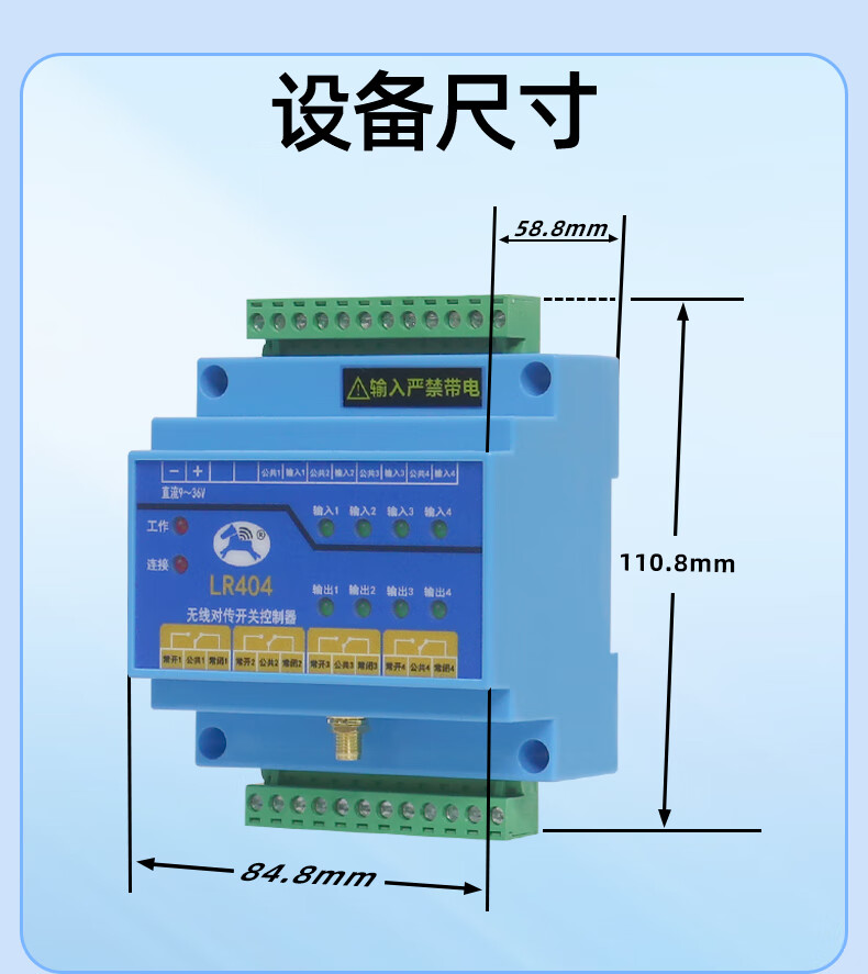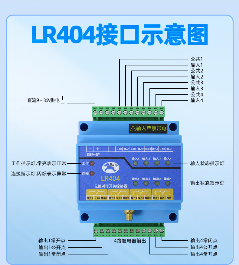 4-way on-transmission switch remote controller remote control relay quantity wireless transmission module transmitter and receiver LR404 standard (5 kilometers/4-way switch/DC9 36V supply