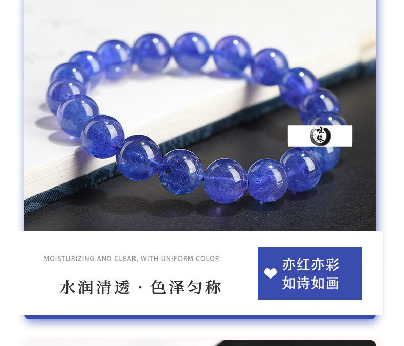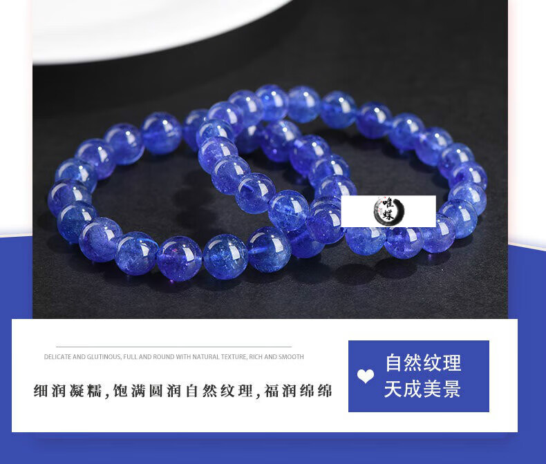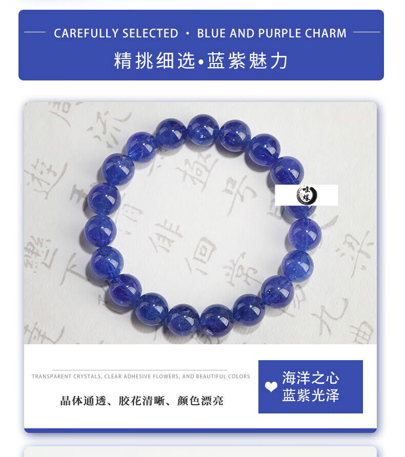 DRJEFUN collection-grade natural bracelet purple blue bracelet sapphire cordierite crystal gift for women boutique bracelet collection-grade tanzanite bracelet about 9mm bead diameter 1 carat