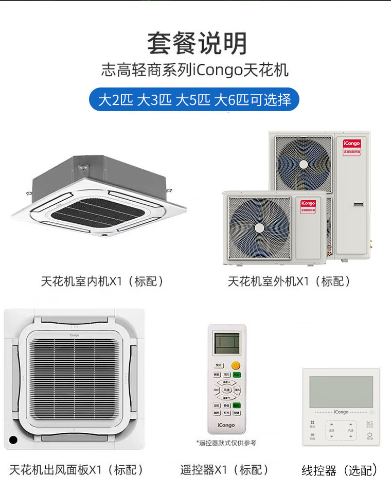 Chigo central air-conditioning large 2/3/5/6 ceiling machine commercial store office embedded ceiling single cooling and heating fixed frequency first-class energy efficiency ceiling patio machine large 5-horsepower cooling and heating frequency conversion first-class energy efficiency 220v