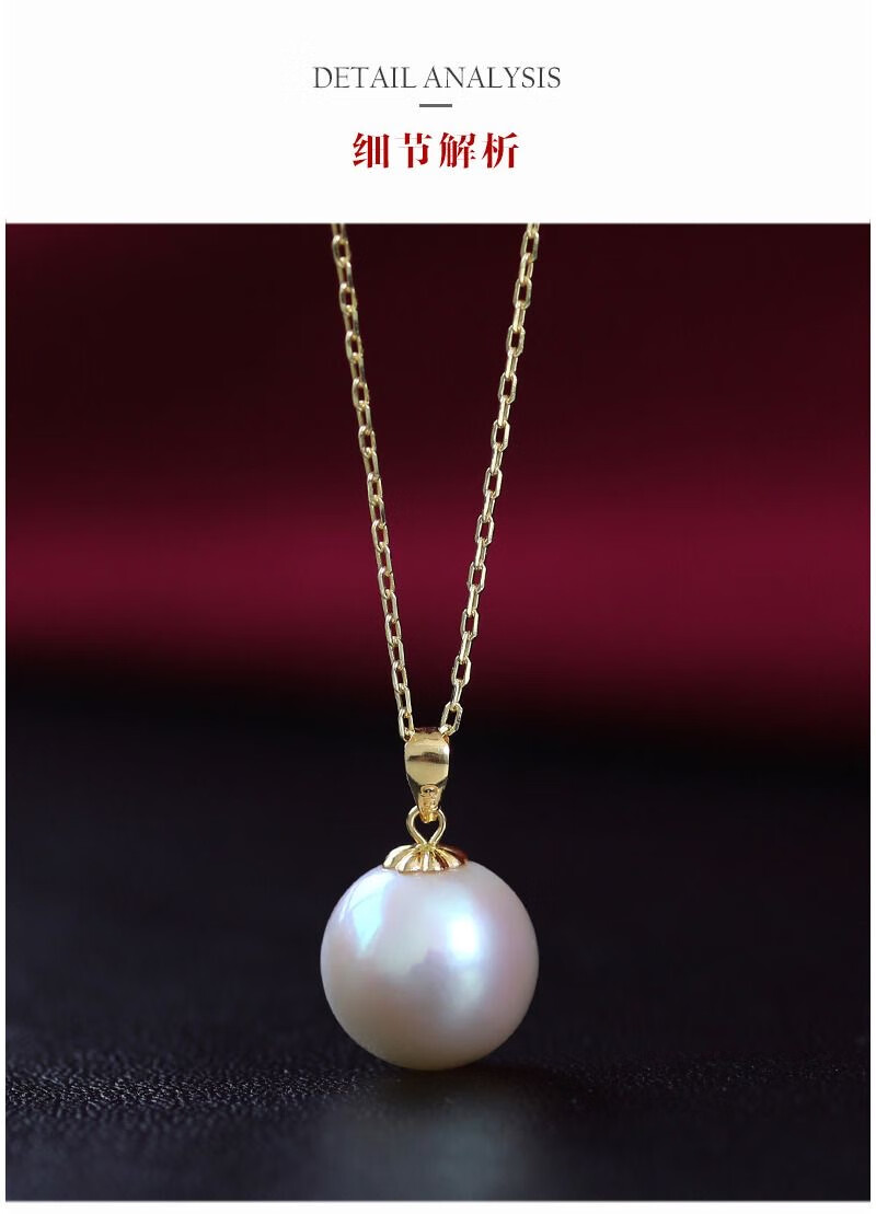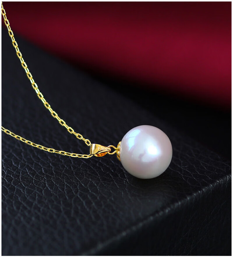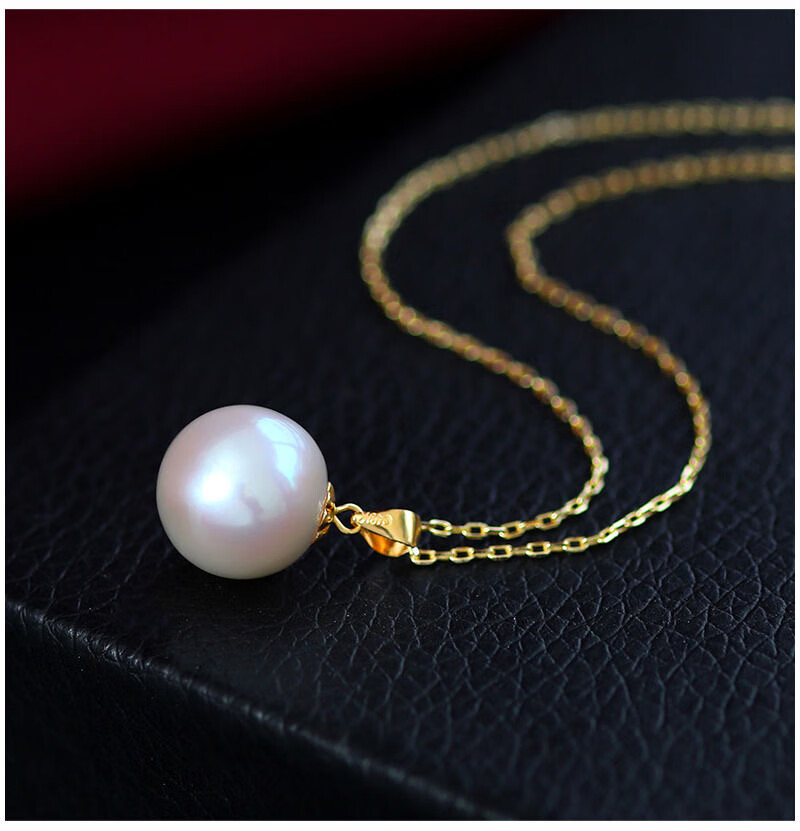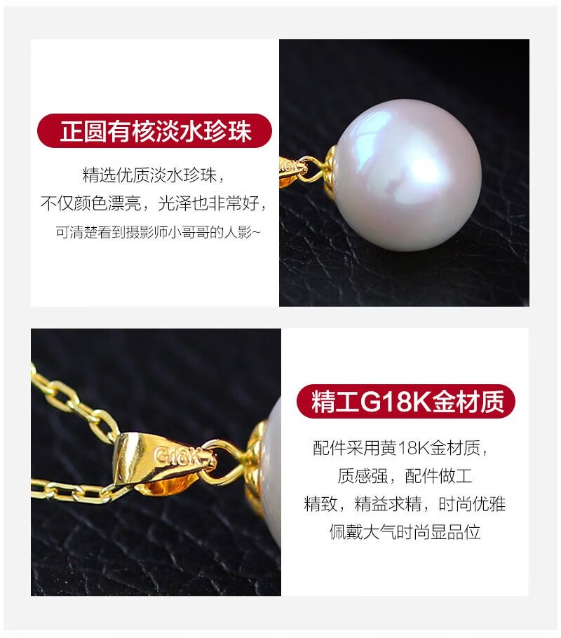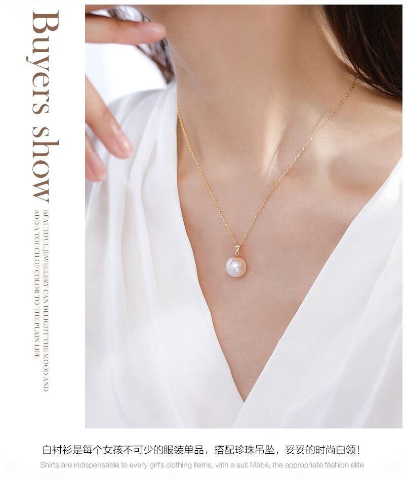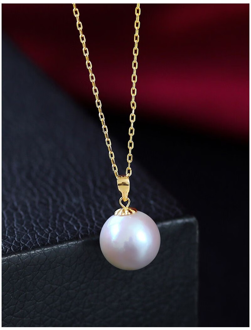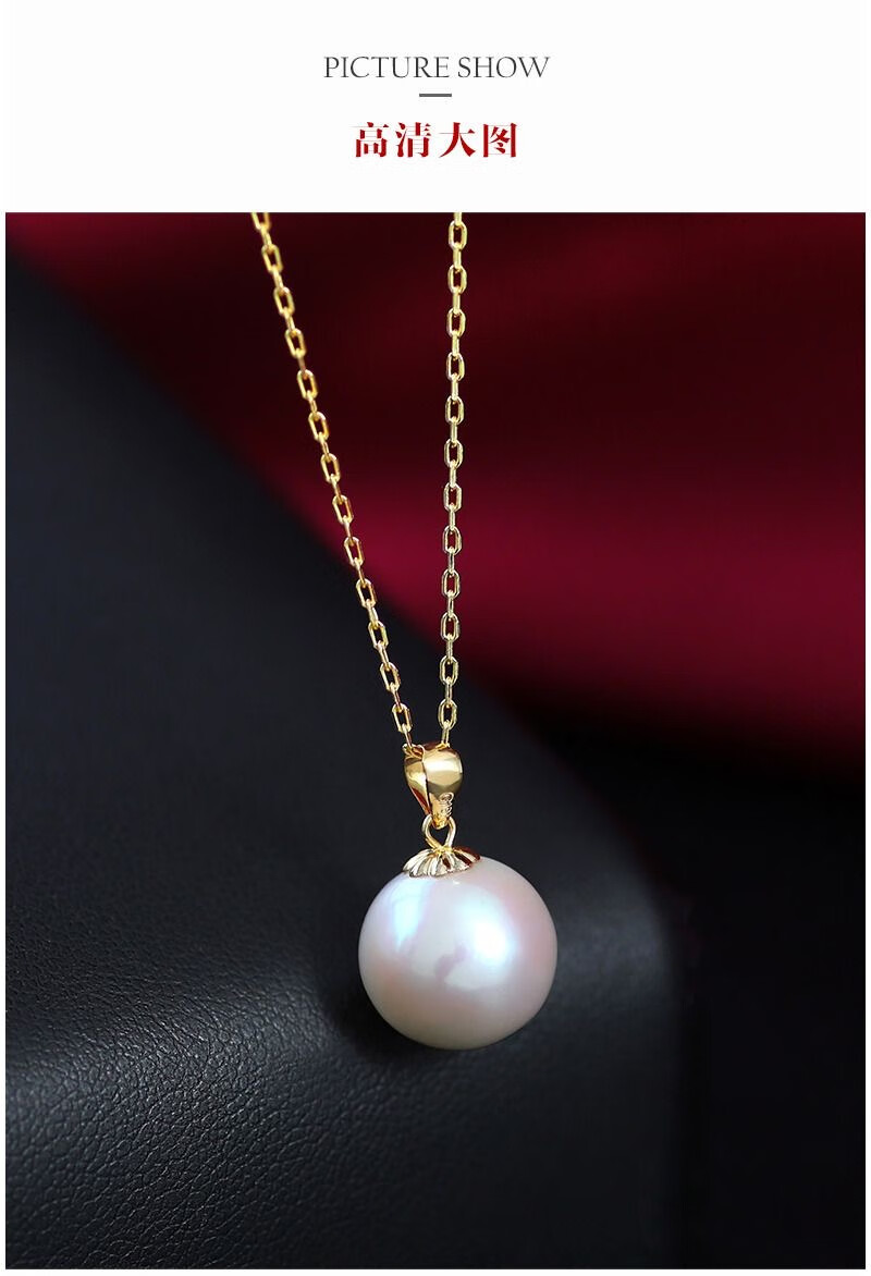 Zhuji freshwater pearls 18K gold melon seed buckle round white pendant temperament women fashion elegant holiday gift selected white round beads 11-12mm 18K gold melon seed buckle pendant + S925 silver gold chain