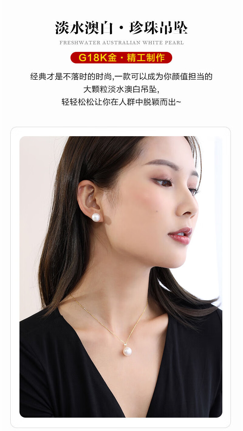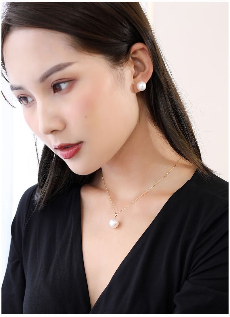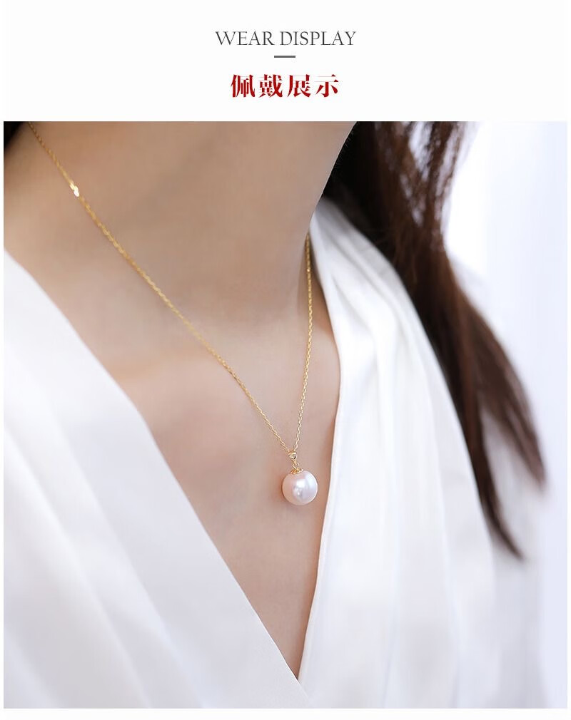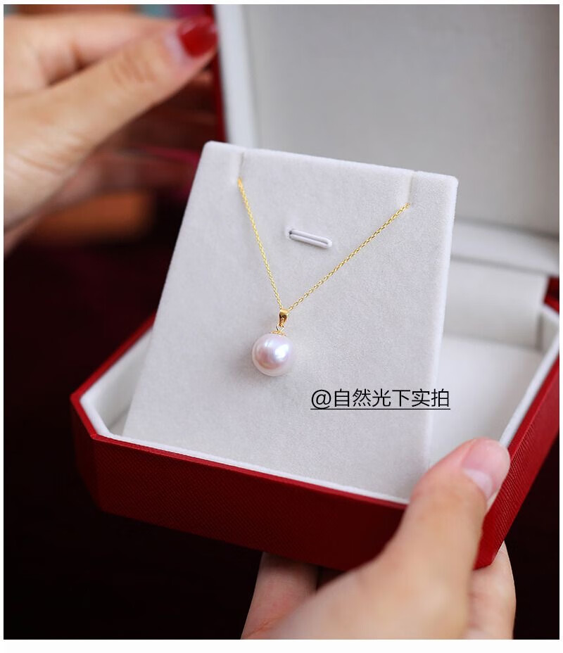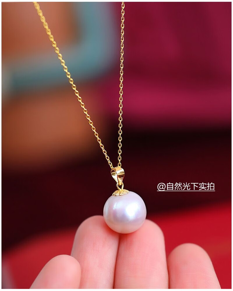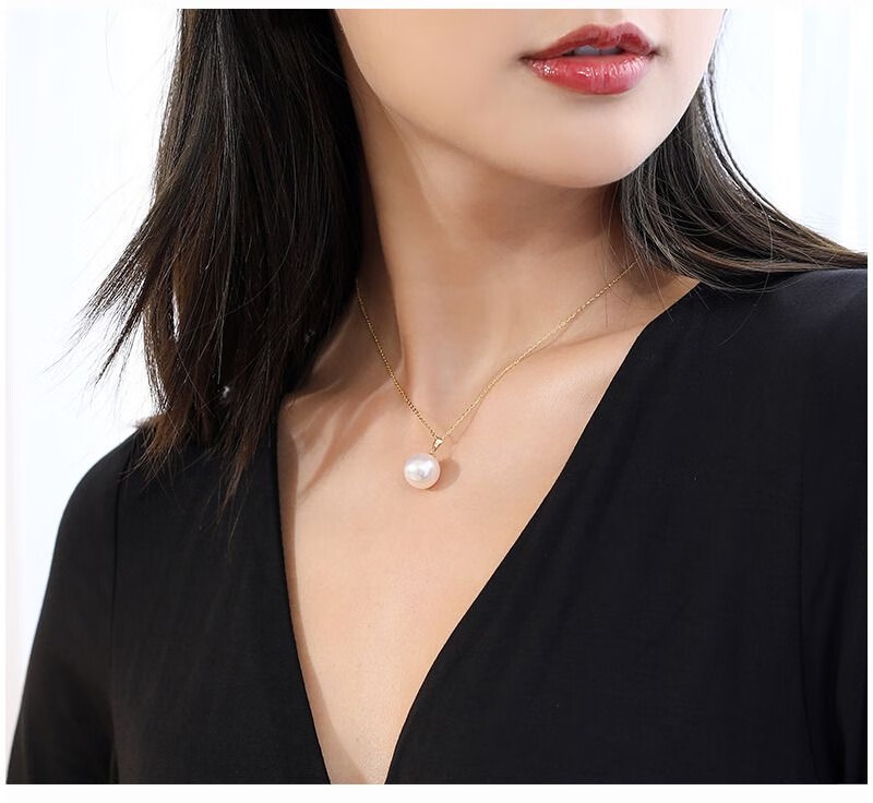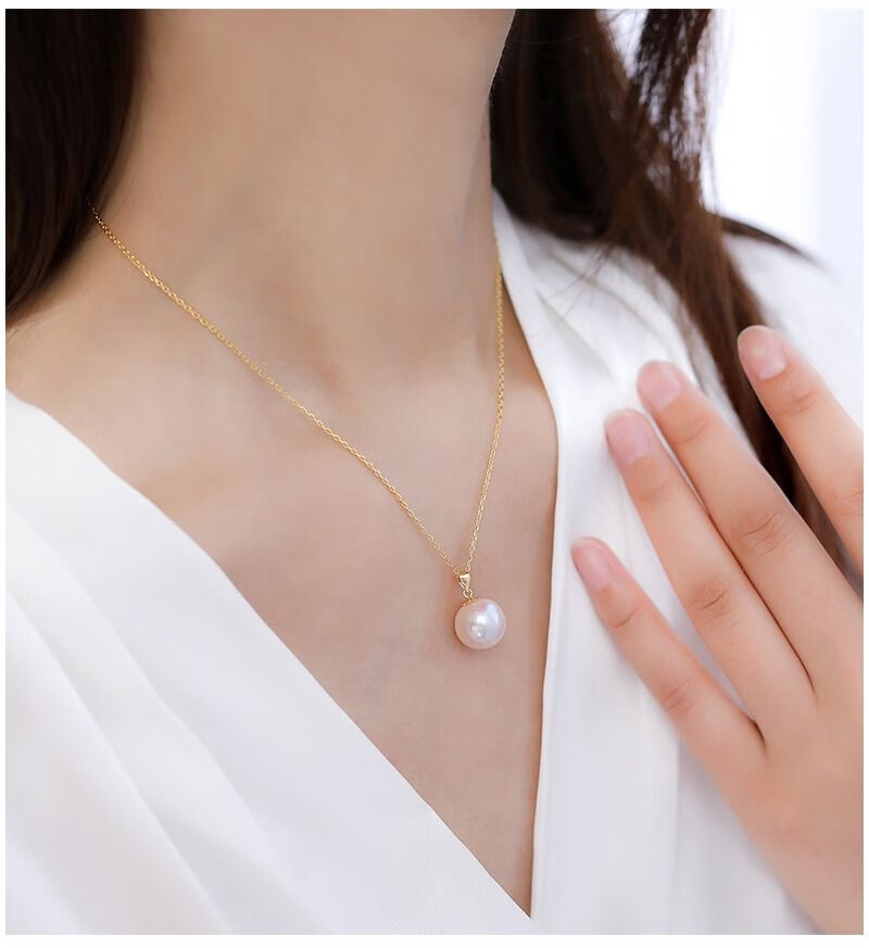 Zhuji freshwater pearls 18K gold melon seed buckle round white pendant temperament women fashion elegant holiday gift selected white round beads 11-12mm 18K gold melon seed buckle pendant + S925 silver gold chain