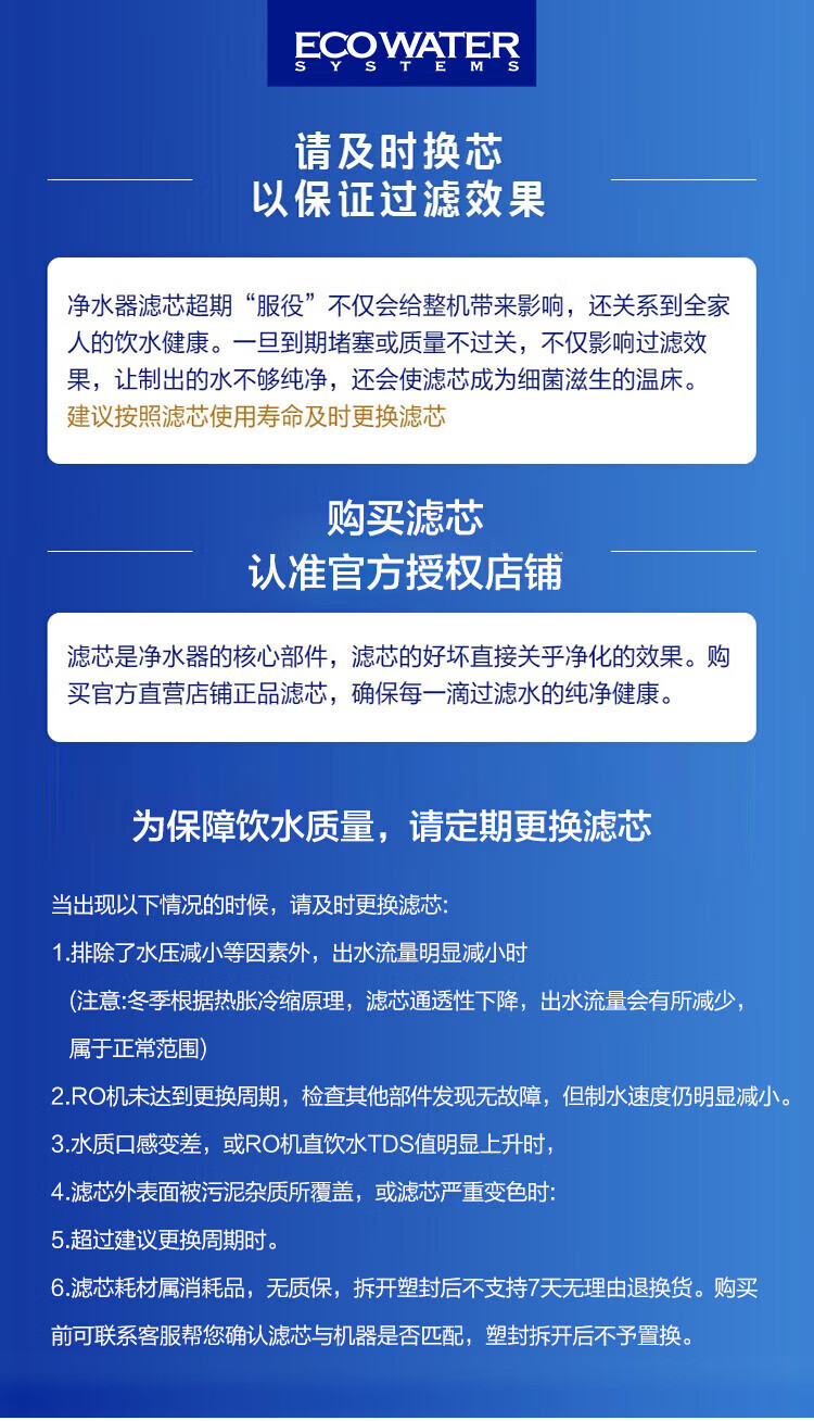 ECOWATER water purifier household kitchen water purifier original filter element RO1000-01 filter element (applicable to ERO152-3)