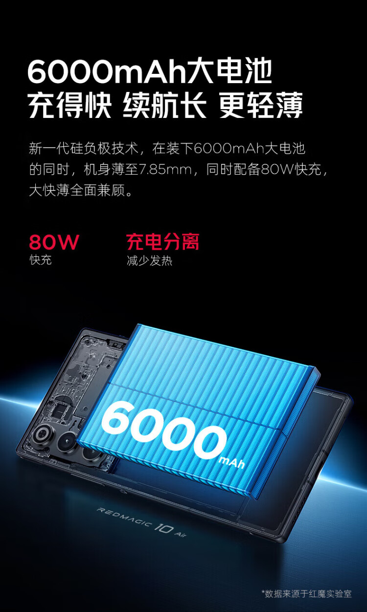 Nubia Red Magic 10 Air National Subsidy Third Generation Snapdragon 8 7.85mm Thin and Light Design 6000mAh Long Battery E-Sports Flagship Gaming Phone New 5G Product Shadow Black 16GB+512GB Official Standard