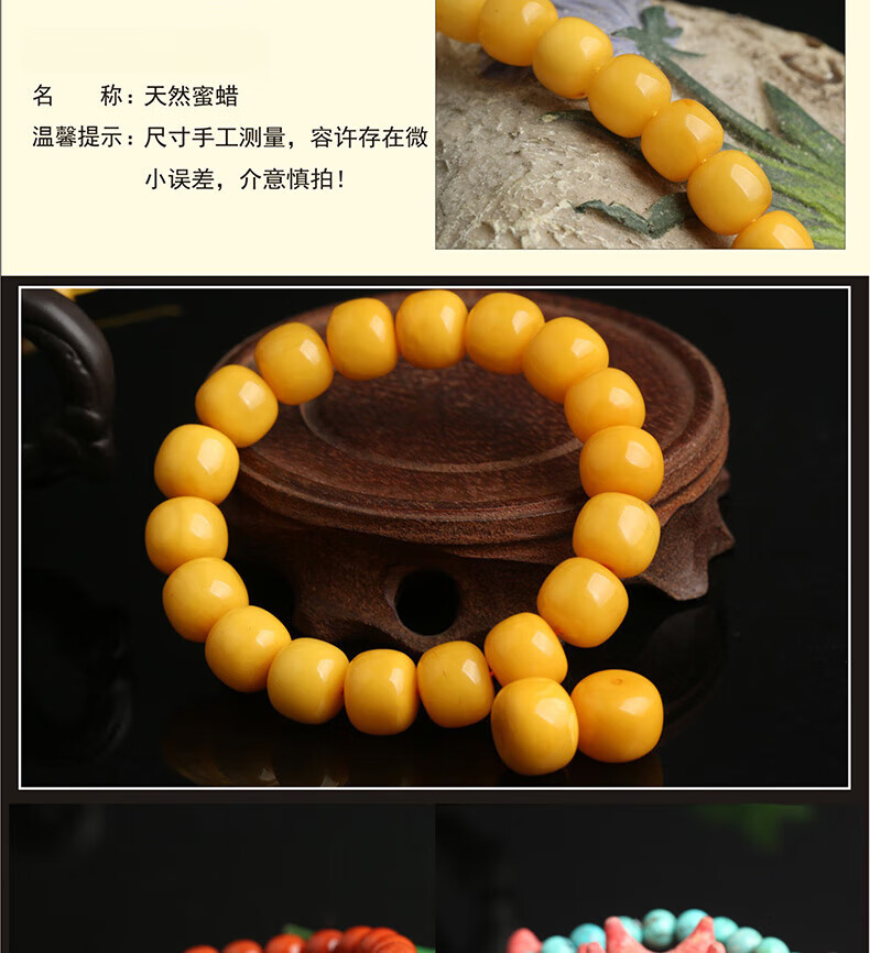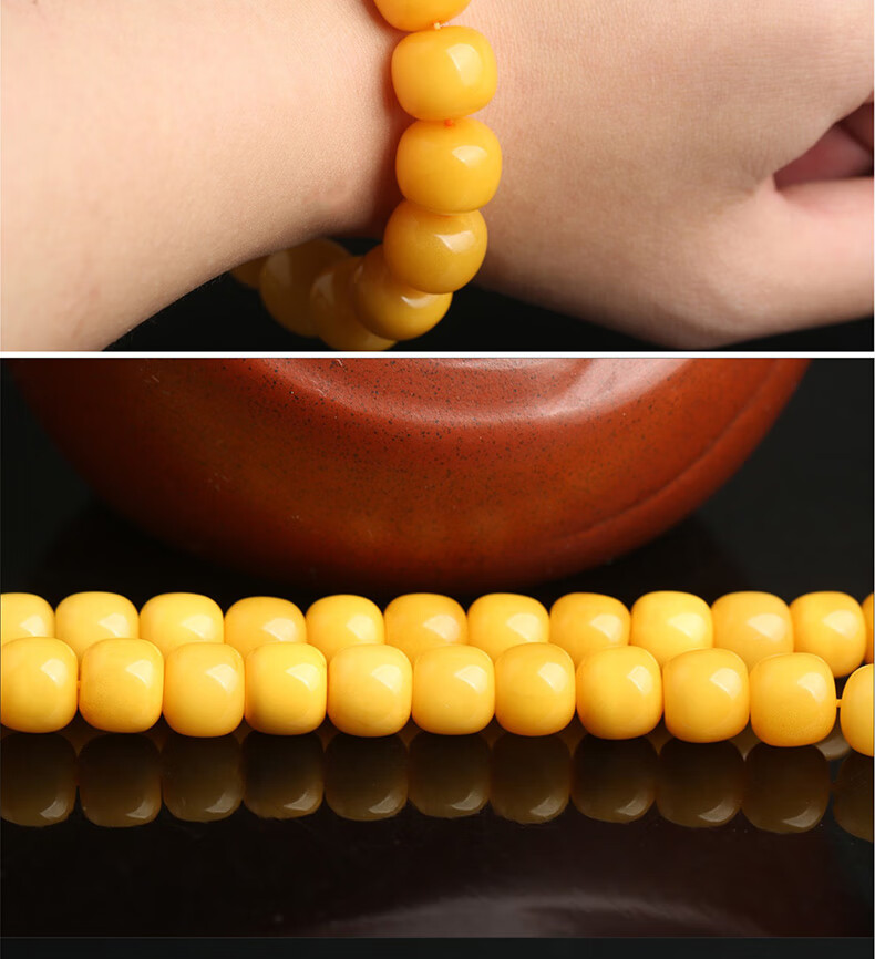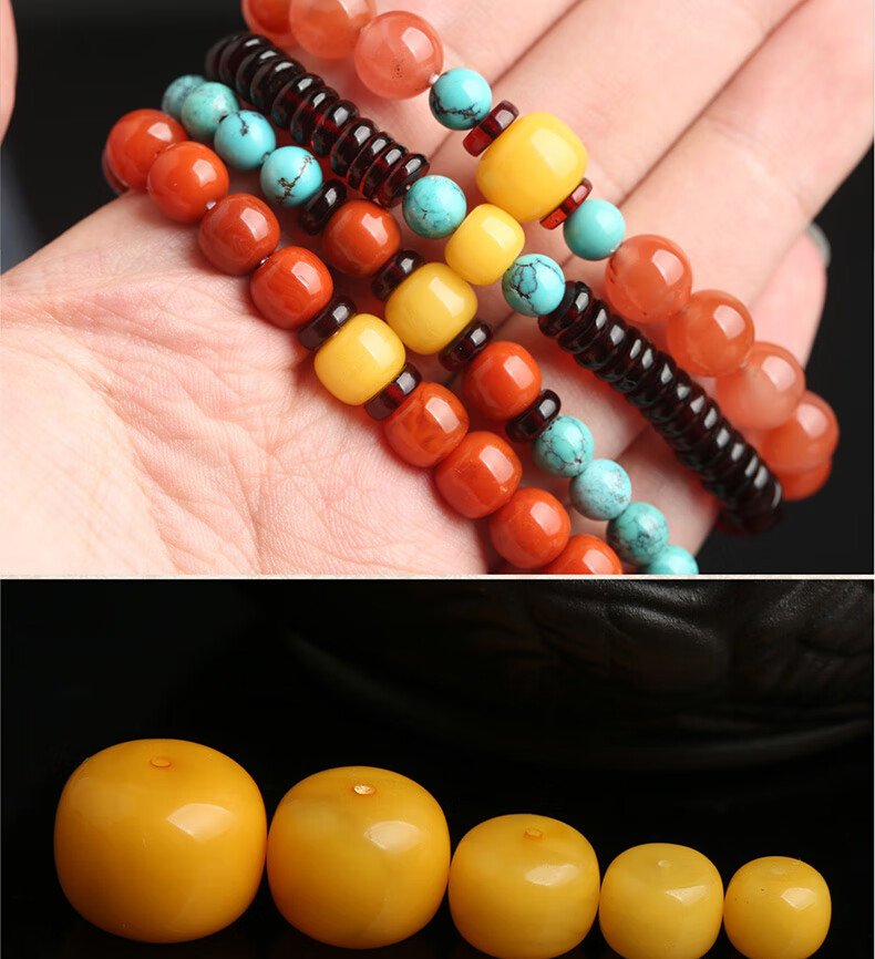 Zhuxin natural raw mineral beeswax old-style barrel beads single beads loose beads spaced beads Buddha beads bracelet single bead amber bracelet accessories diameter about 7mm single bead