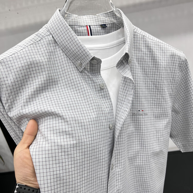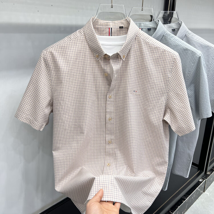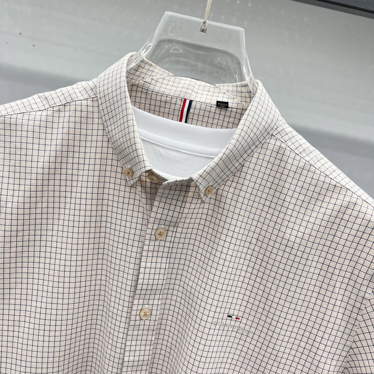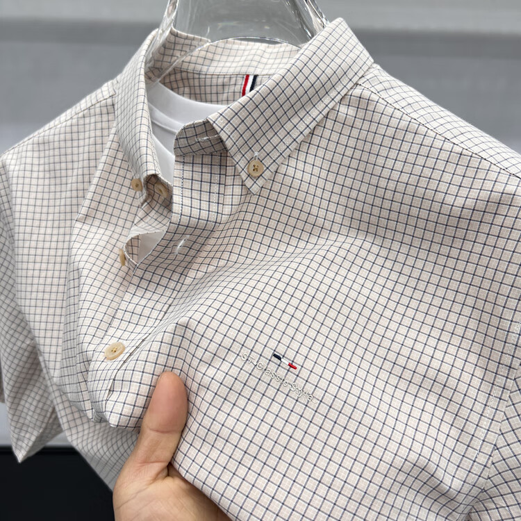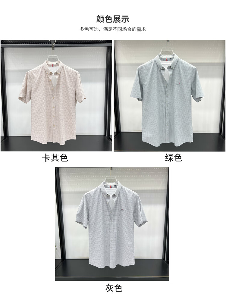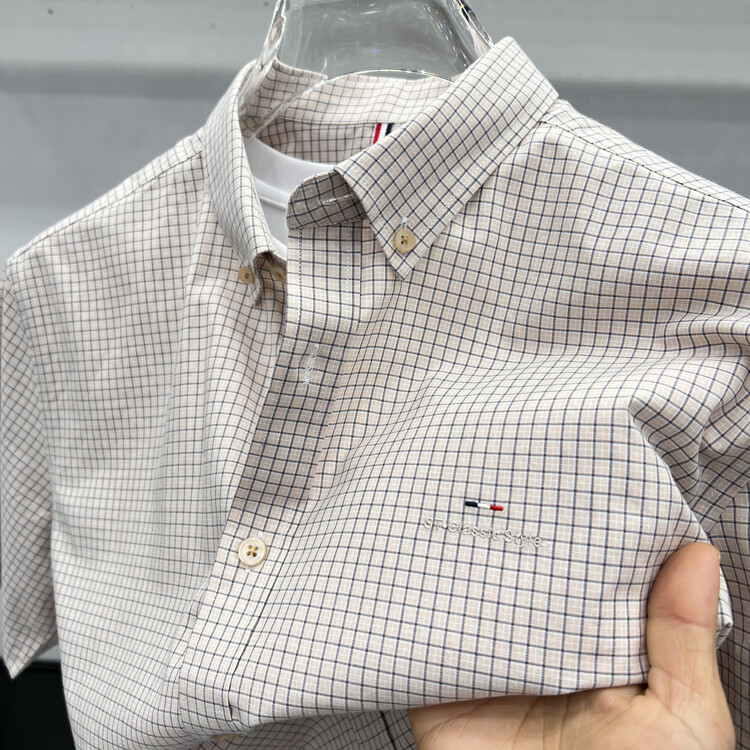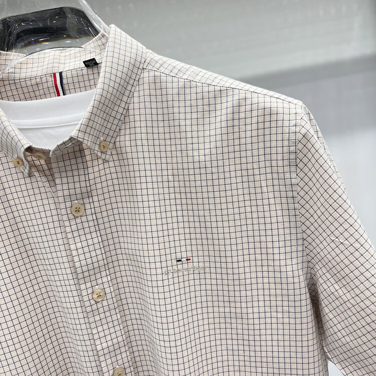 Outlet same style Rohaggis short-sleeved shirt men's summer new casual plaid shirt khaki one size fits all L recommended 120-140 Jin Jin equals 0.5 kg