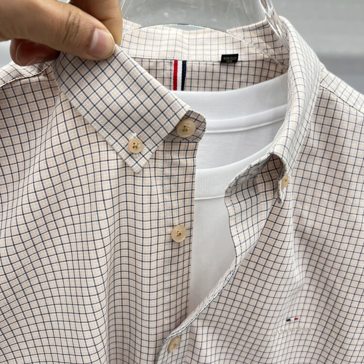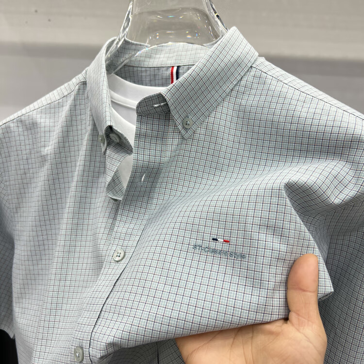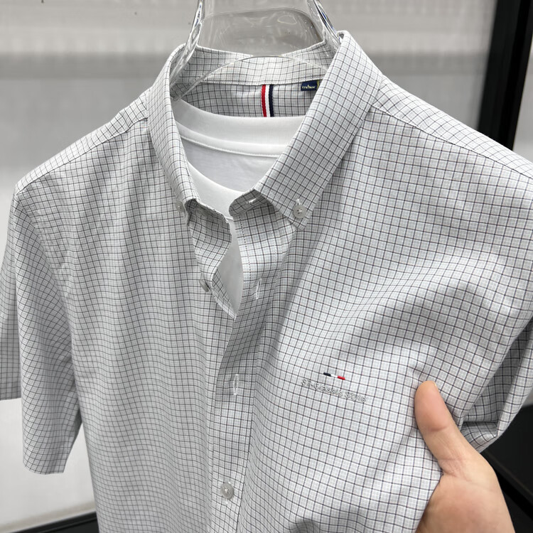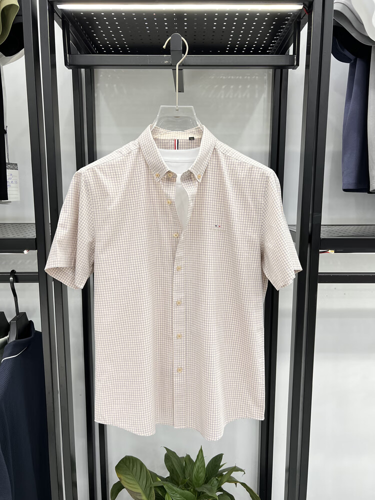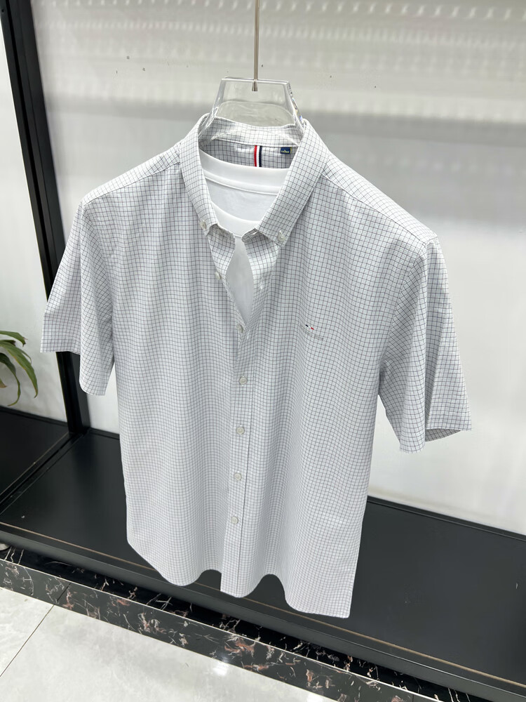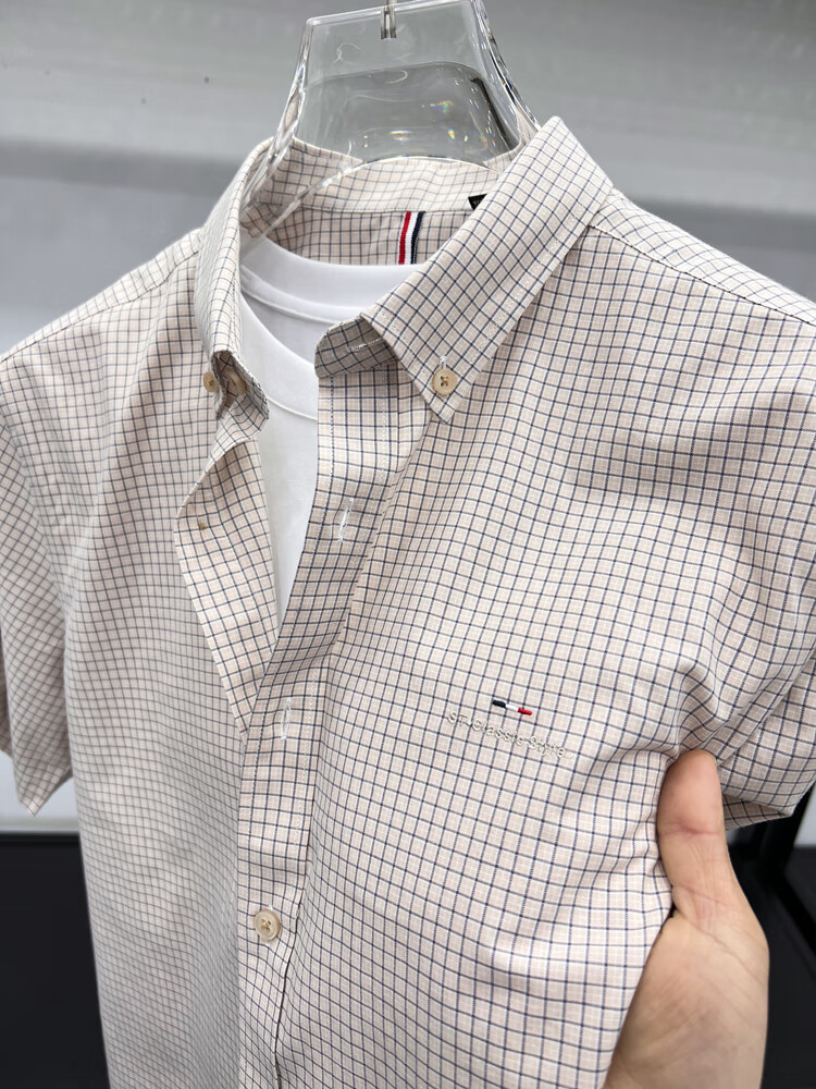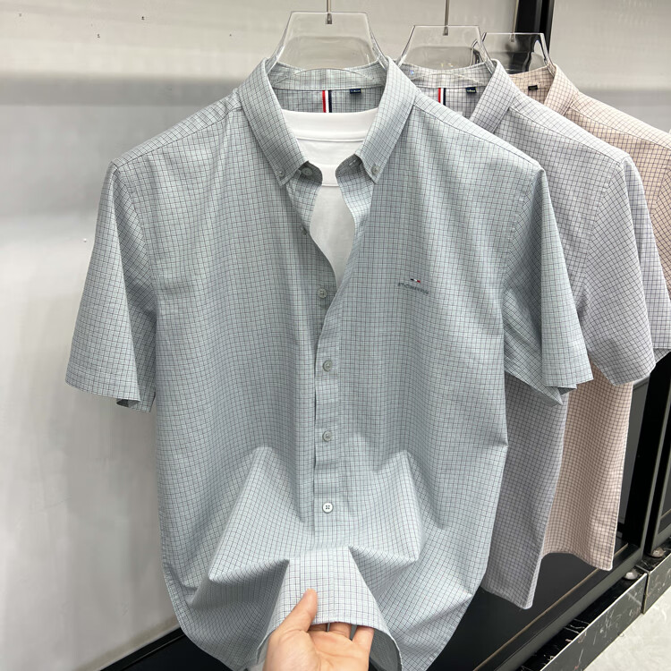 Outlet same style Rohaggis short-sleeved shirt men's summer new casual plaid shirt khaki one size fits all L recommended 120-140 Jin Jin equals 0.5 kg