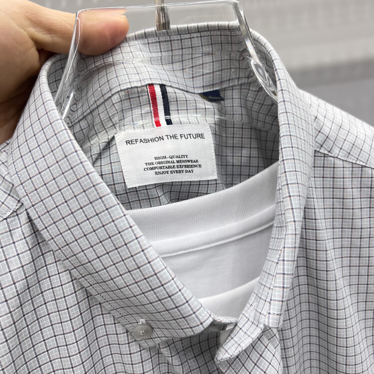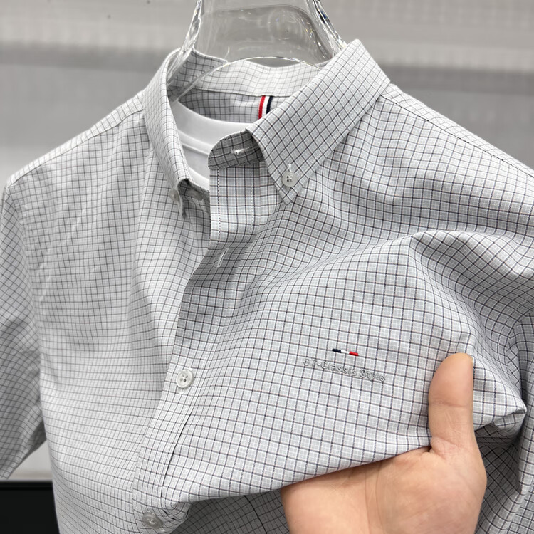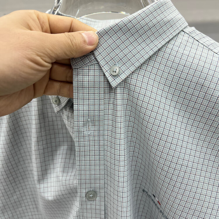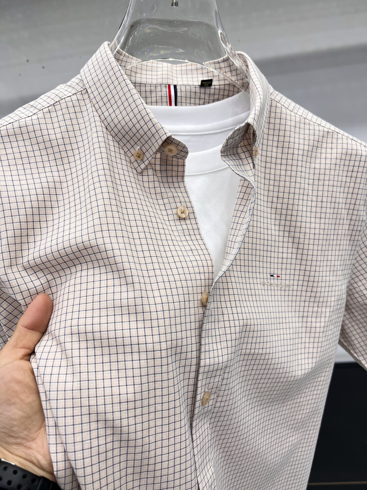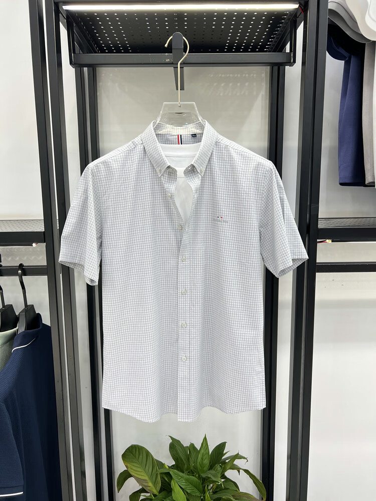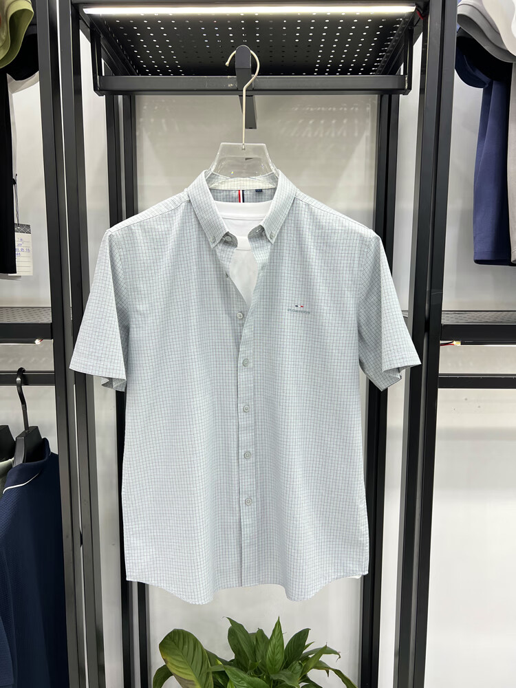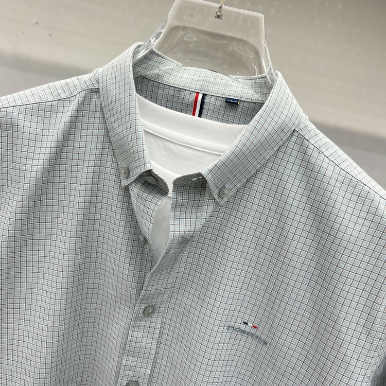 Outlet same style Rohaggis short-sleeved shirt men's summer new casual plaid shirt khaki one size fits all L recommended 120-140 Jin Jin equals 0.5 kg
