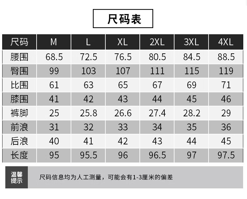 Outseam (cm) 99 cm 101.5 cm 104 cm 106.5 cm 109 cm