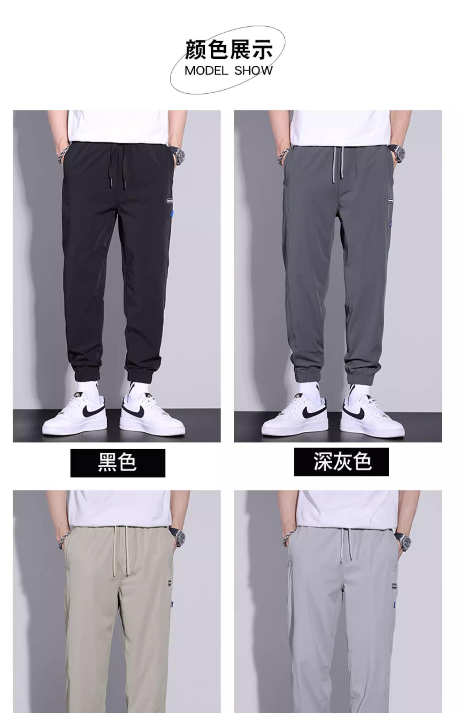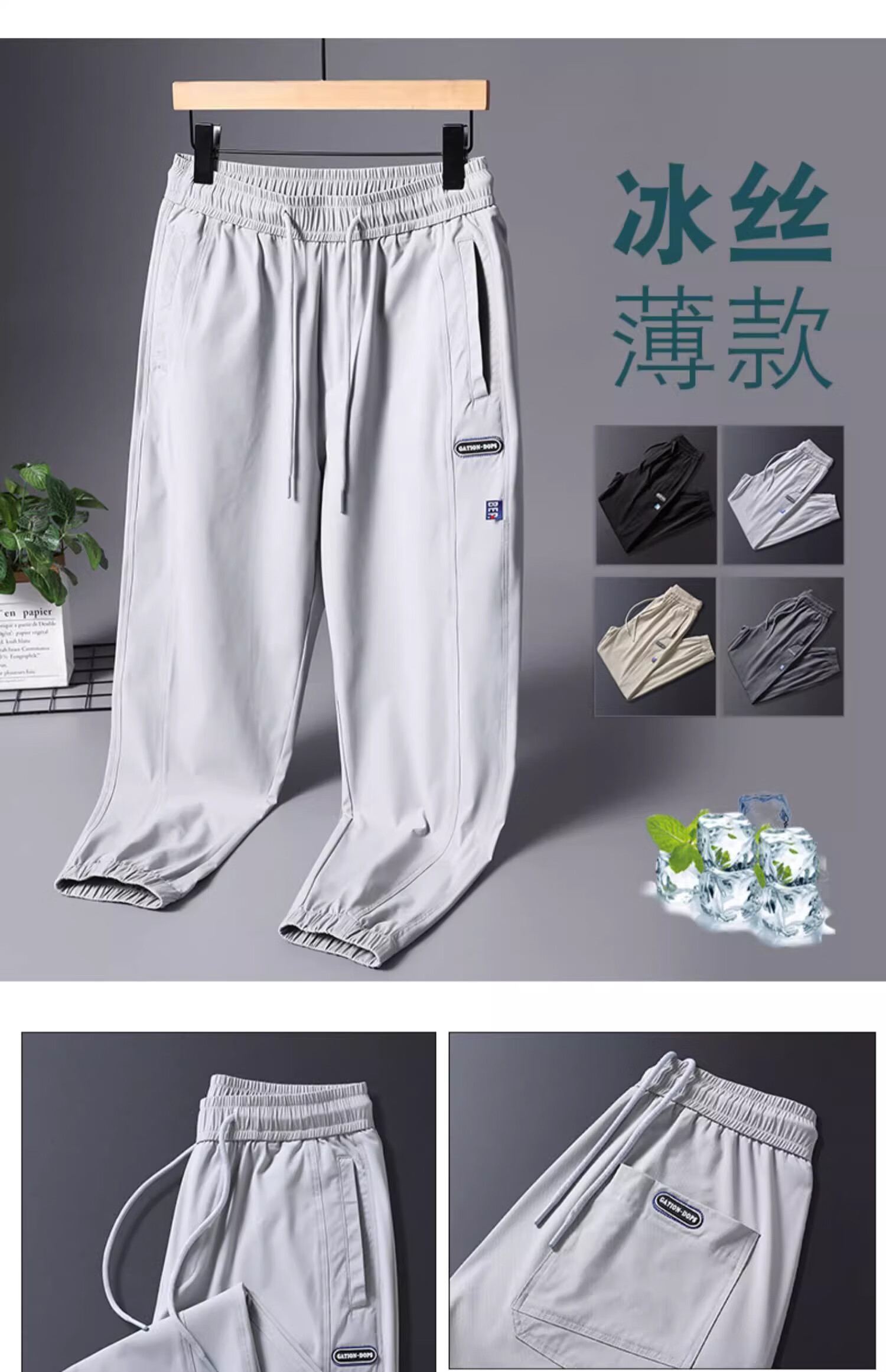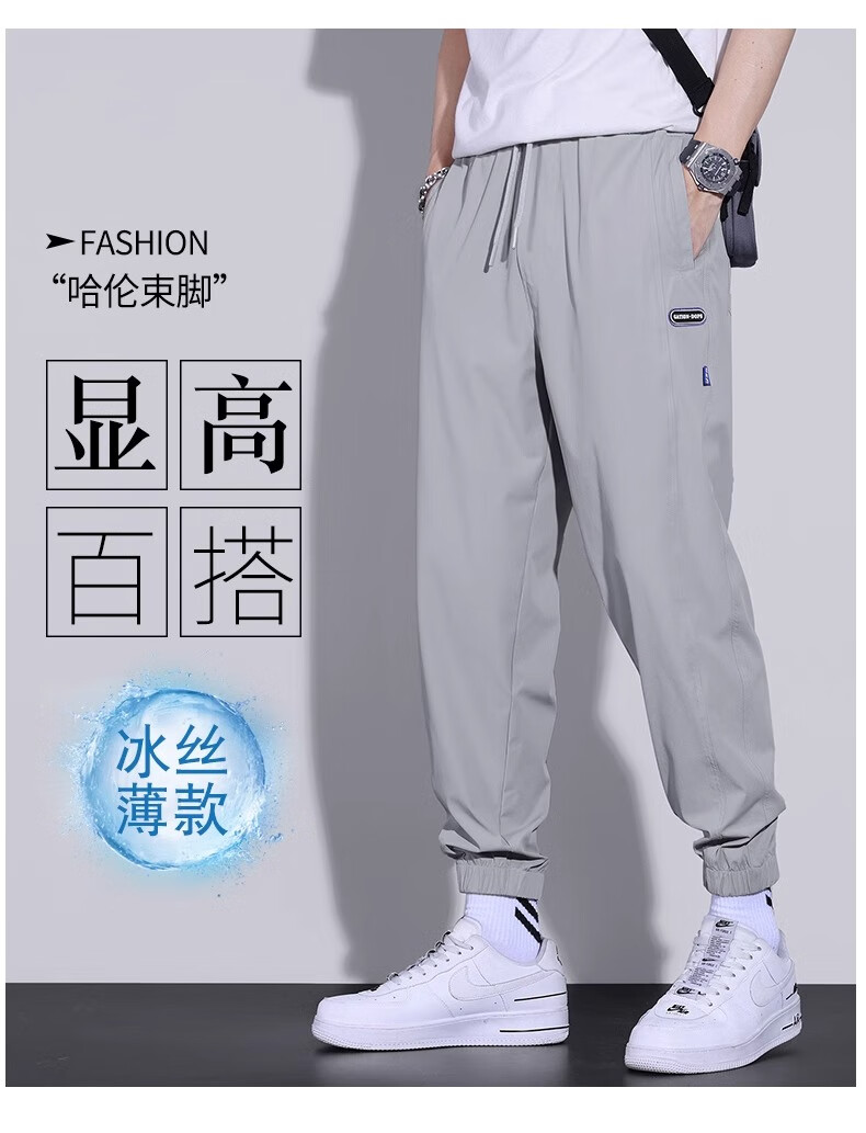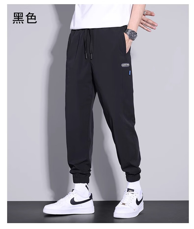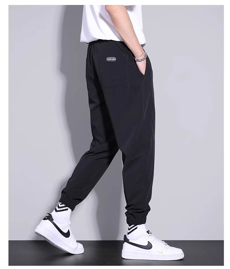 ROMON Summer Ice Silk Thin Casual Pants Men's Loose Leg Pants Men's Versatile Cool Sports Pants Men's Youth Long Pants Men's 105 Black Thin M Size Recommended 90-110 Jin Jin is equal to 0.5 kg