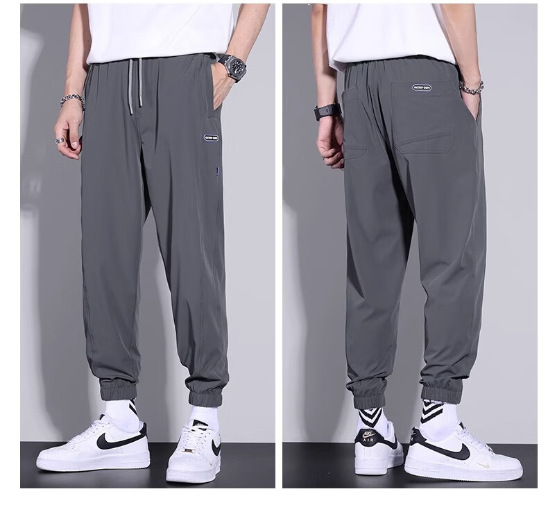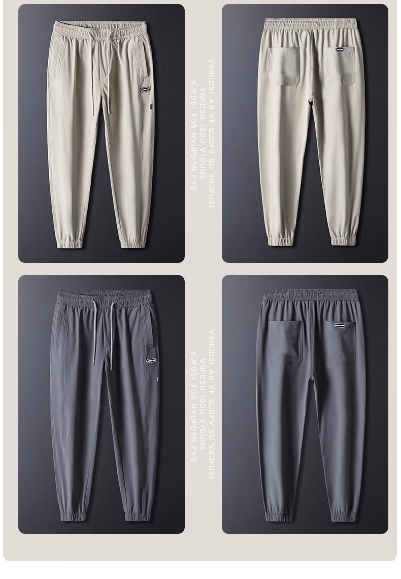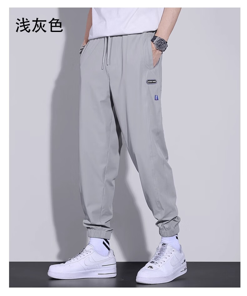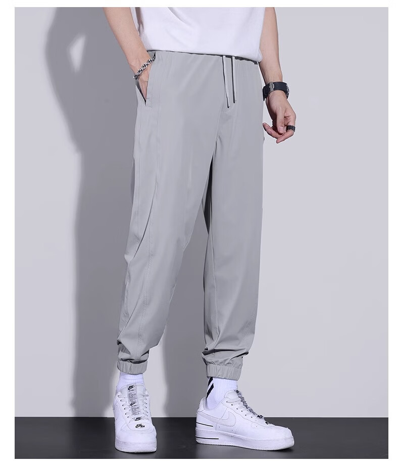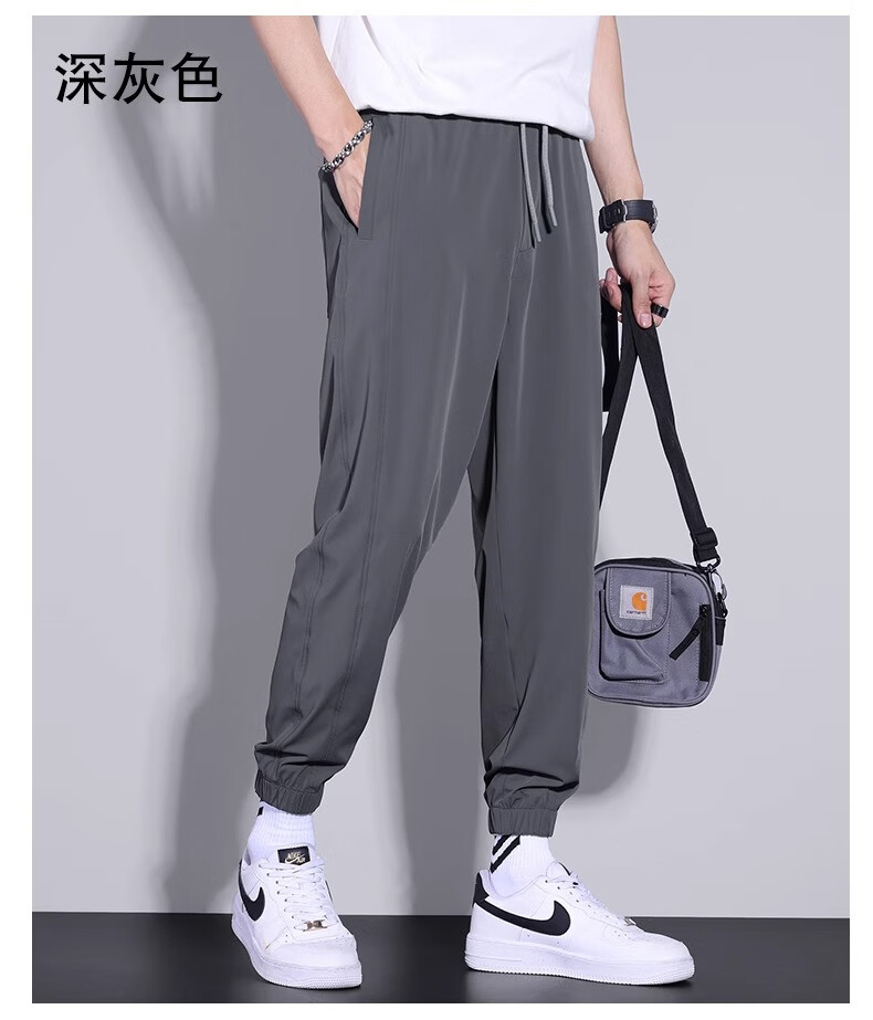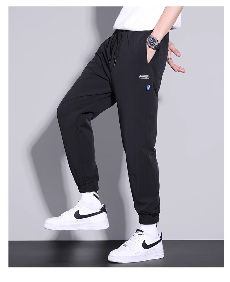 ROMON Summer Ice Silk Thin Casual Pants Men's Loose Leg Pants Men's Versatile Cool Sports Pants Men's Youth Long Pants Men's 105 Black Thin M Size Recommended 90-110 Jin Jin is equal to 0.5 kg