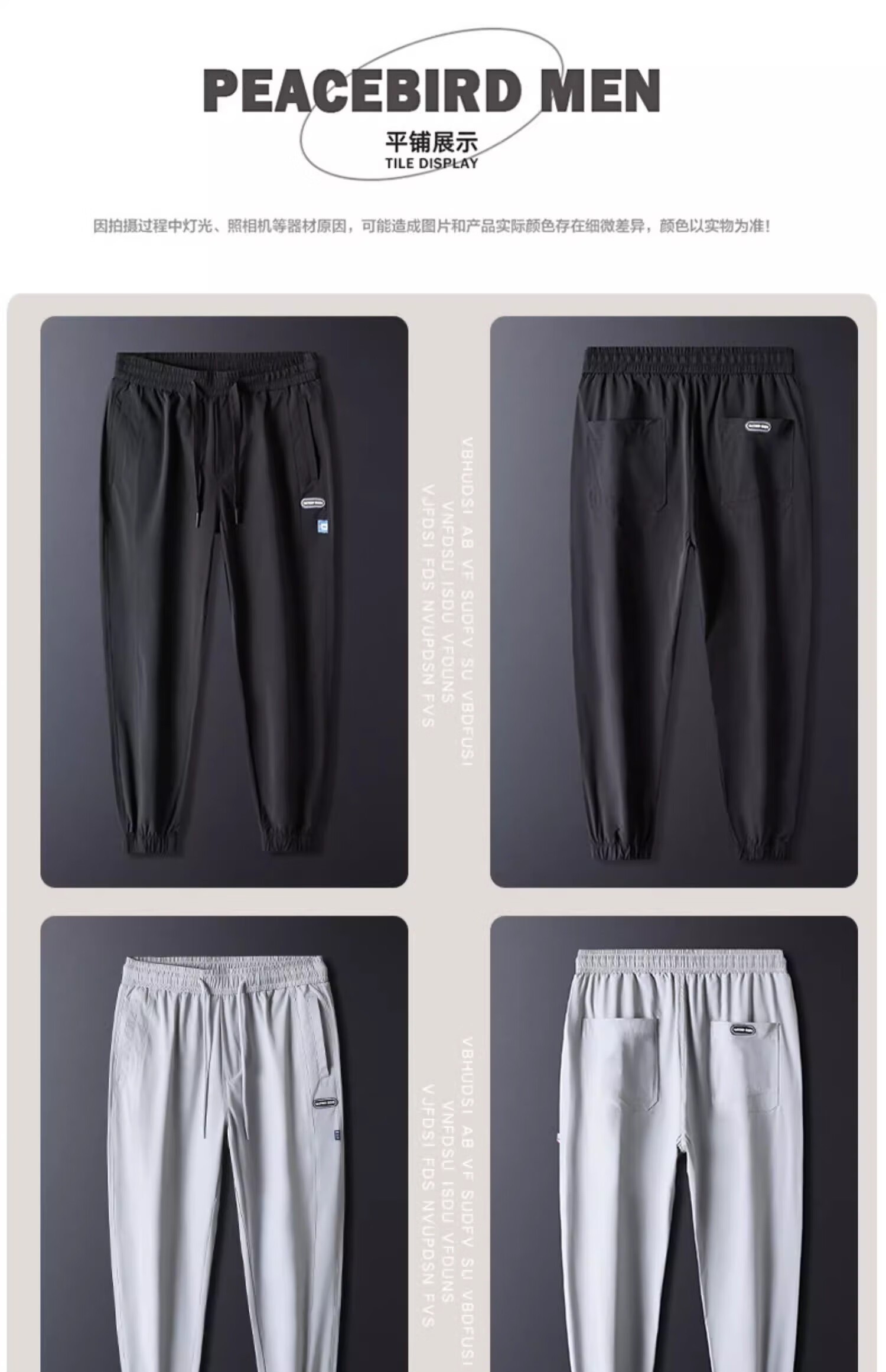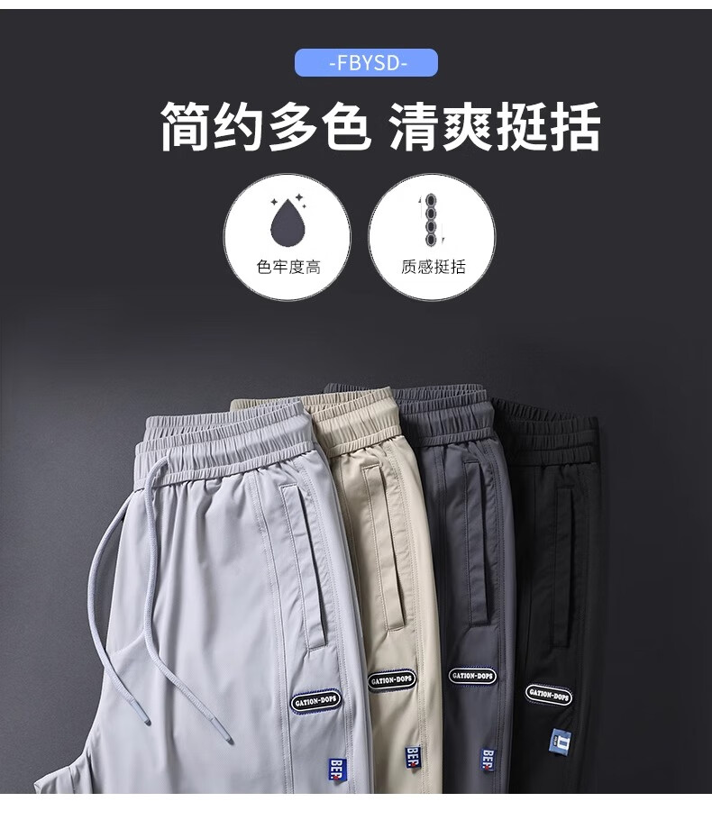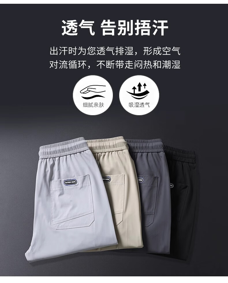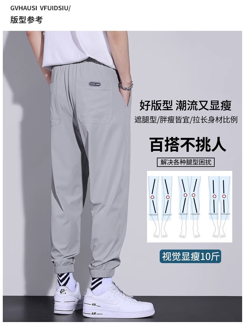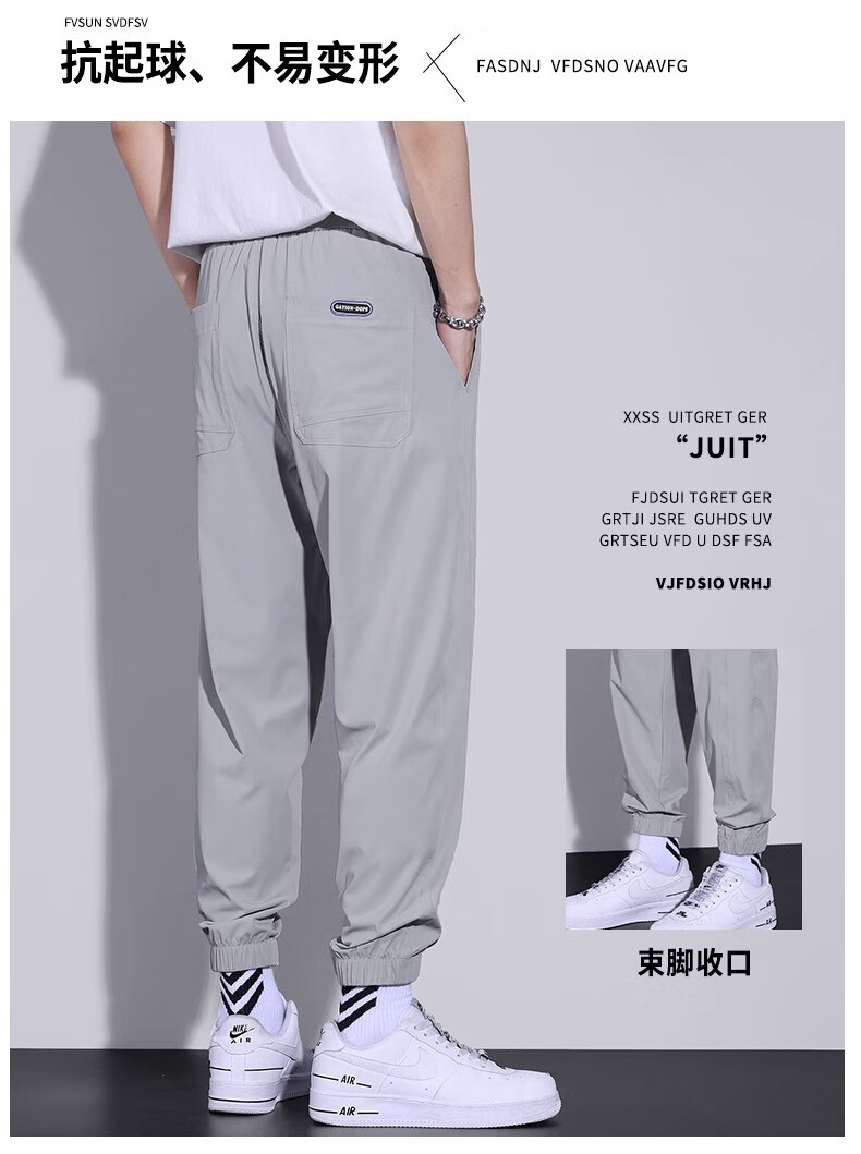 ROMON Summer Ice Silk Thin Casual Pants Men's Loose Leg Pants Men's Versatile Cool Sports Pants Men's Youth Long Pants Men's 105 Black Thin M Size Recommended 90-110 Jin Jin is equal to 0.5 kg