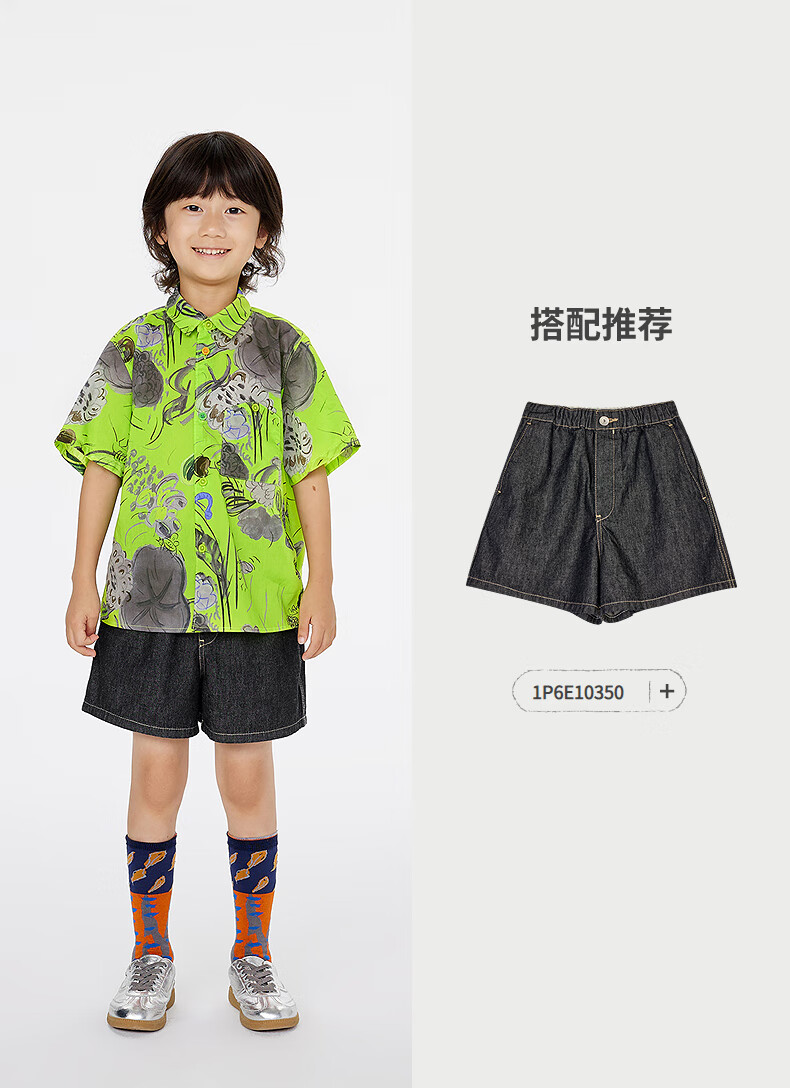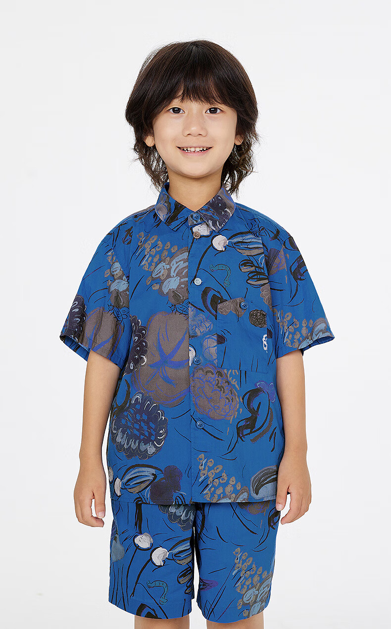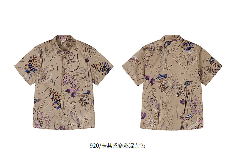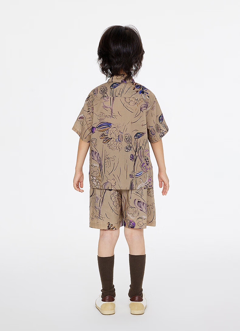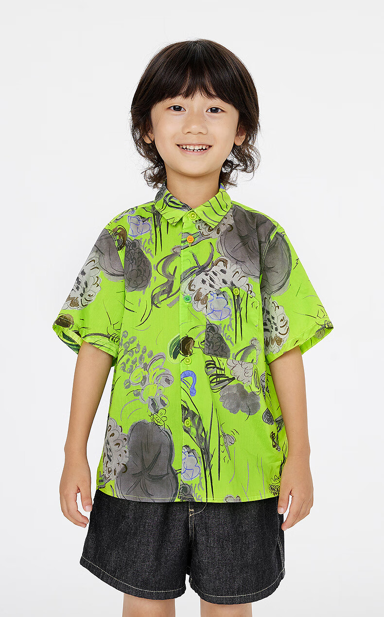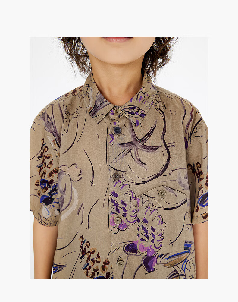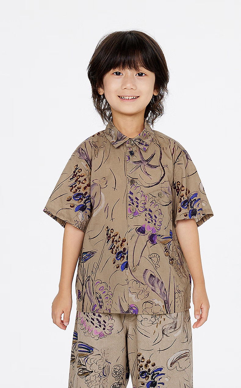 Jnby by JNBY Jiangnan Buyi children's short-sleeved shirt cotton printed poplin A-type loose and light summer boys and girls 1P5211480 920/khaki colorful mixed color 100 cm