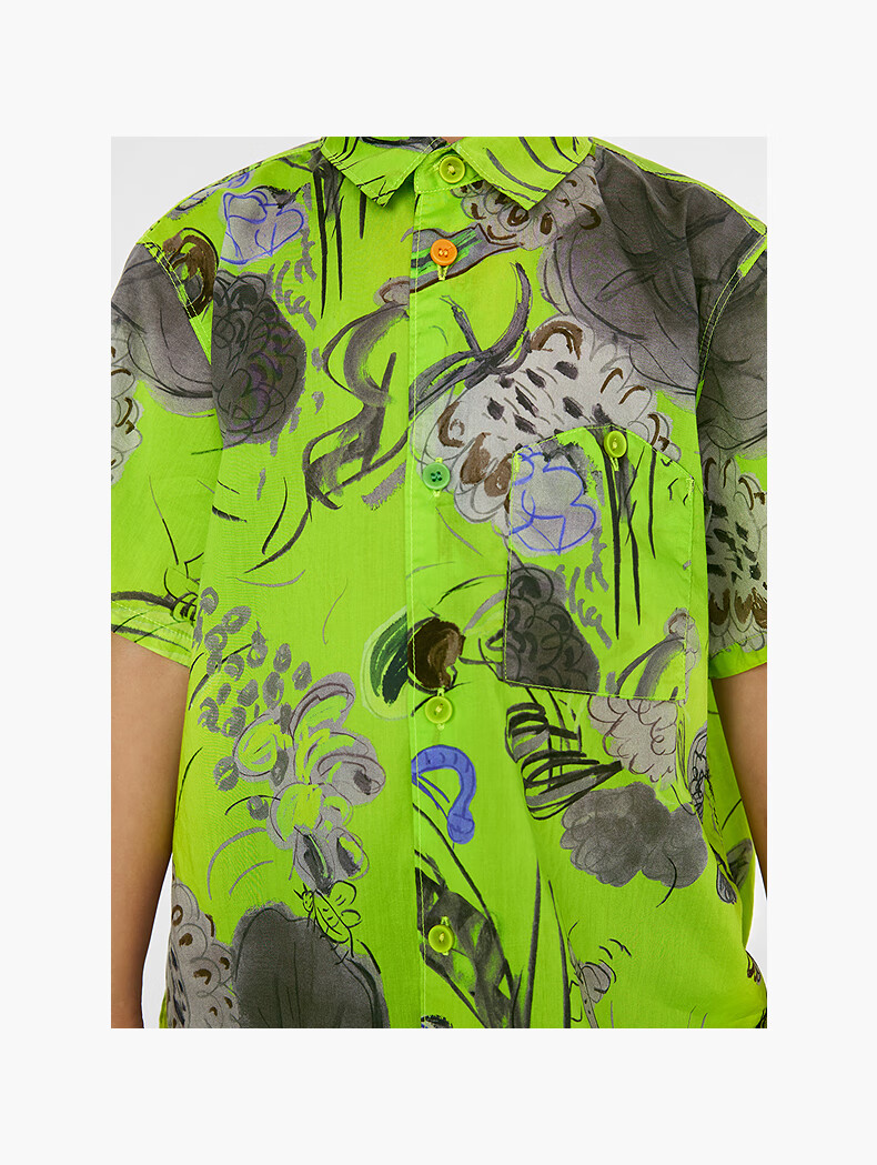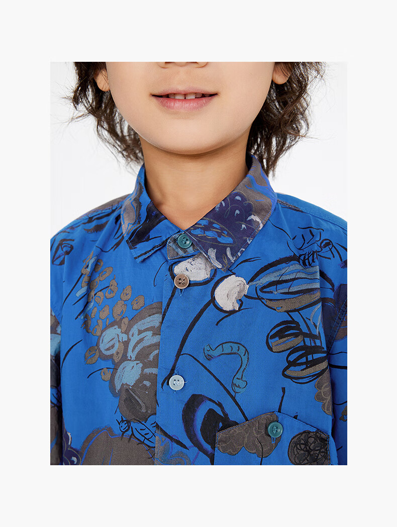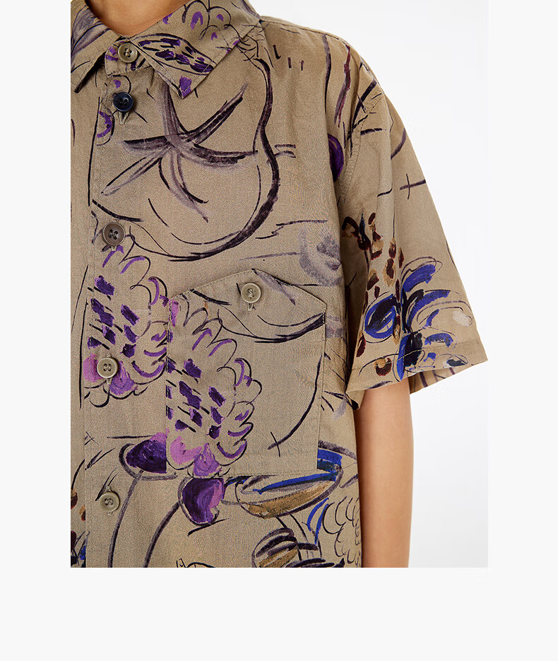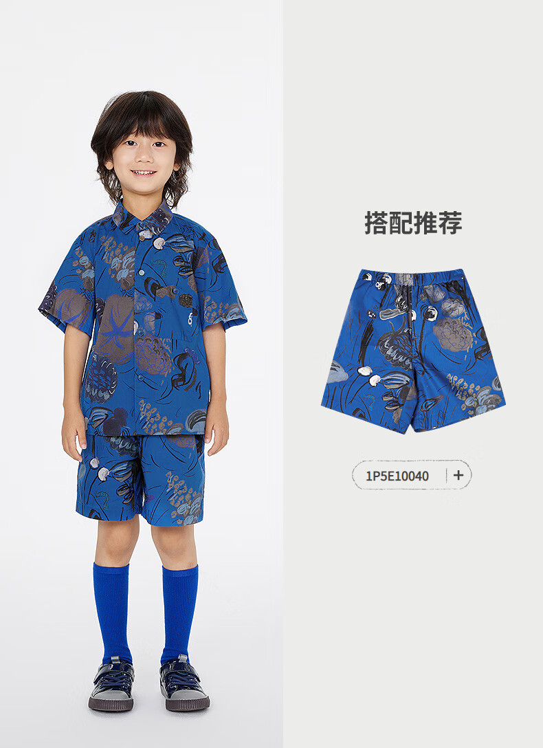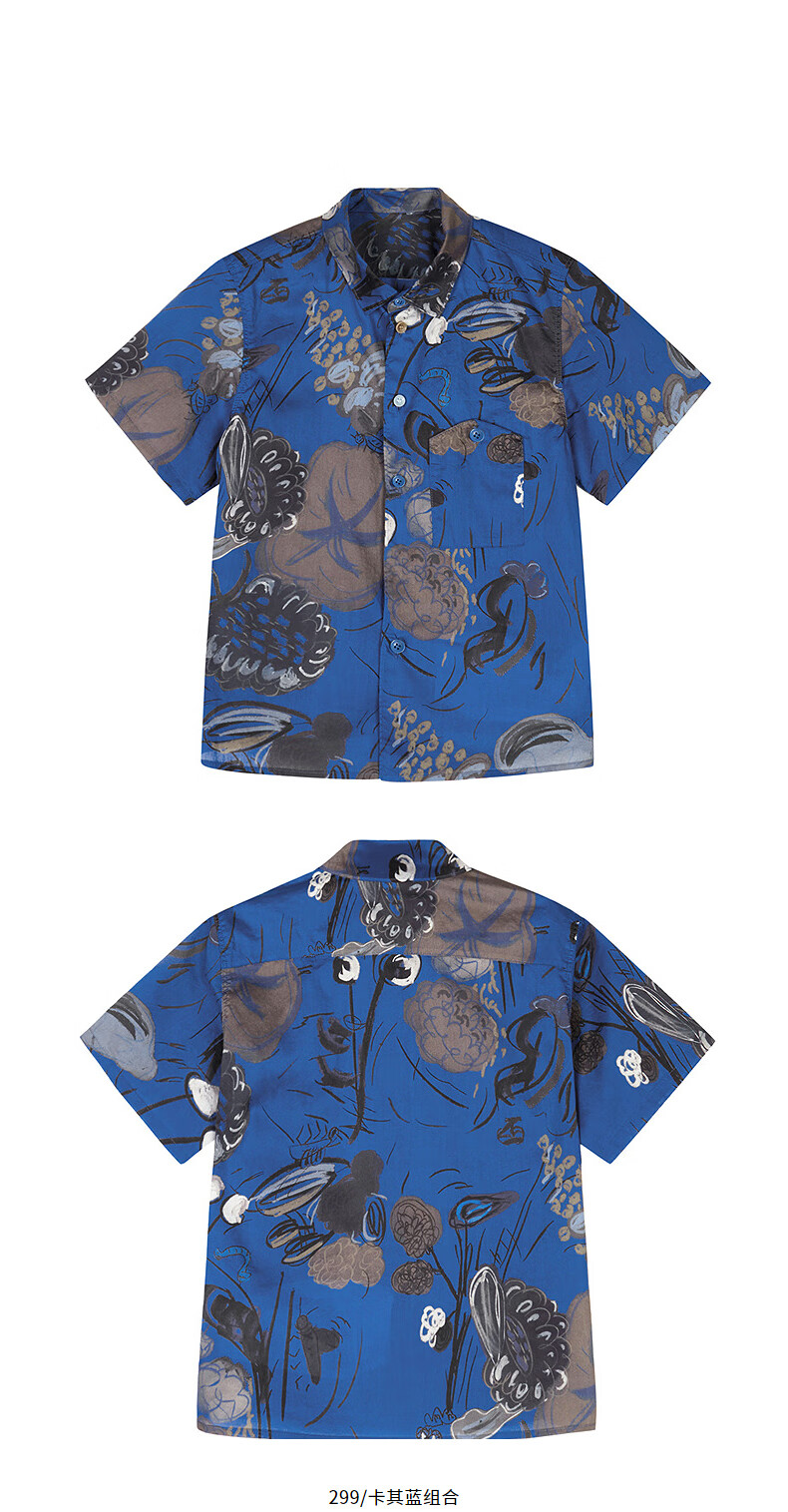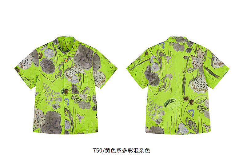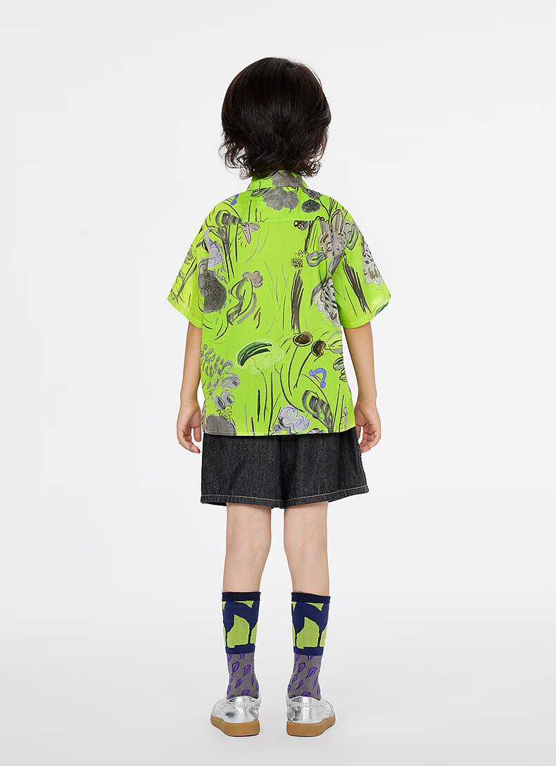Jnby by JNBY Jiangnan Buyi children's short-sleeved shirt cotton printed poplin A-type loose and light summer boys and girls 1P5211480 920/khaki colorful mixed color 100 cm