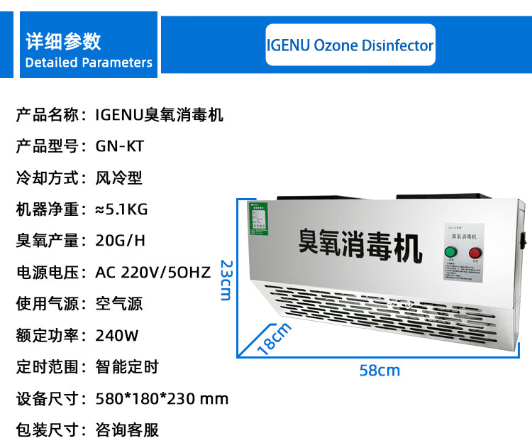 IGENU wall-mounted ozone generator industrial commercial disinfection machine food factory breeding farm garbage room laboratory hospital school canteen restaurant kitchen sterilization and odor removal 5g/h upgraded intelligent timing