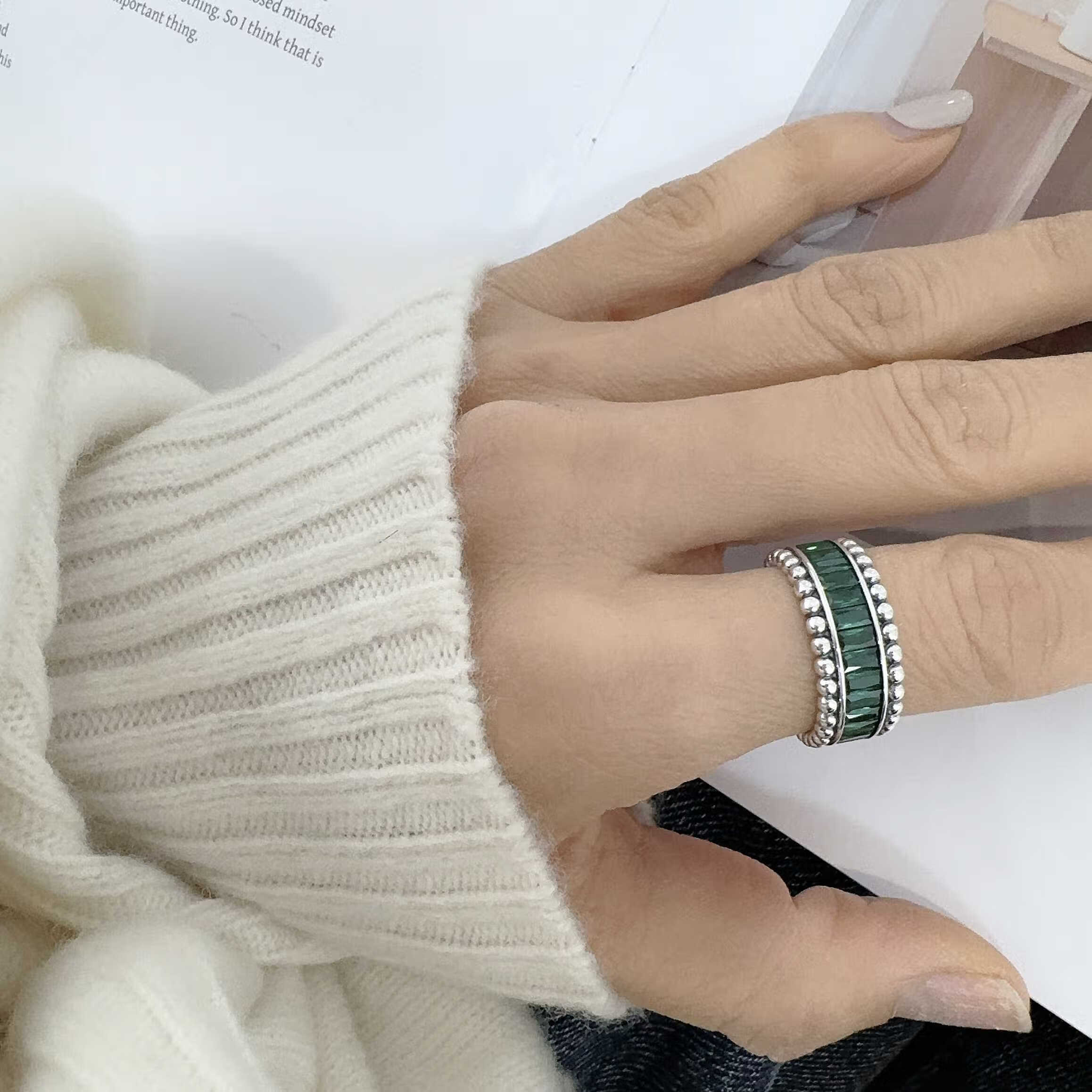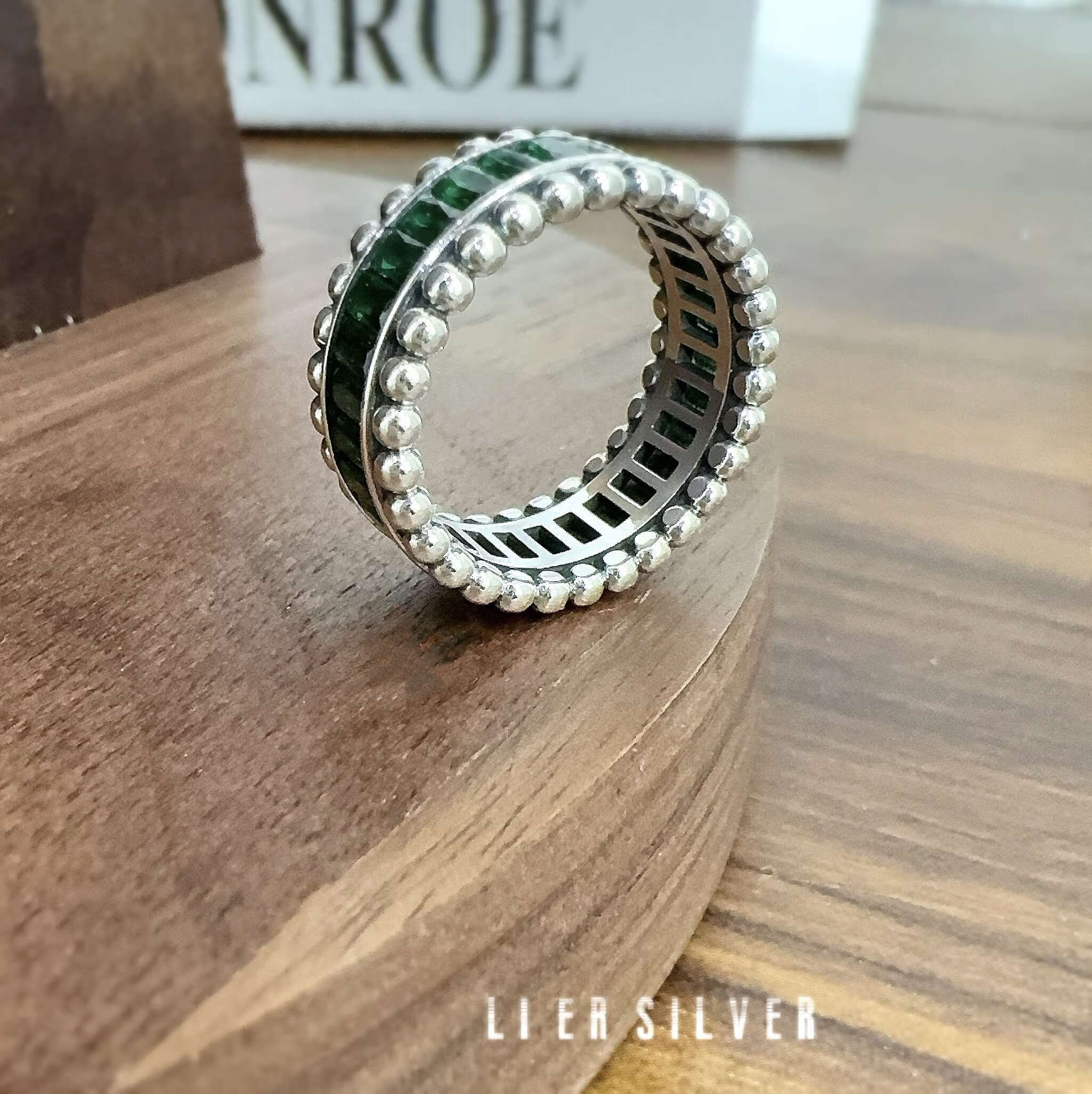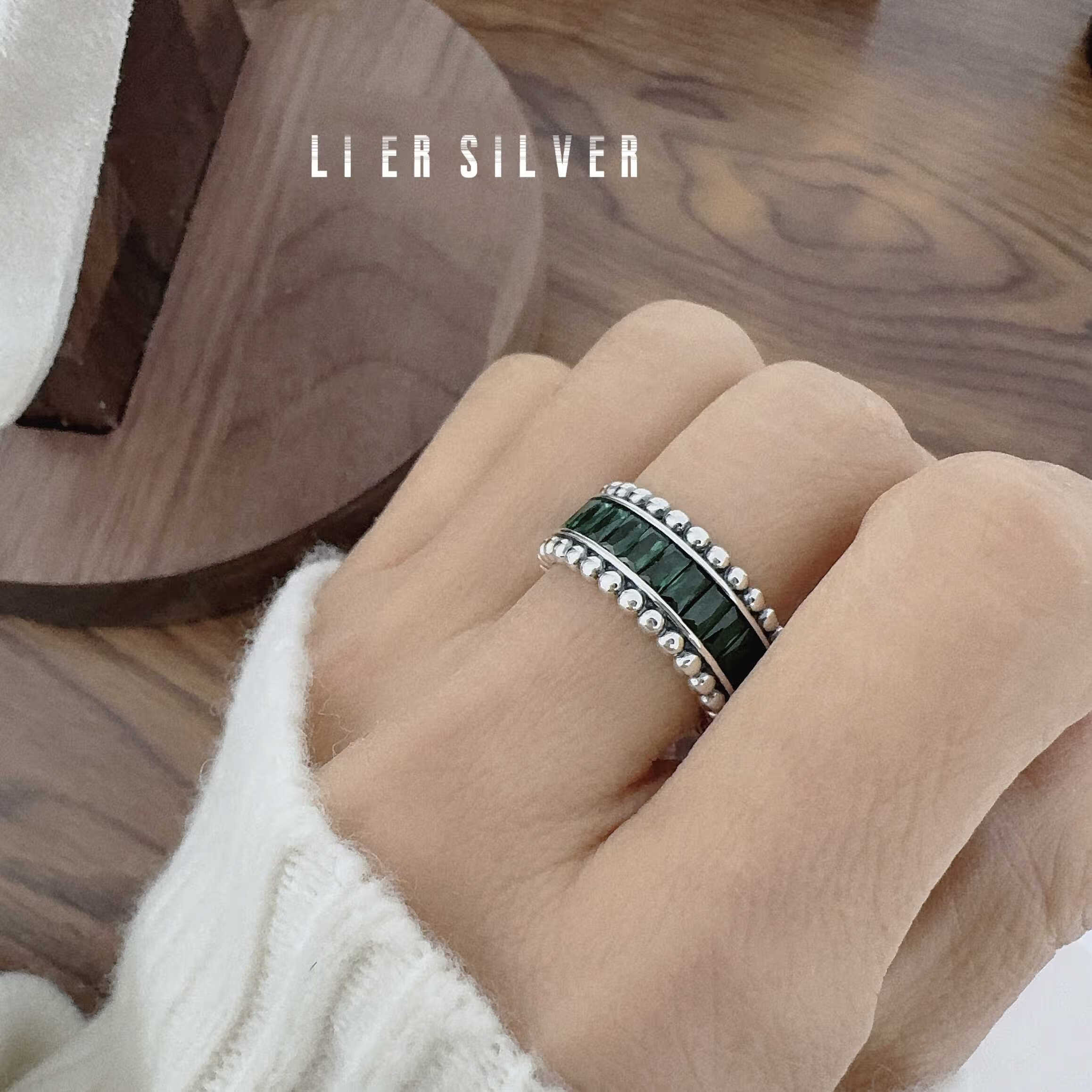 Iosn Han Dan Heavy Industry S925 sterling silver emerald diamond ring new ocean beauty floating light flow closed index finger ring for women Hong Kong code 13#