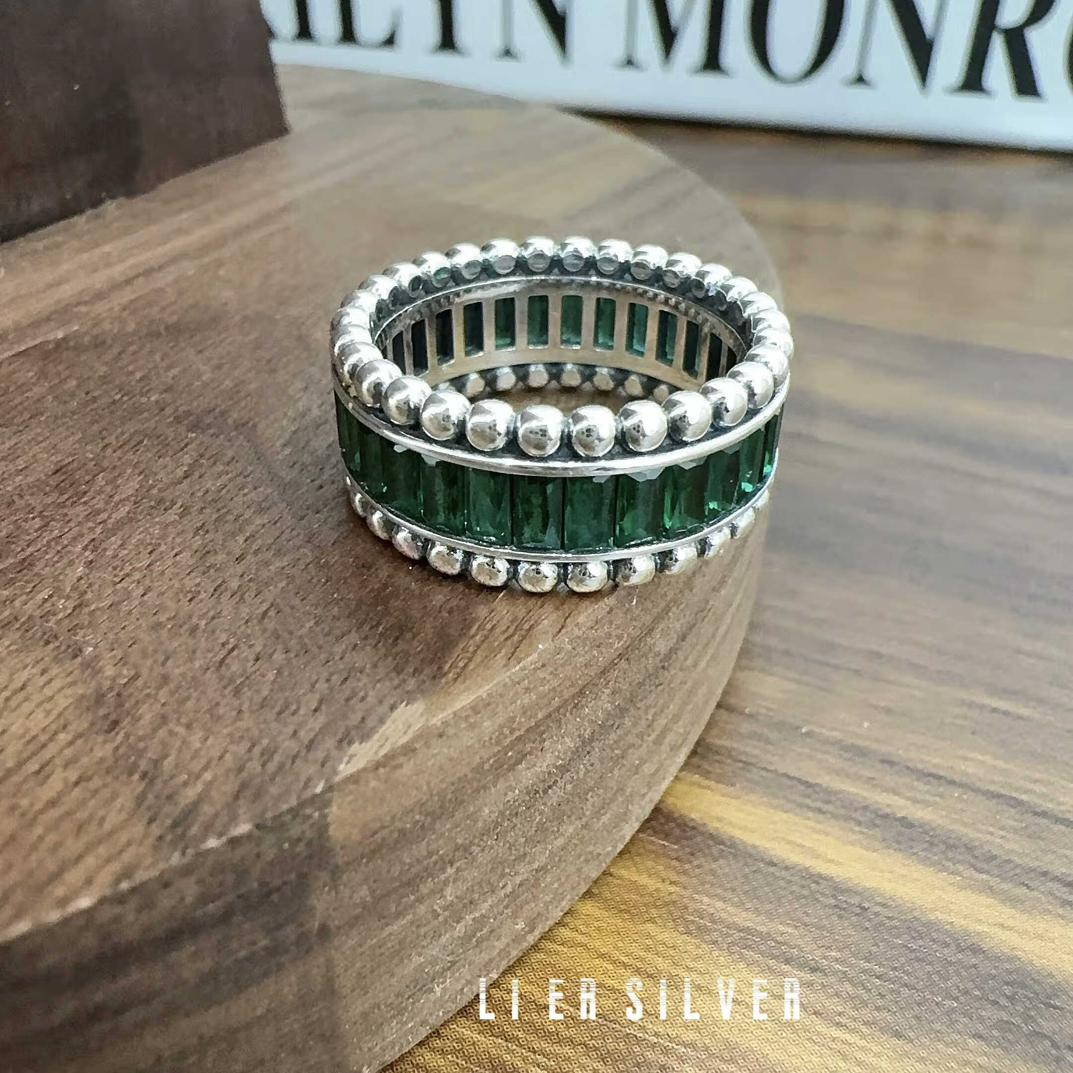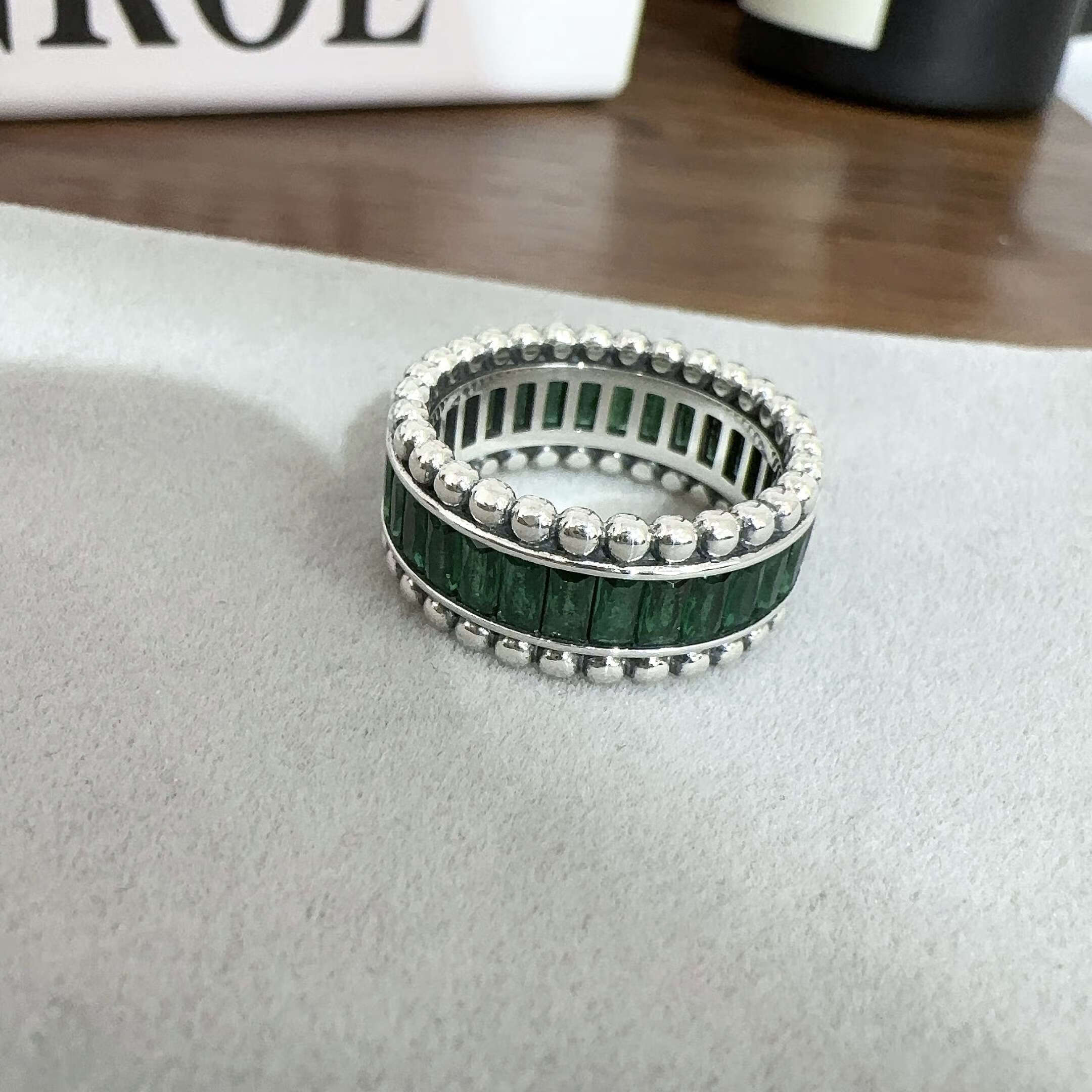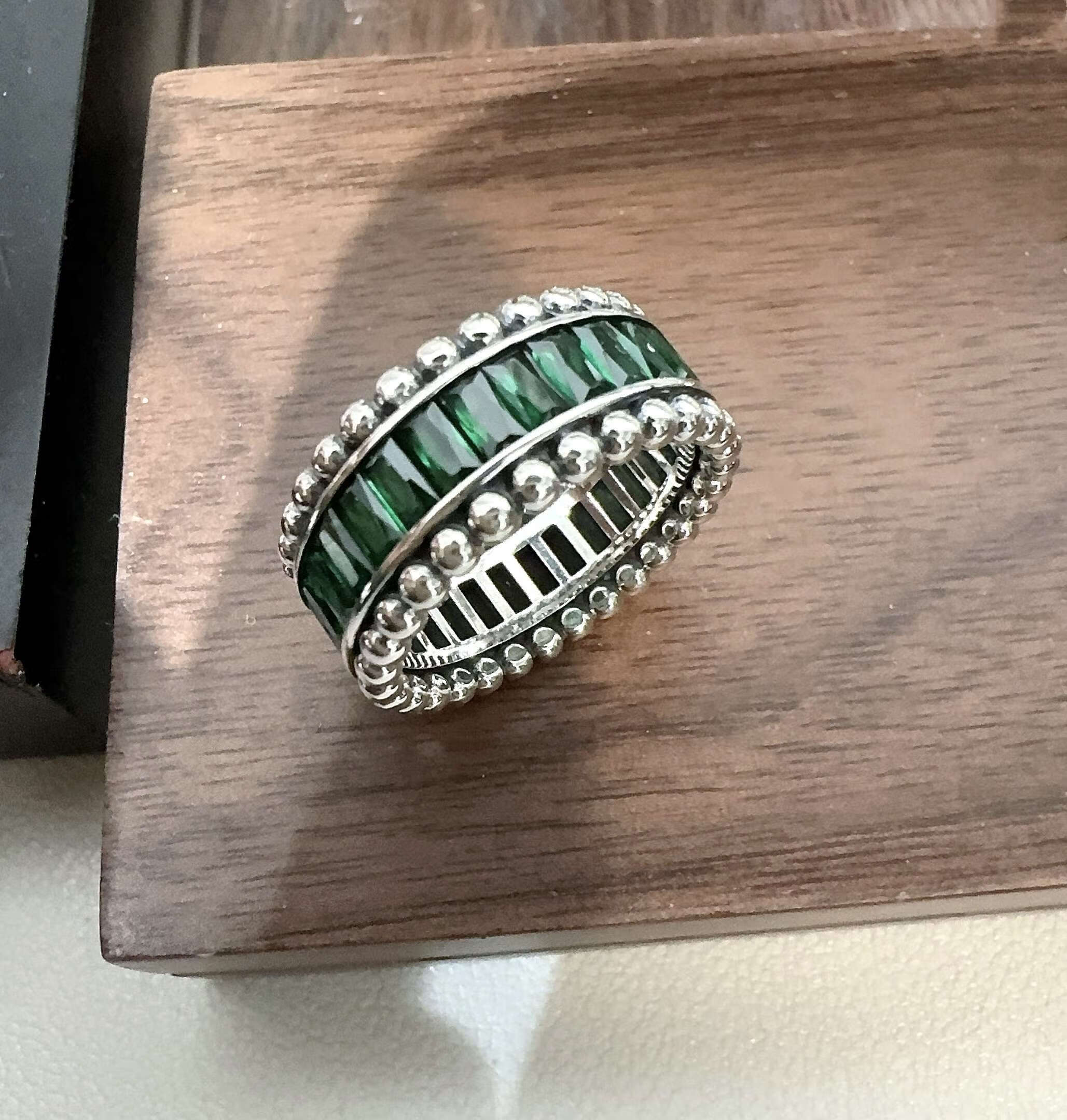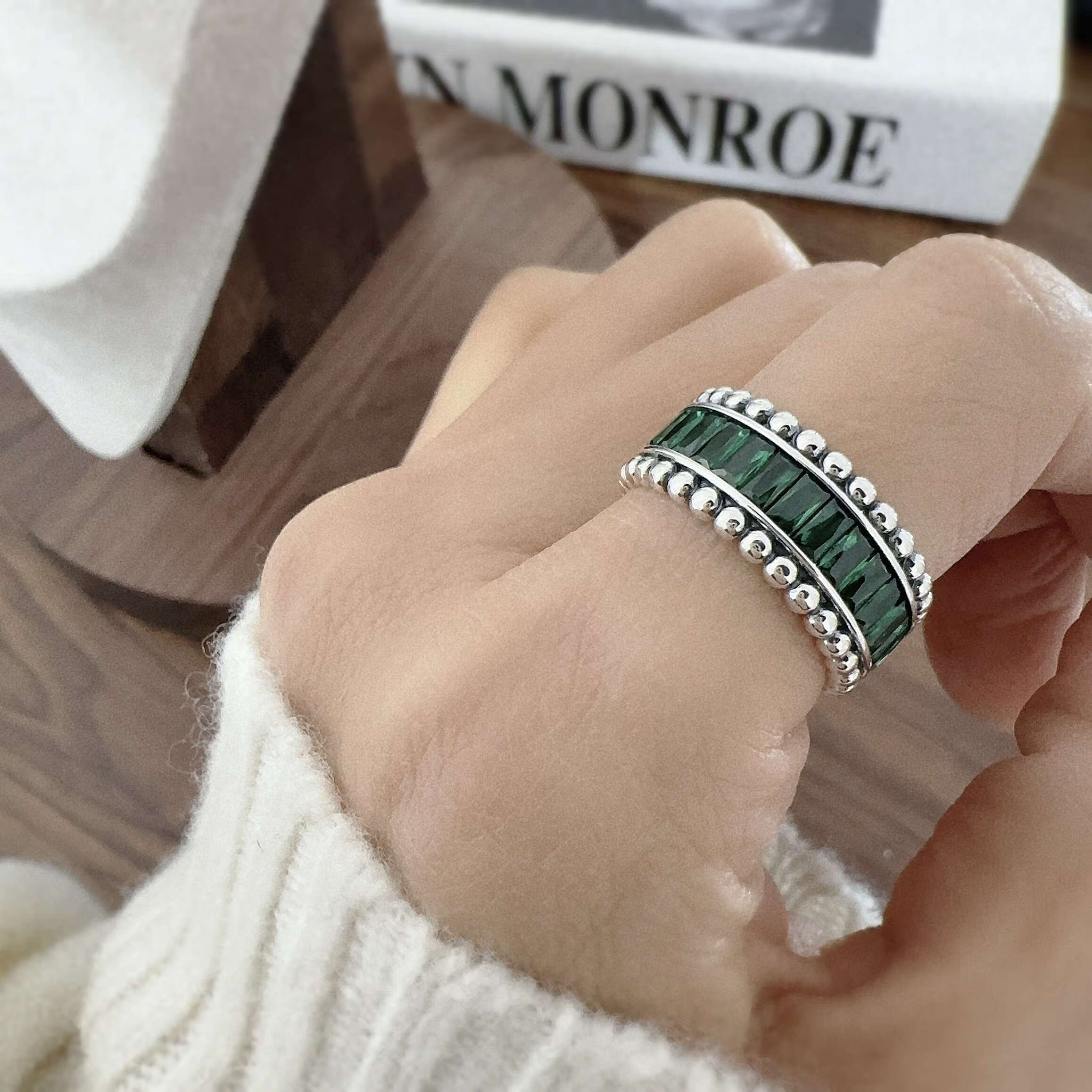 Iosn Han Dan Heavy Industry S925 sterling silver emerald diamond ring new ocean beauty floating light flow closed index finger ring for women Hong Kong code 13#