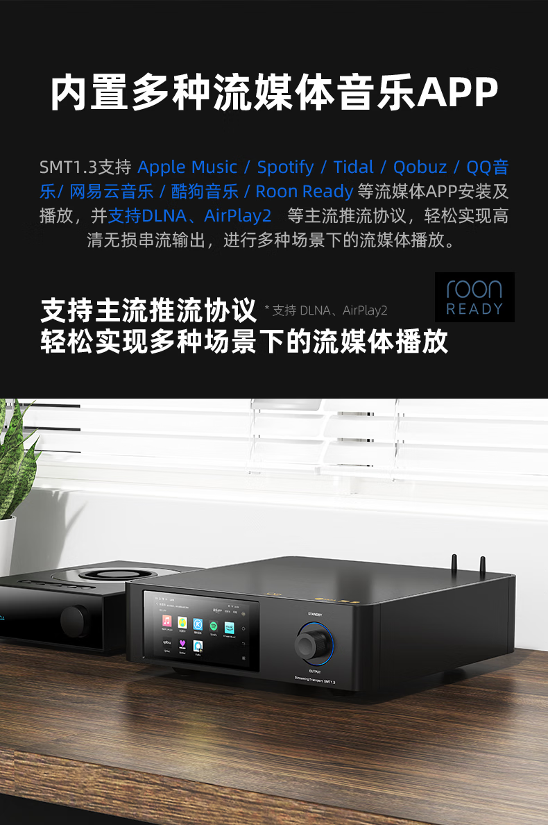 Shanling SMT1.3 desktop streaming media turntable digital broadcast decoding headphone amplifier all-in-one dual-band wifi6 transmission NAS function HD touch screen SMT1.3 black