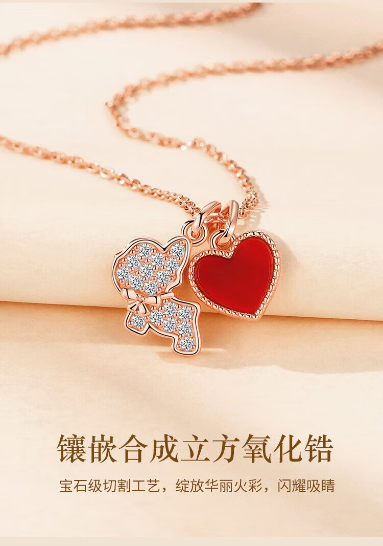 Grace Girl Love Puppy Pendant Necklace Women's Light Luxury High-end Jewelry Practical Birthday Gift Valentine's Day for Girlfriend Love Puppy Necklace Light Luxury Gift Box