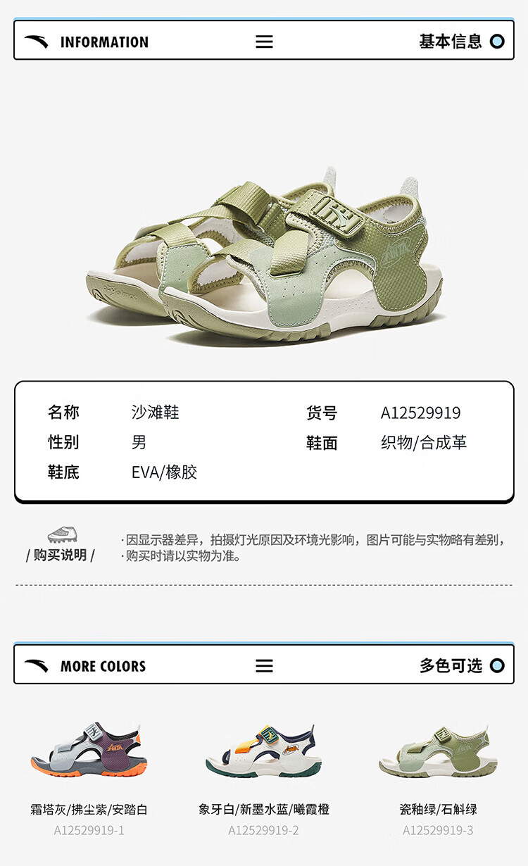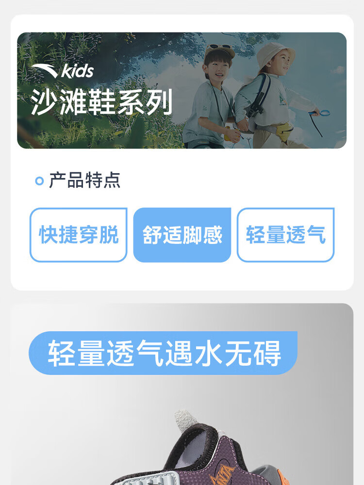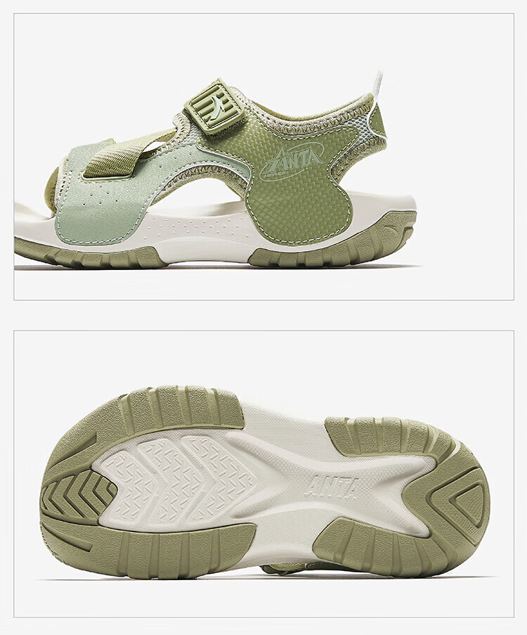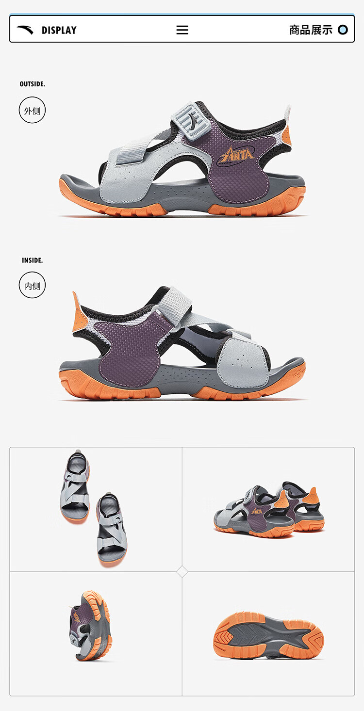 ANTA children's sandals for boys, outdoor breathable and comfortable buckle low-top toe beach shoes, river shoes D, ivory white/new ink blue/Xixia orange 29