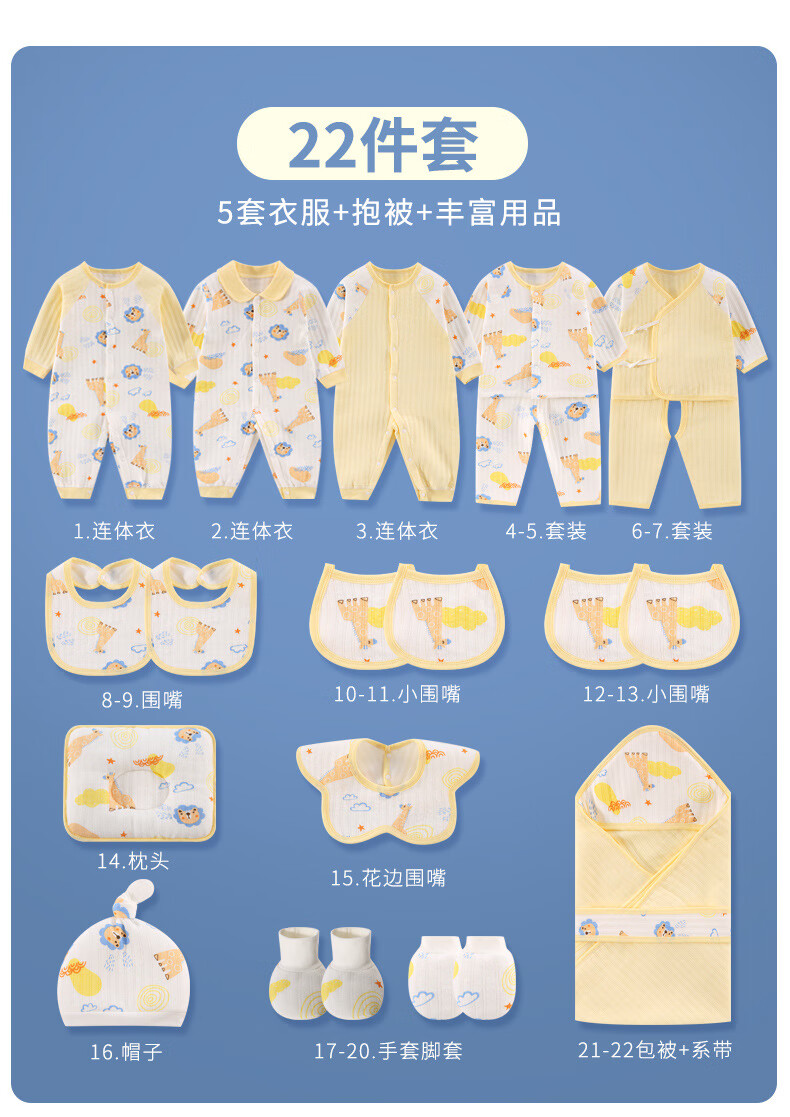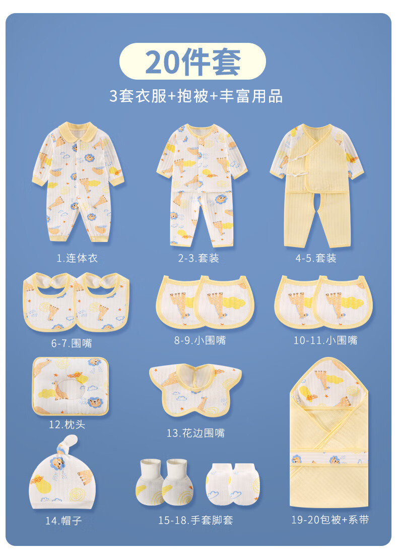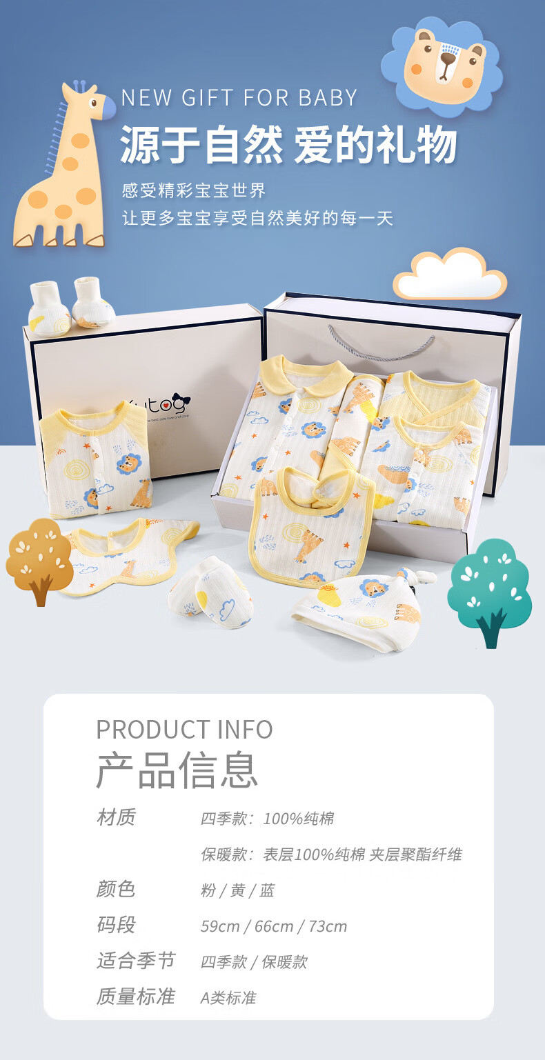 Category A baby clothes gift box summer four seasons newborn baby full moon set meet and greet gift maternity package Fairyland Yellow 20 pieces Four Seasons 73cm 6-12 months