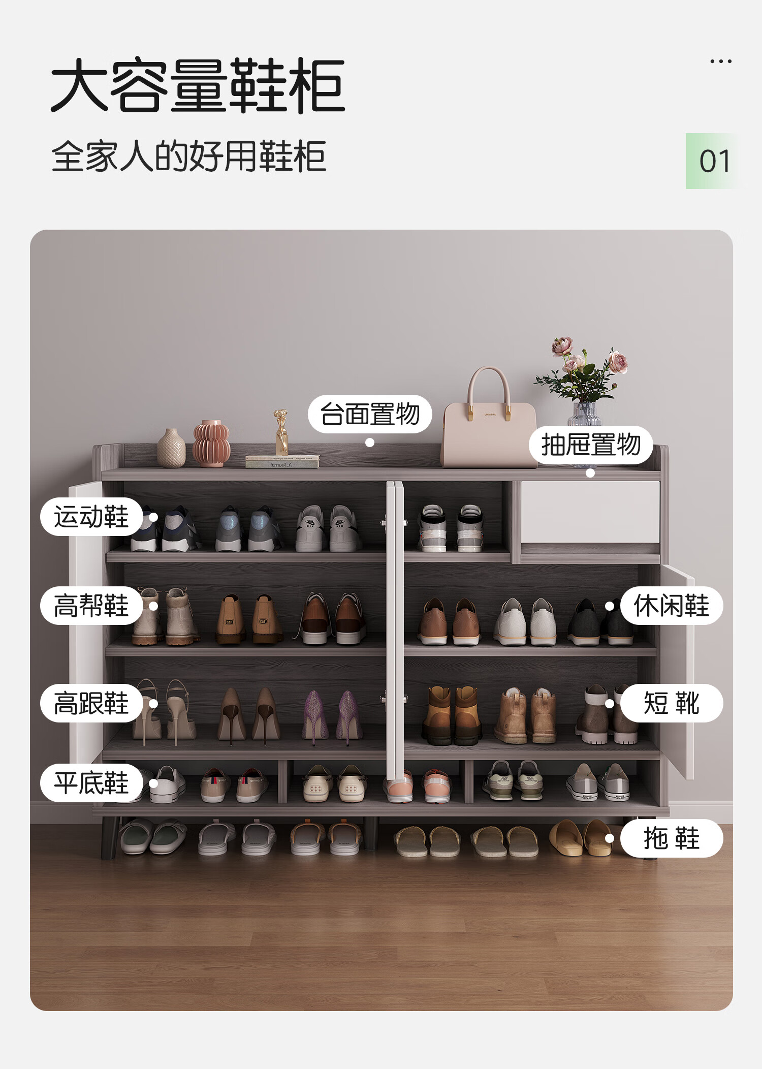 LEADTEK shoe cabinet entrance door storage cabinet large capacity one-piece wall entrance cabinet multi-layer household storage rack solid wood shoe rack store manager recommended - thickened 15MM board 100*32*100CM