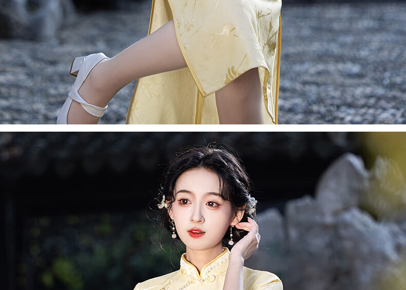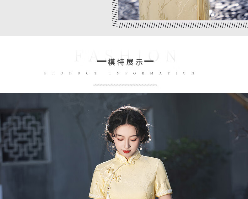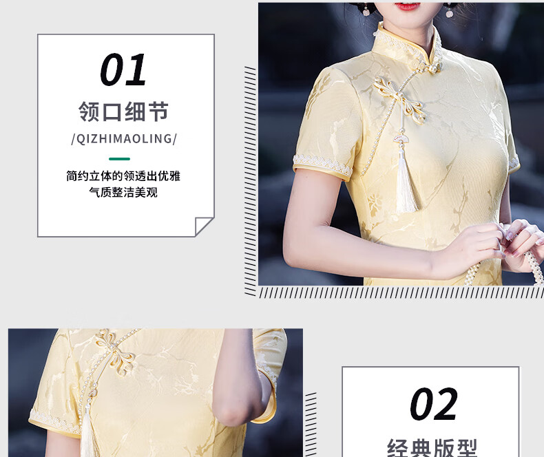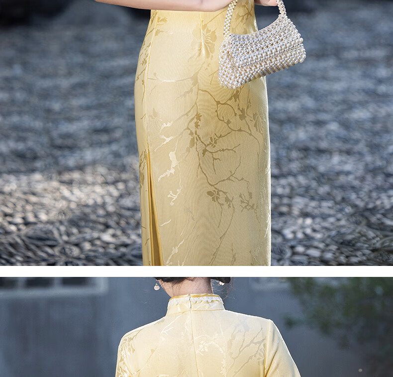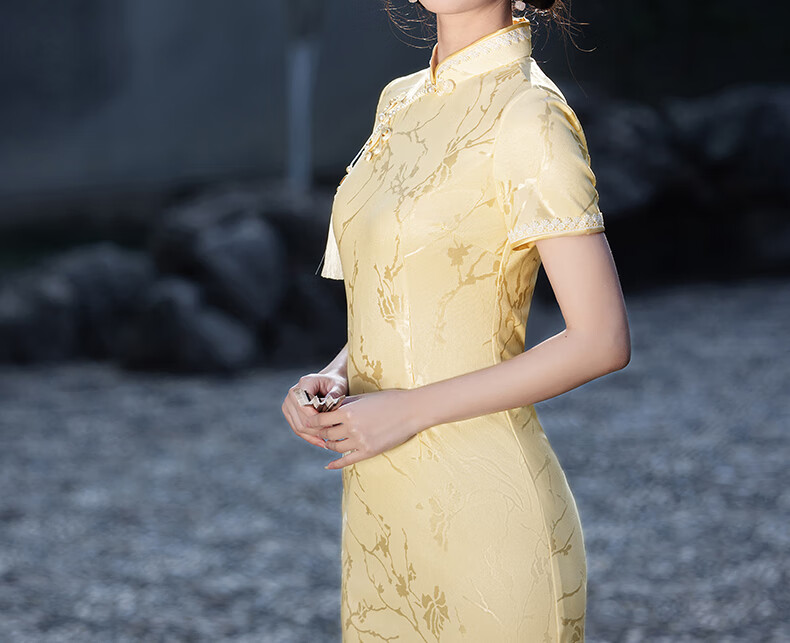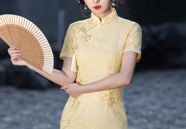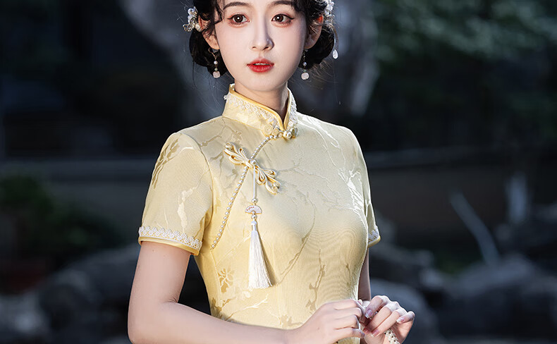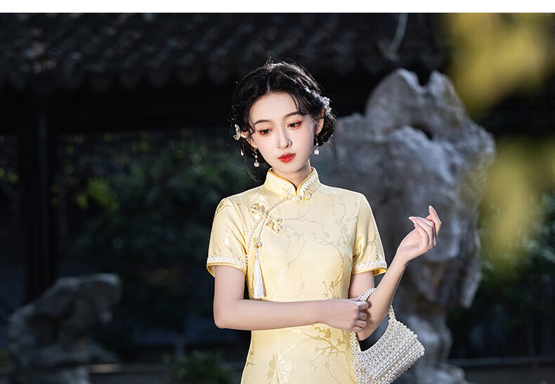 Jialong Mingxiu goose yellow temperament cheongsam women's new jacquard dress 2025 summer goose yellow M