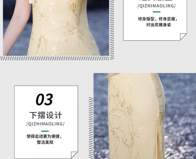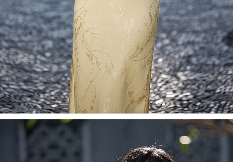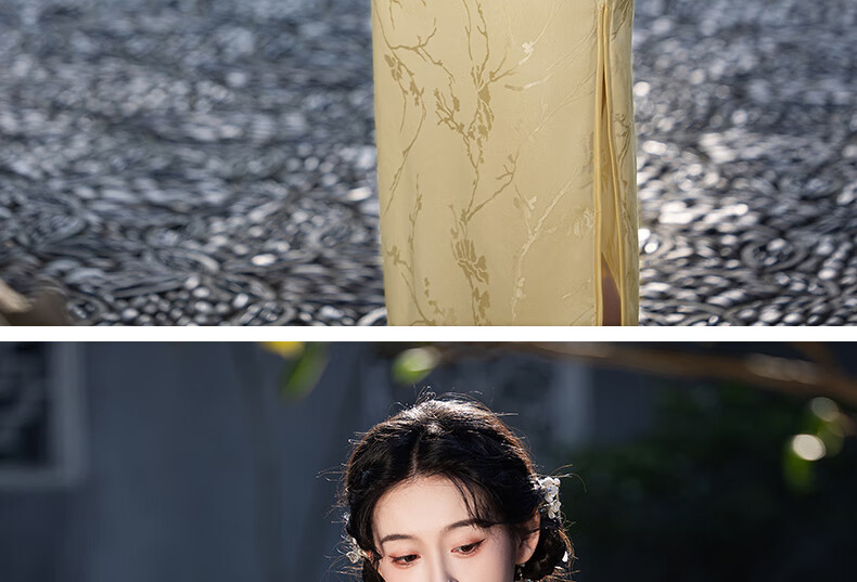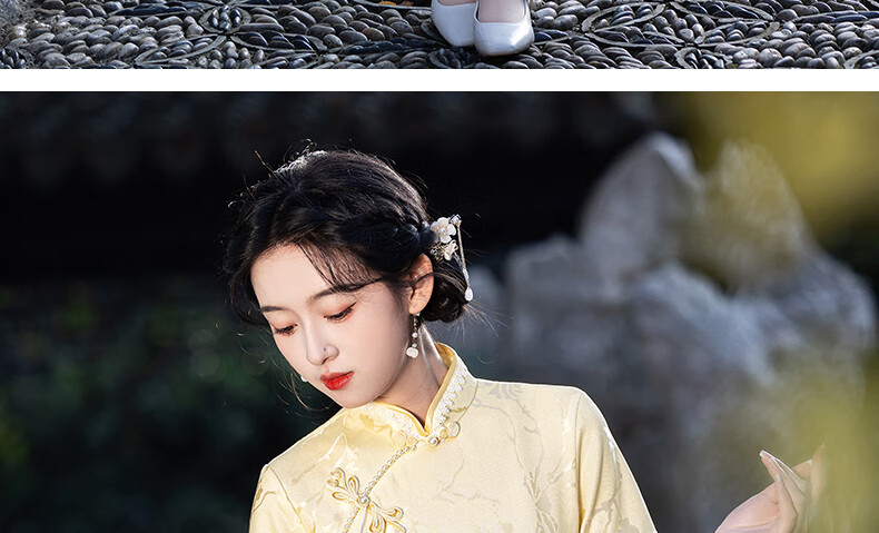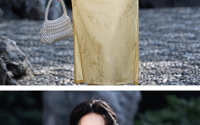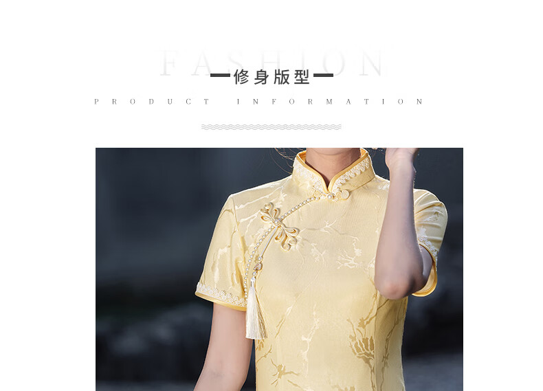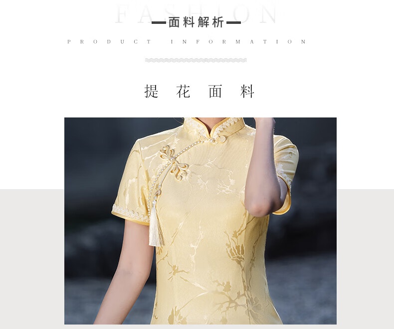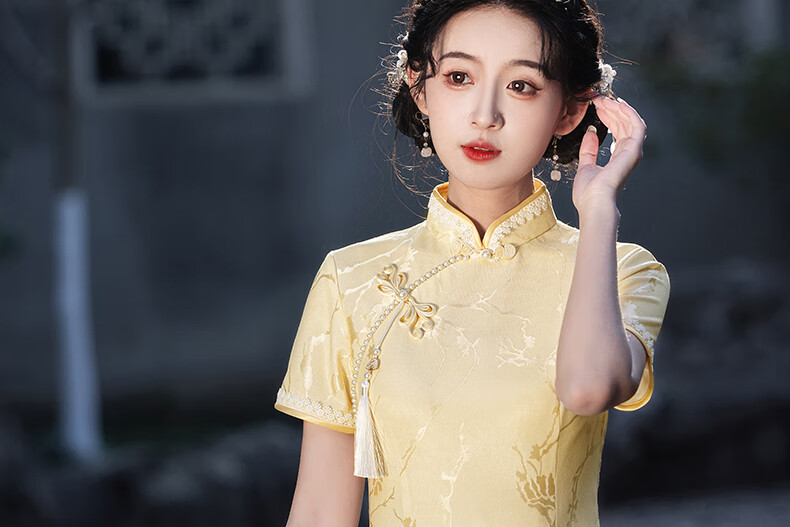 Jialong Mingxiu goose yellow temperament cheongsam women's new jacquard dress 2025 summer goose yellow M