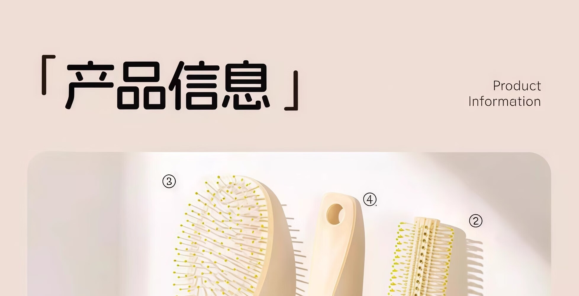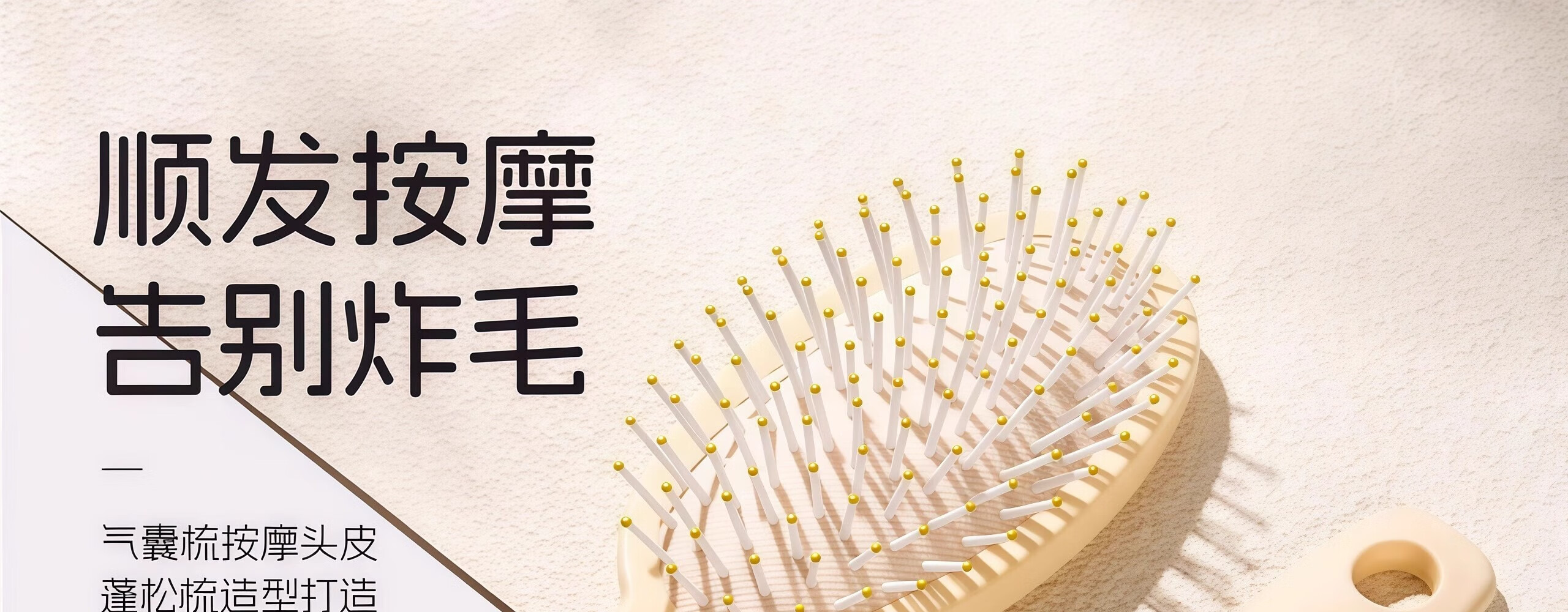Fluffy air cushion comb long hair comb set combination air bag straight hair comb student dormitory female home curly hair massage comb cream color 4-piece set