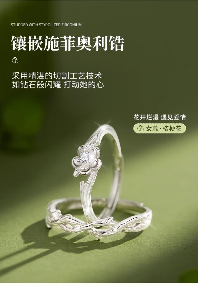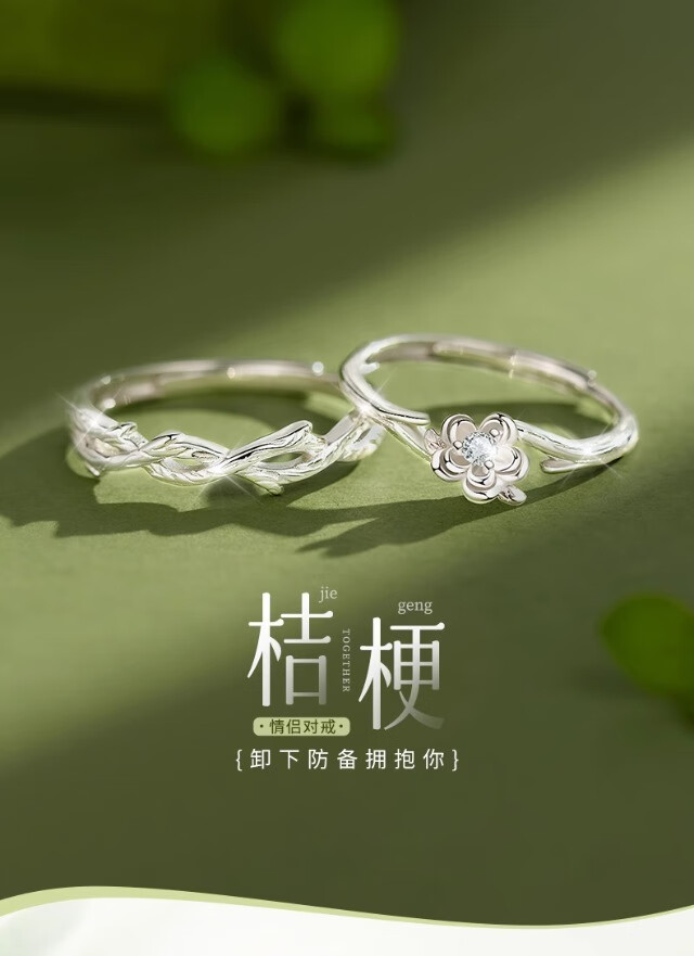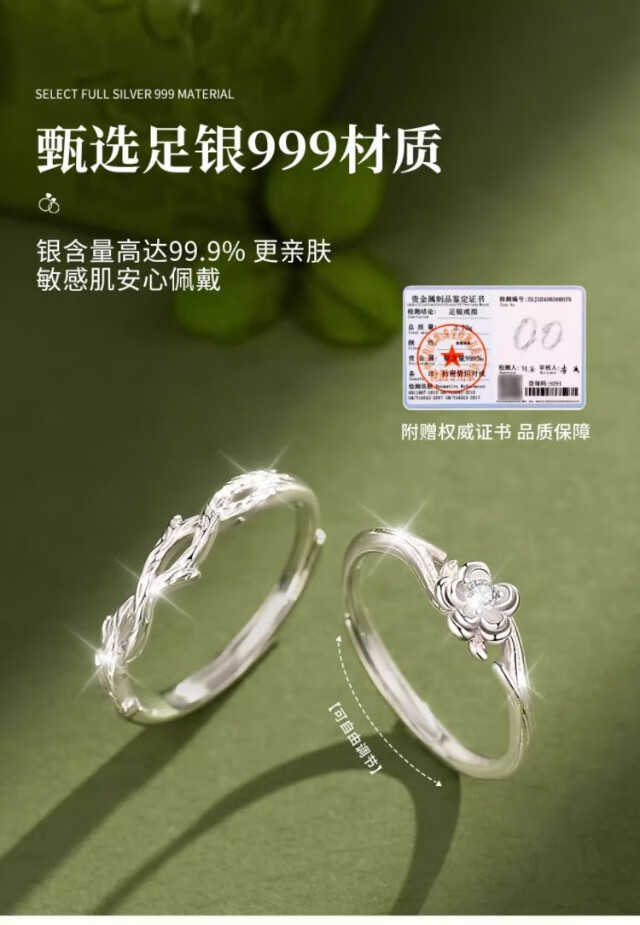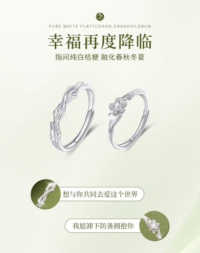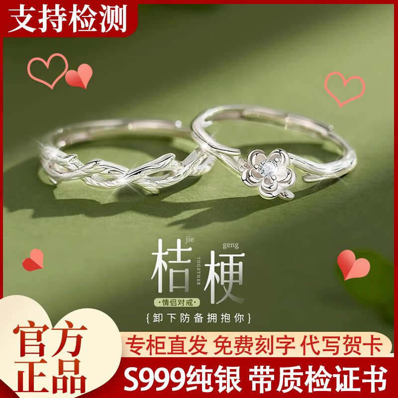 KZD Old Phoenix Pure Silver 9999 Platycodon Flower Couple Ring Niche Design Ring Pair of Men and Women New Style Platycodon Couple Ring S999 Pure Silver Jewelry Counter Gift Box Official Direct Delivery Certificate