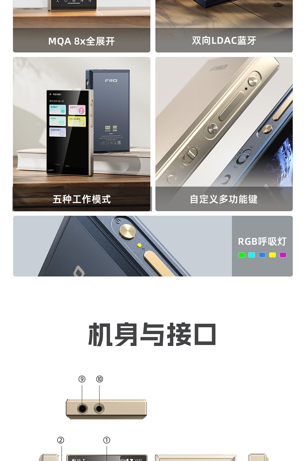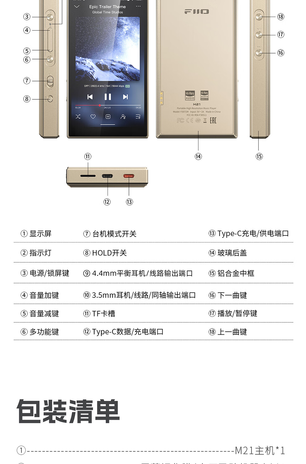 FiiO M21 HiFi player mp3 lossless music Android portable Bluetooth WiFi balanced DSD decoding player dark blue