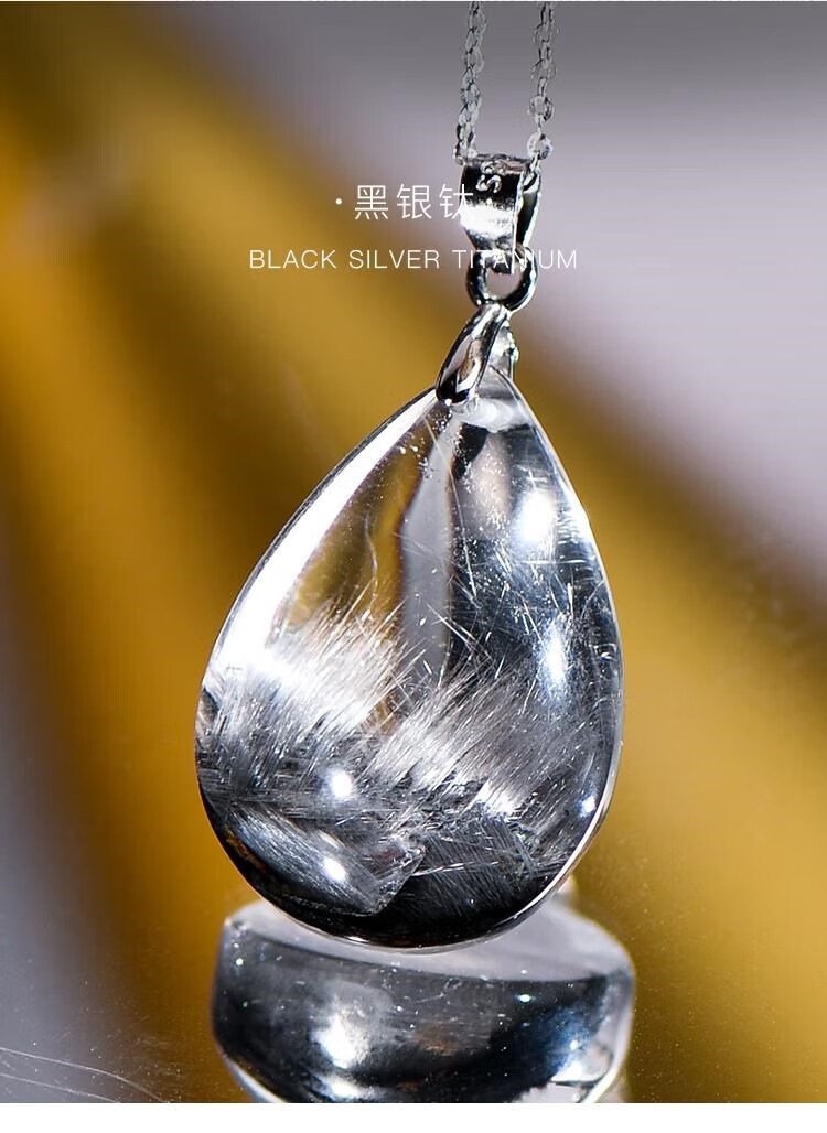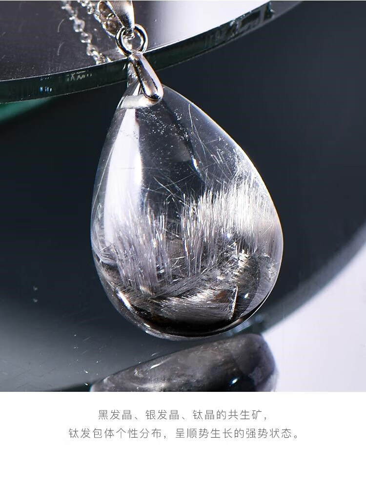 Eternal Symbol Collection Grade Light Luxury Crystal Brazilian Old Mine Black Silver Titanium Crystal Hair Pendant Necklace as a Valentine’s Day Gift for Your Girlfriend Collection Grade Black Silver Titanium Crystal About 3 Grams