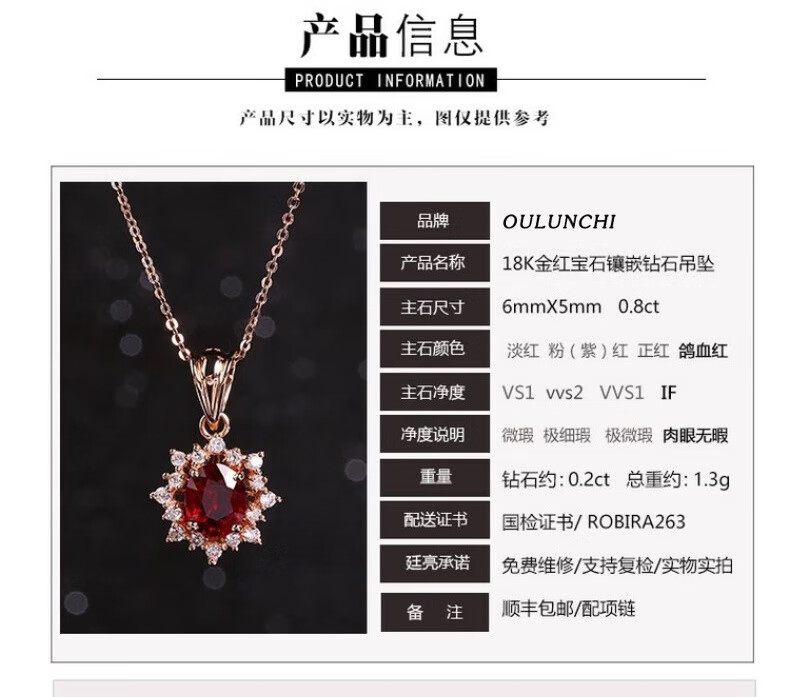 Orenchi Necklace for Women Natural Ruby 18K Gold Diamond Pendant Luxury Jewelry Wedding Anniversary Birthday Gift for Wife Snowflake Ruby Necklace (Main Stone Approximately 0.8ct)