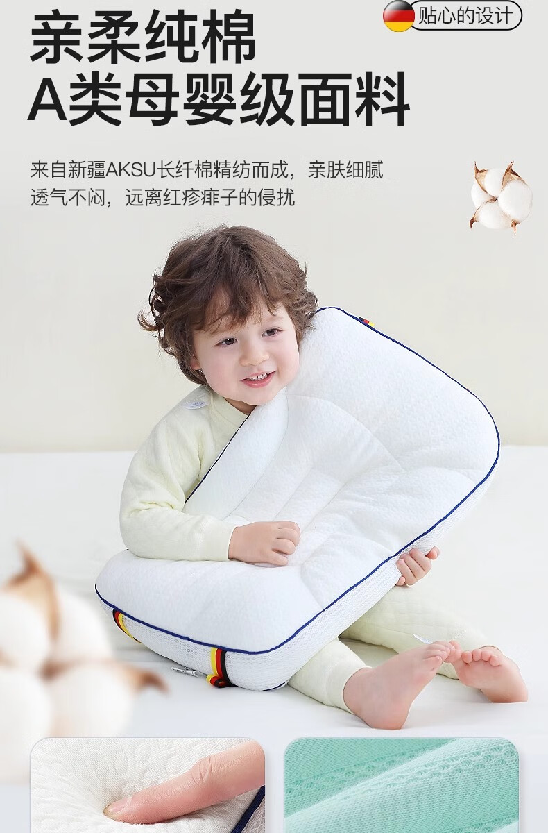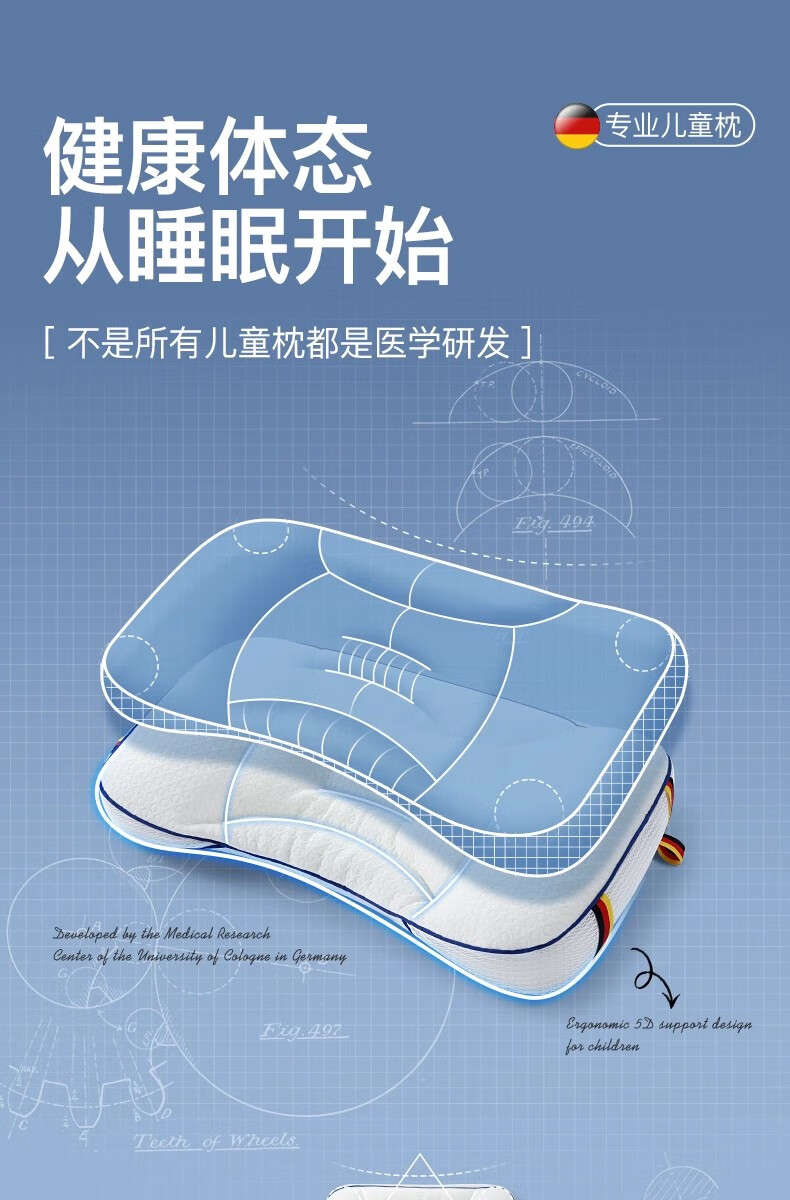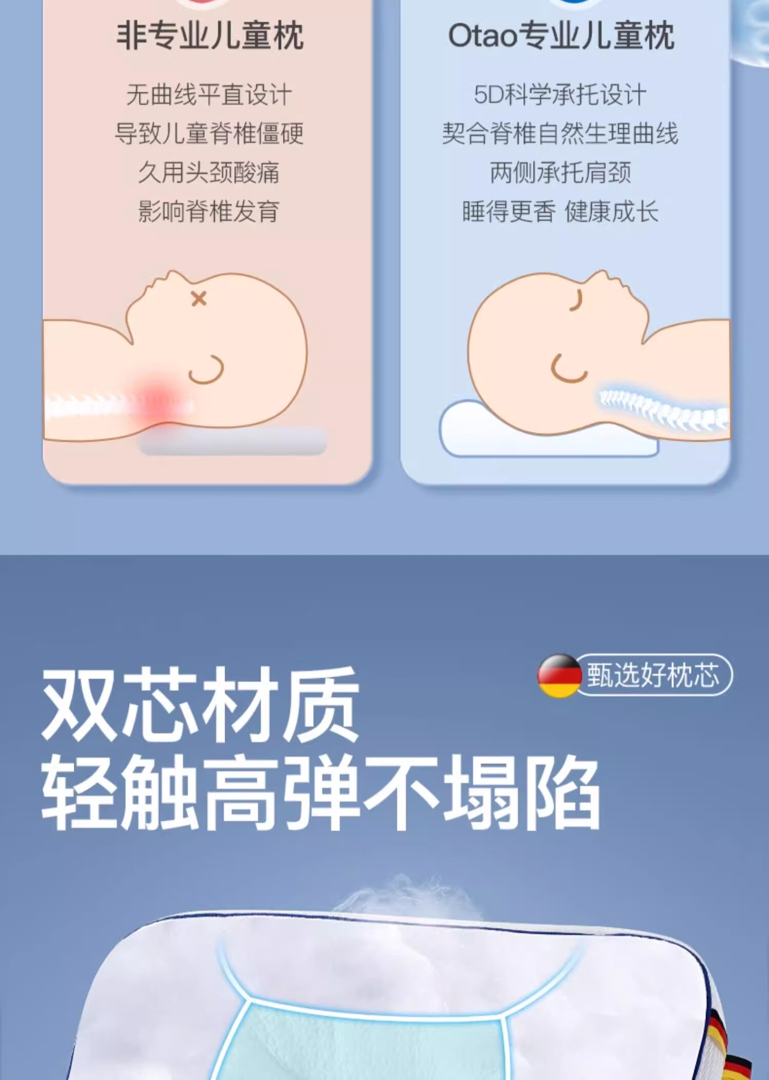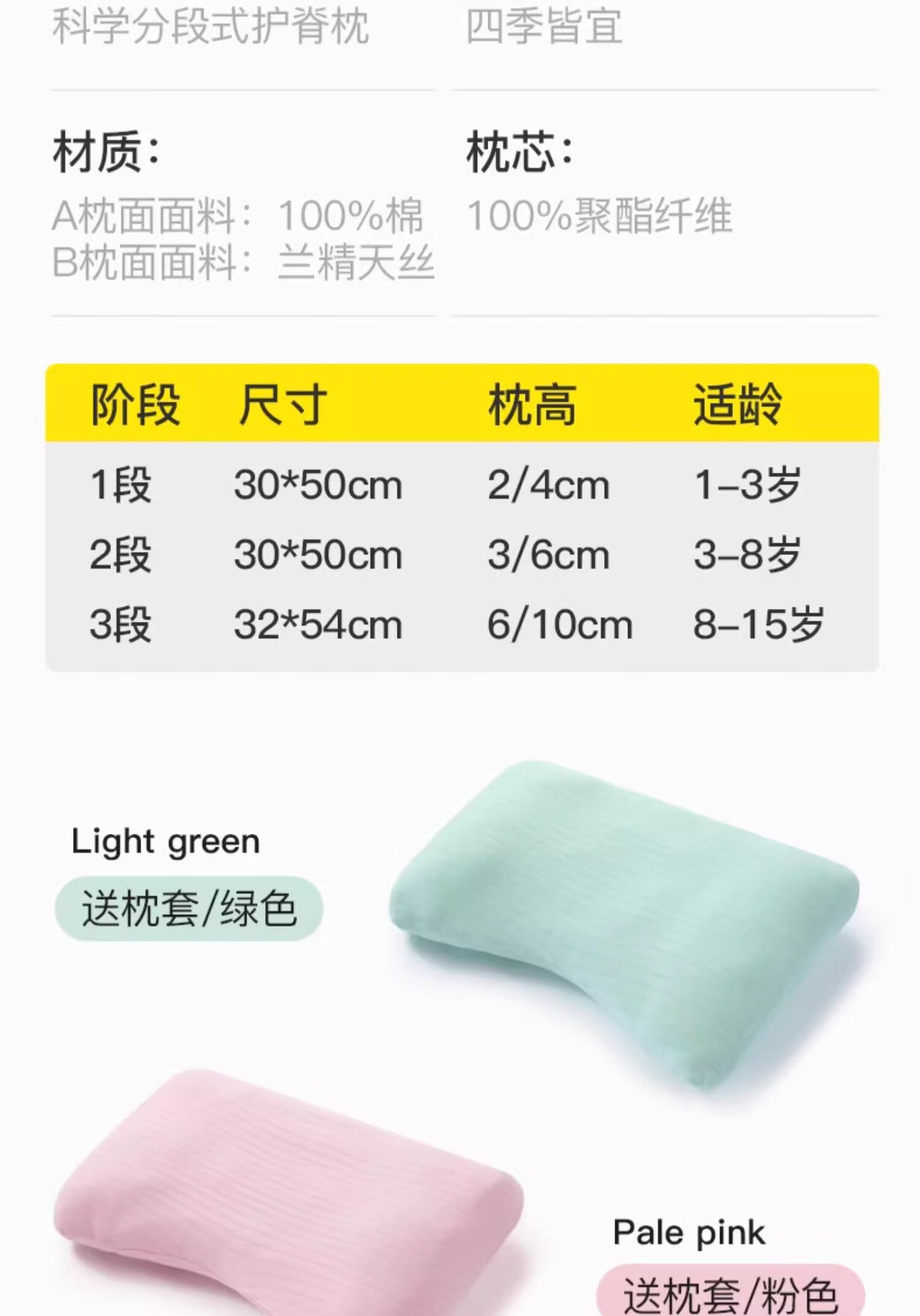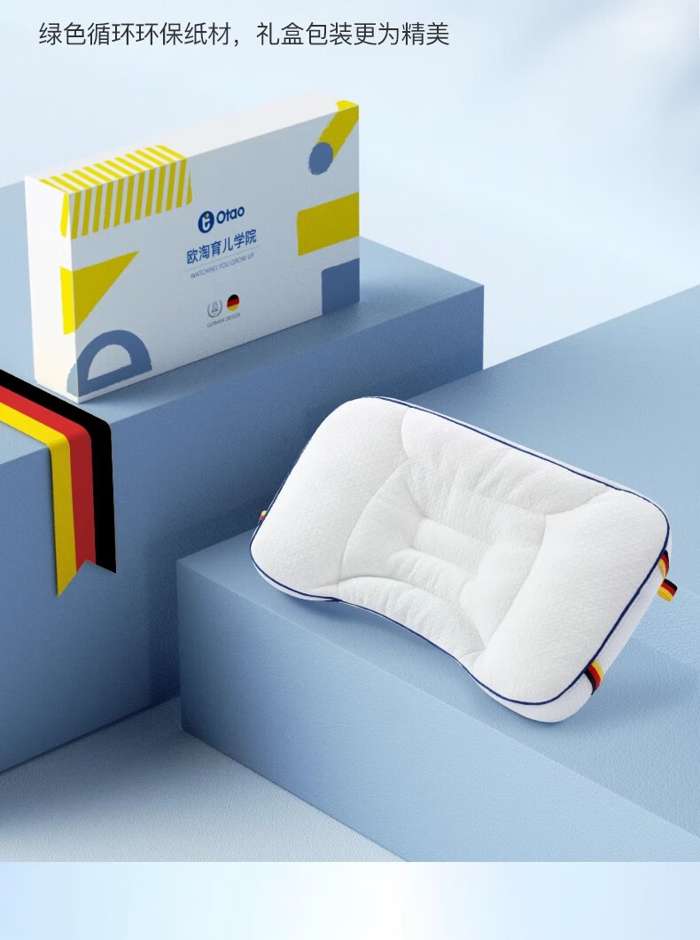 Ootao children's pillow shaped neck pillow 1-6-15 years old universal baby double-sided partition pillow side sleeping pillow single pillowcase new + green pillowcase H2 segment suitable for 3-8 years old sleeping height 3.5