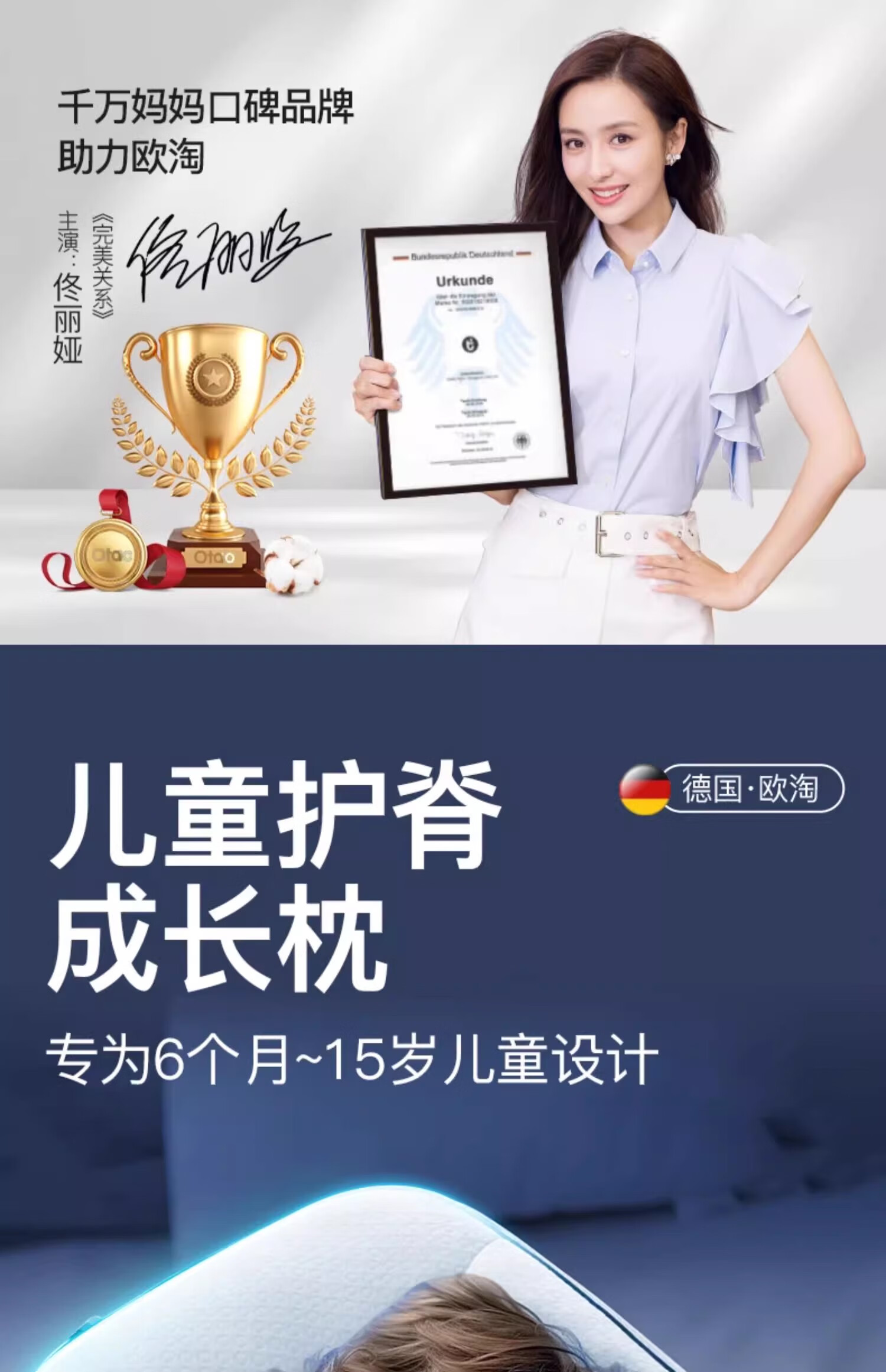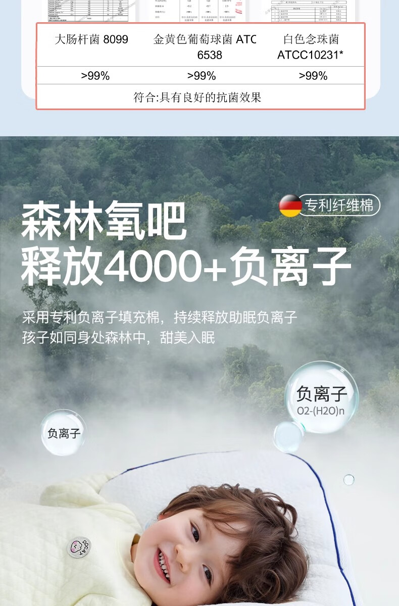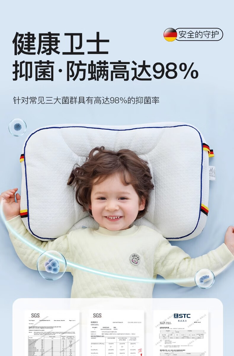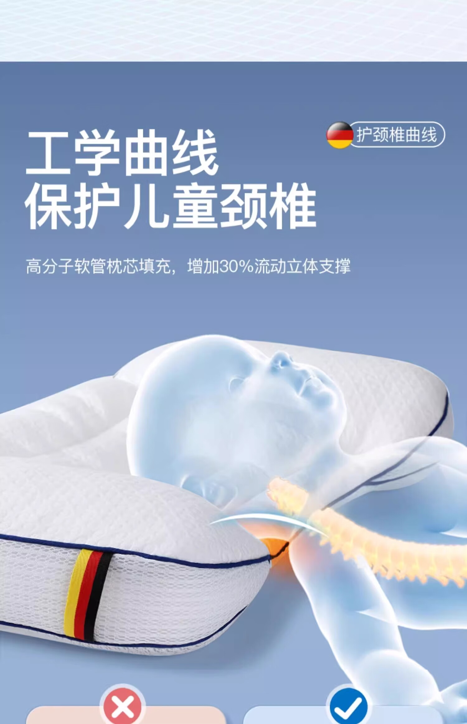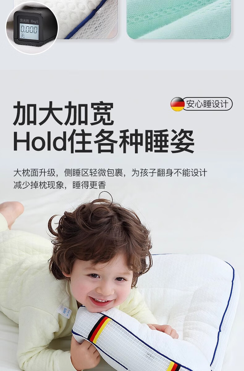 Ootao children's pillow shaped neck pillow 1-6-15 years old universal baby double-sided partition pillow side sleeping pillow single pillowcase new + green pillowcase H2 segment suitable for 3-8 years old sleeping height 3.5