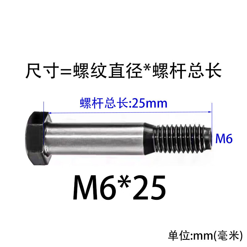 Jingxuan 8.8 grade reamed hole bolt plug and screw hole making bolt GB27 external hexagonal positioning plug screw M6*25 (10 pieces)