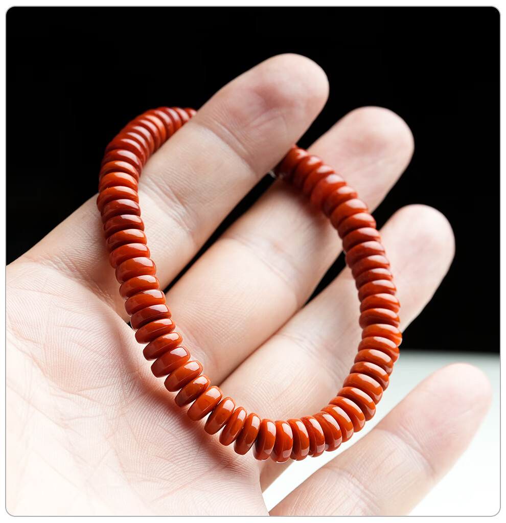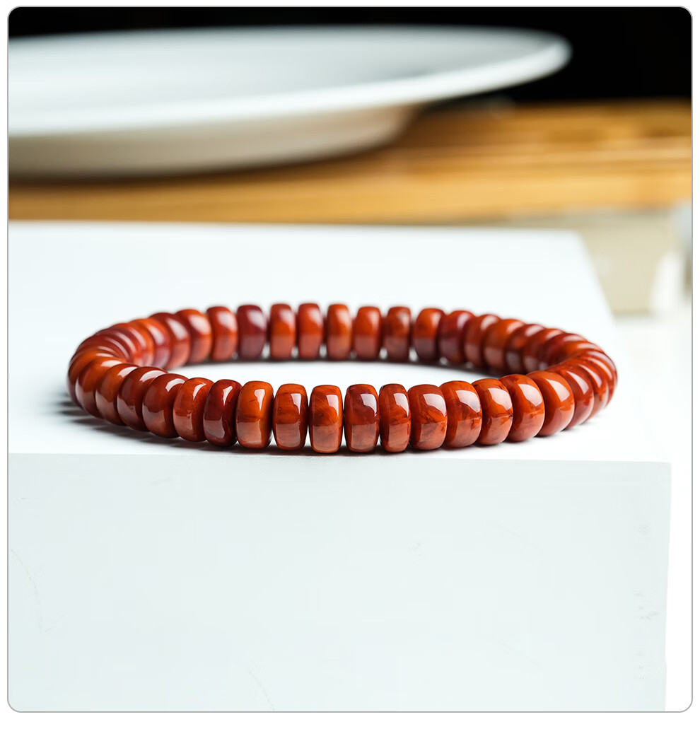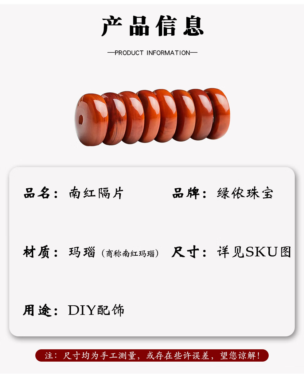 Lv Nong Jewelry Liangshan Nanhong Spacer Agate Gasket Spacer Beads Diamond Star and Moon Bodhi Buddha Beads DIY Matching Beads Persimmon Red-Thin Section Diameter About 8mm/2 Pieces