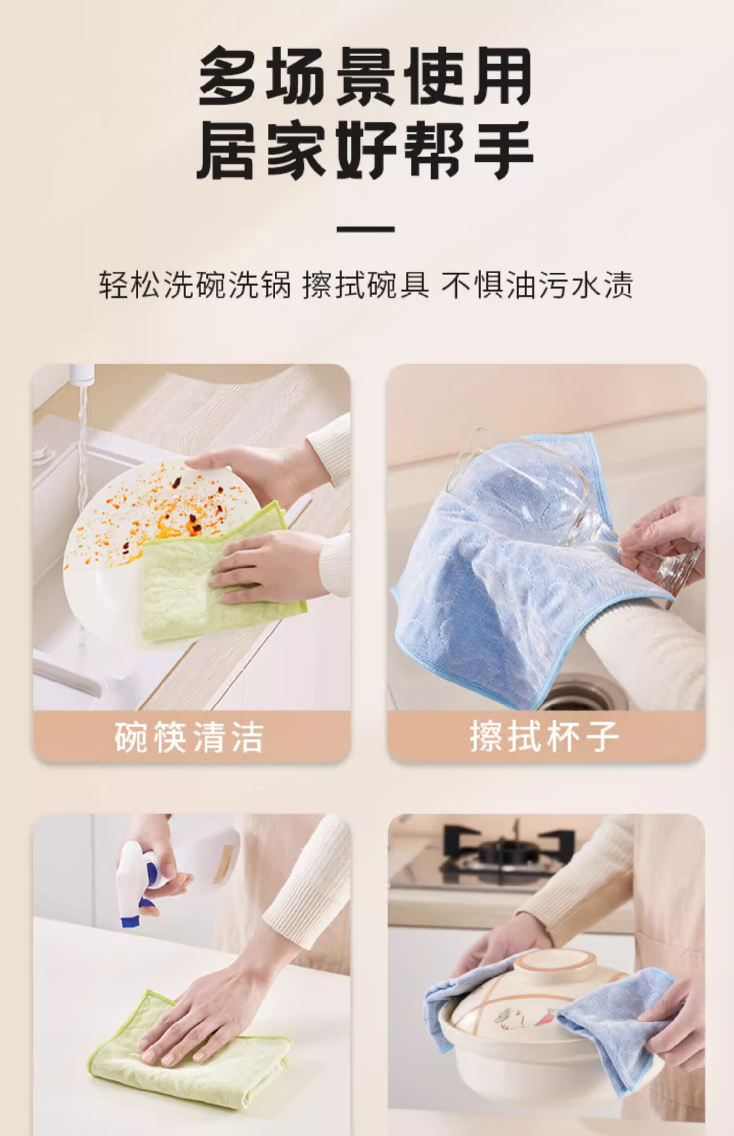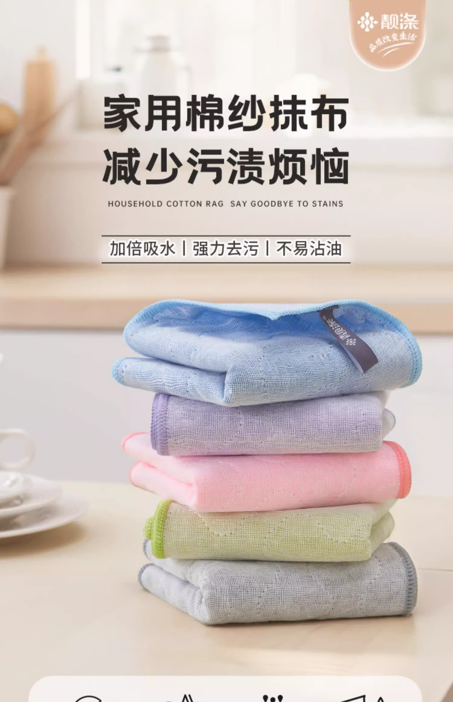 Beautiful polyester dishcloth, not easy to stain with oil, easy to clean, pure cotton thickened dishcloth, absorbent and not easy to shed, kitchen dish towel, household 10 small size 20*20cm mixed pack