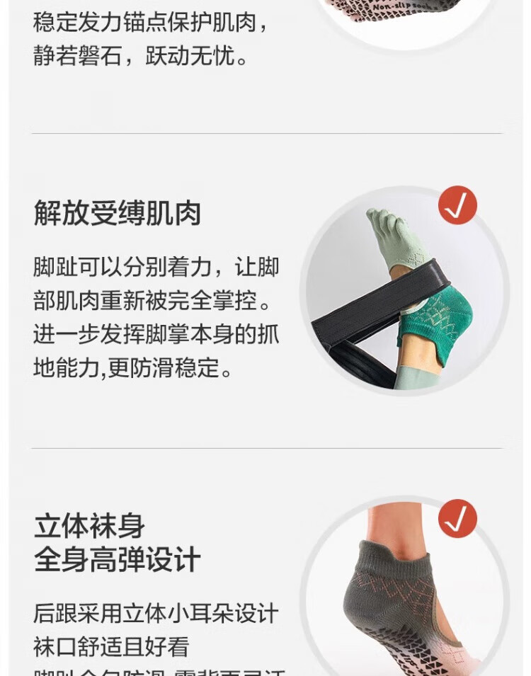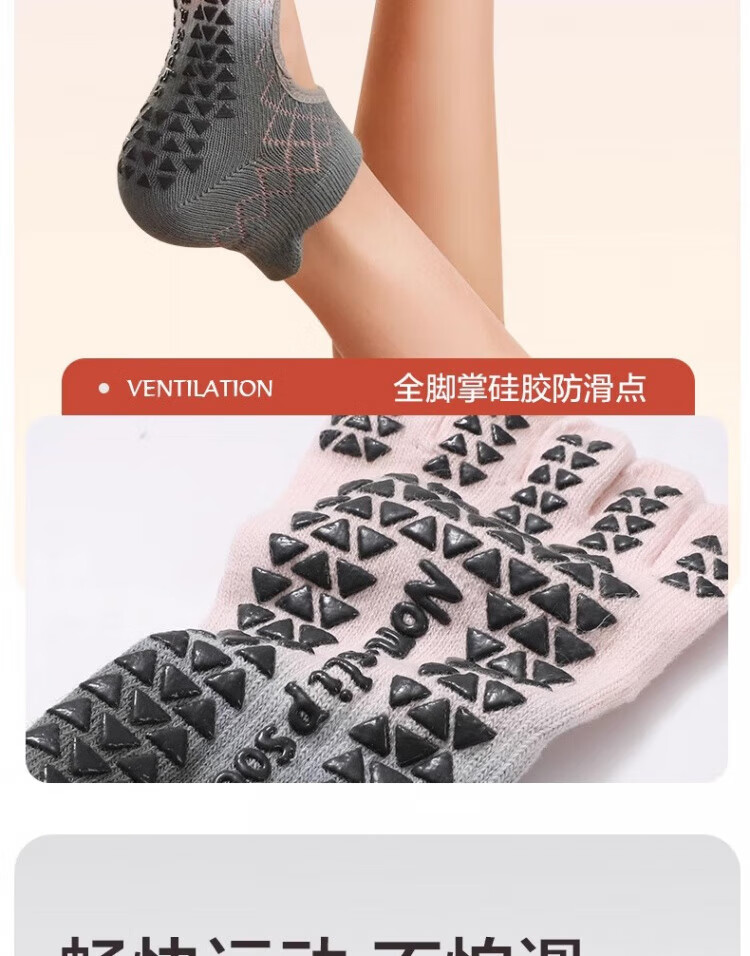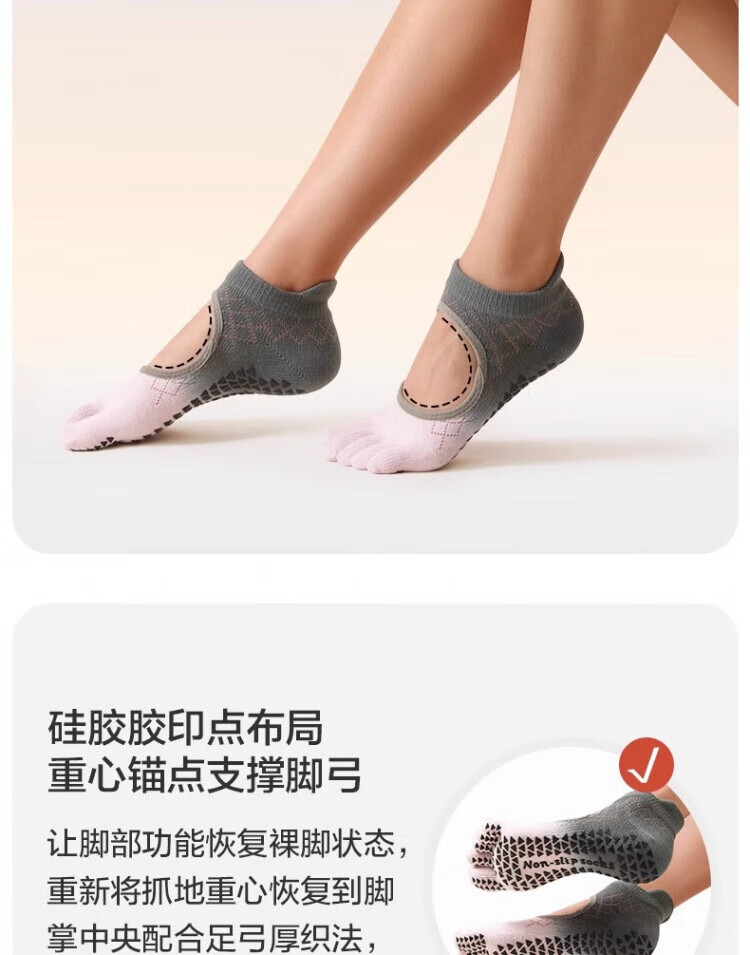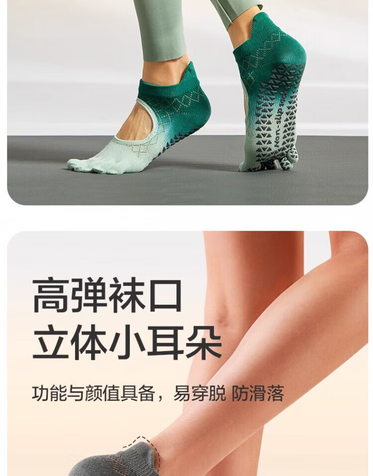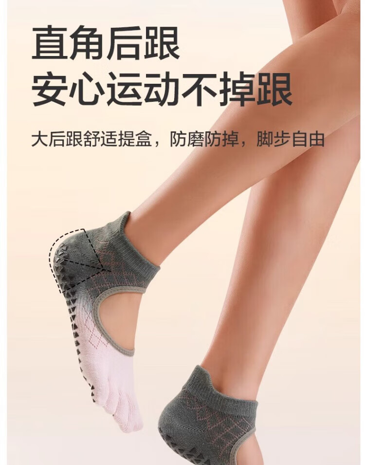 JCZS German brand yoga socks, non-slip, women's Pilates special adult five-finger cotton socks for indoor sports and fitness, olive green, anti-skid, sweat-absorbent/non-stinky feet