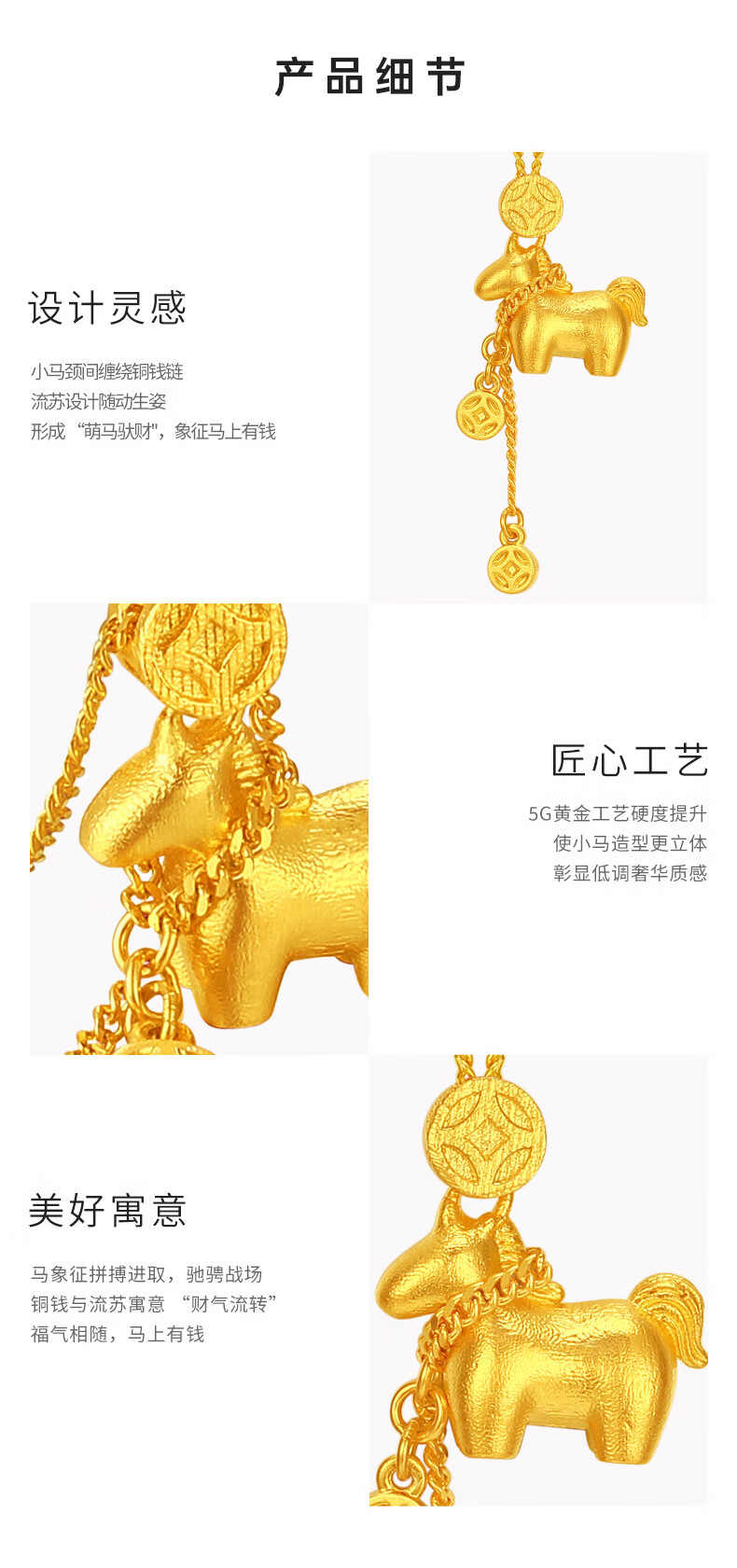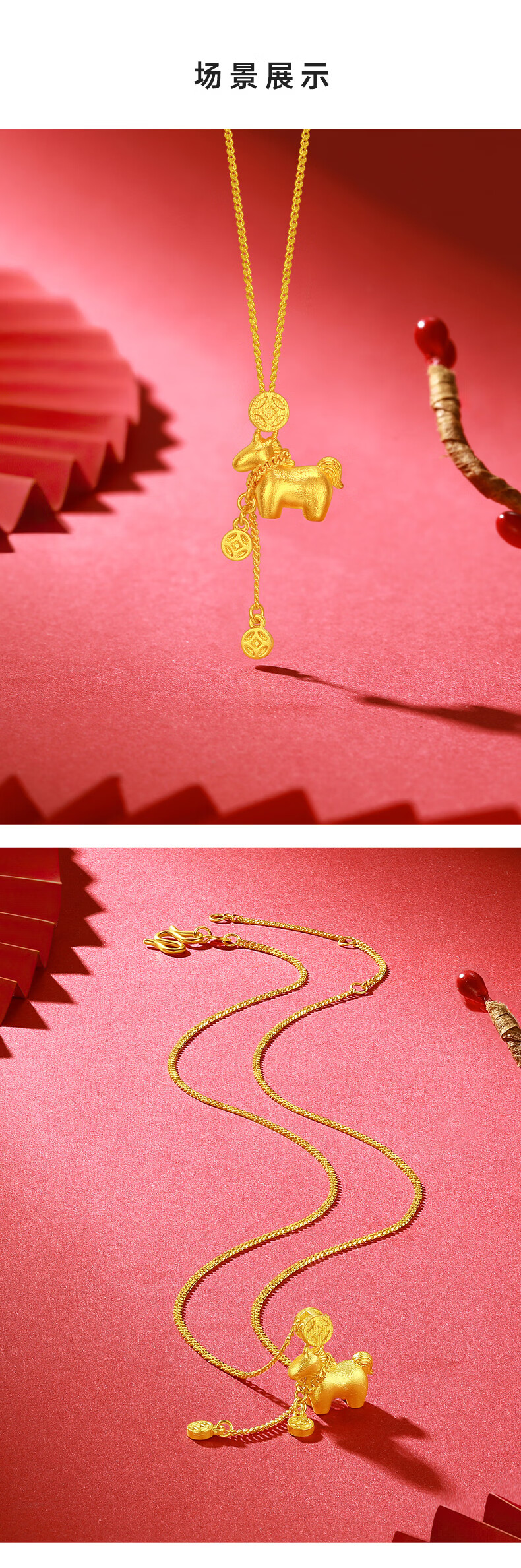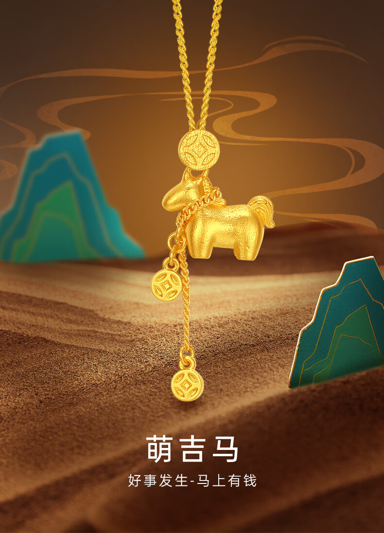 Chao Acer Get Rich Now Gold Necklace Women's Foot Gold Pendant Set Chain 5G Gold Zodiac Year of the Horse Animal Year Gift Price 6.8g Chain length about 45cm