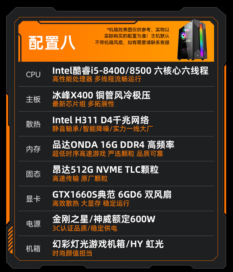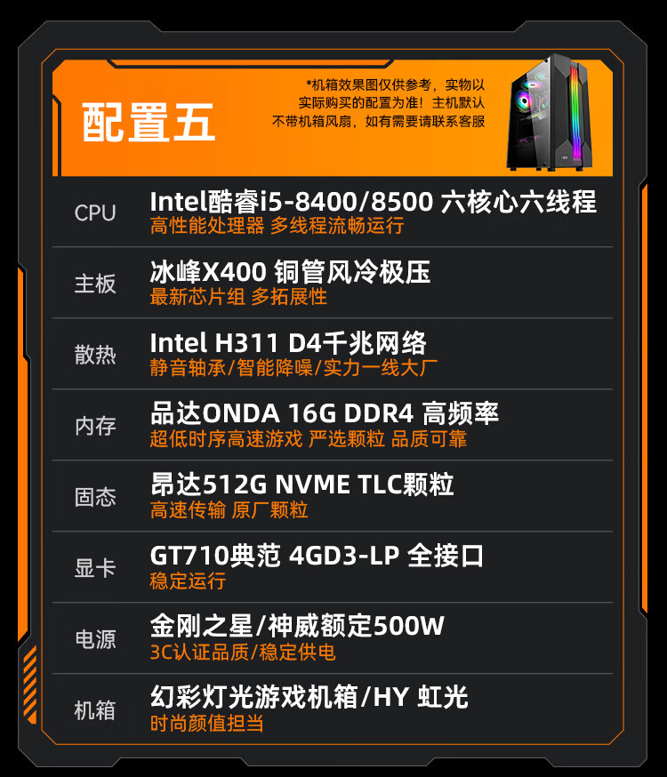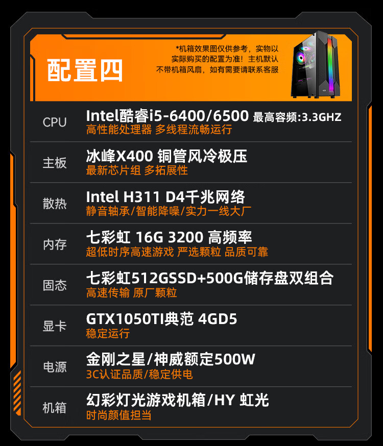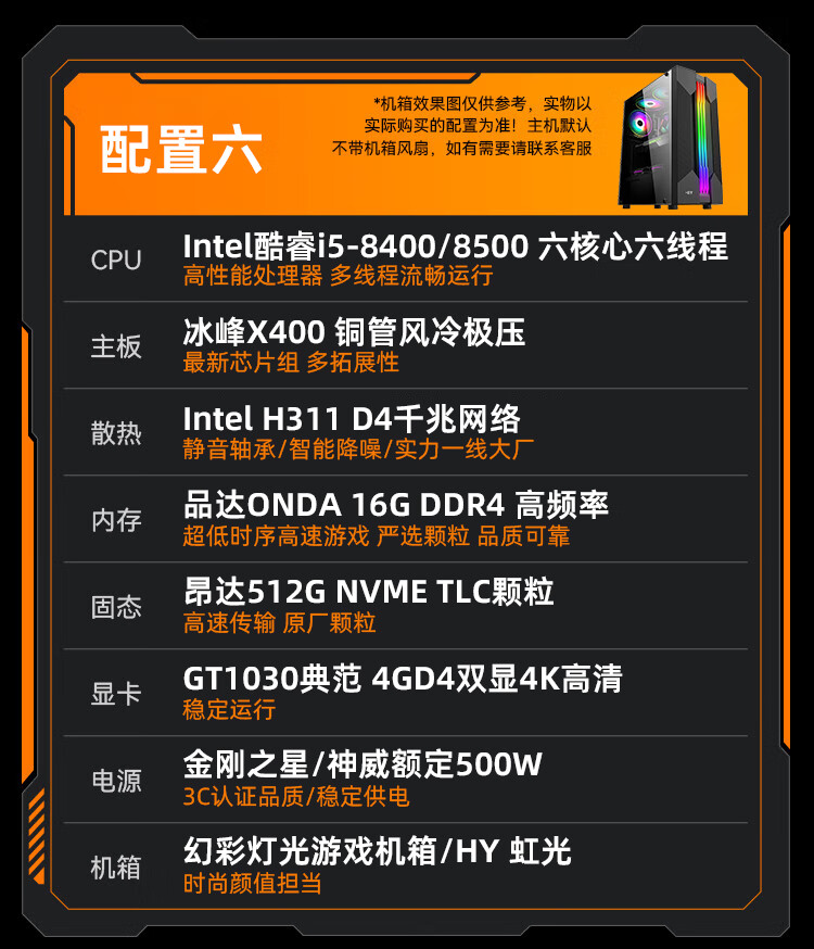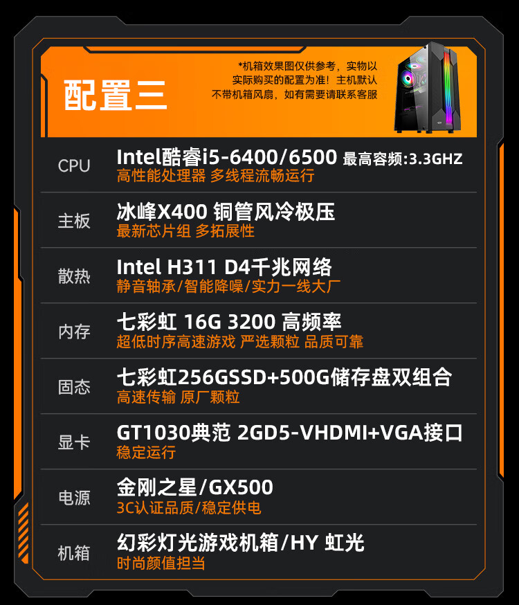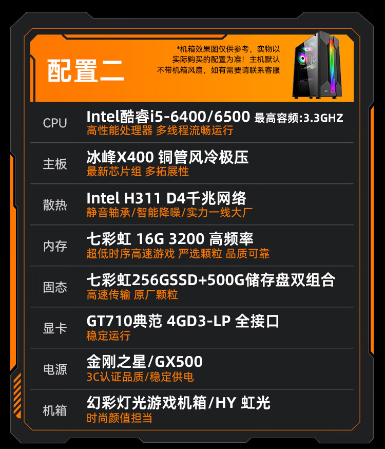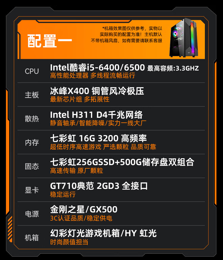 CZZ Core i5-6400/6500/GTX1660S independent graphics computer host enterprise procurement office home full set of DIY assembly machine i5-6400/6500/GT710 2GD3
