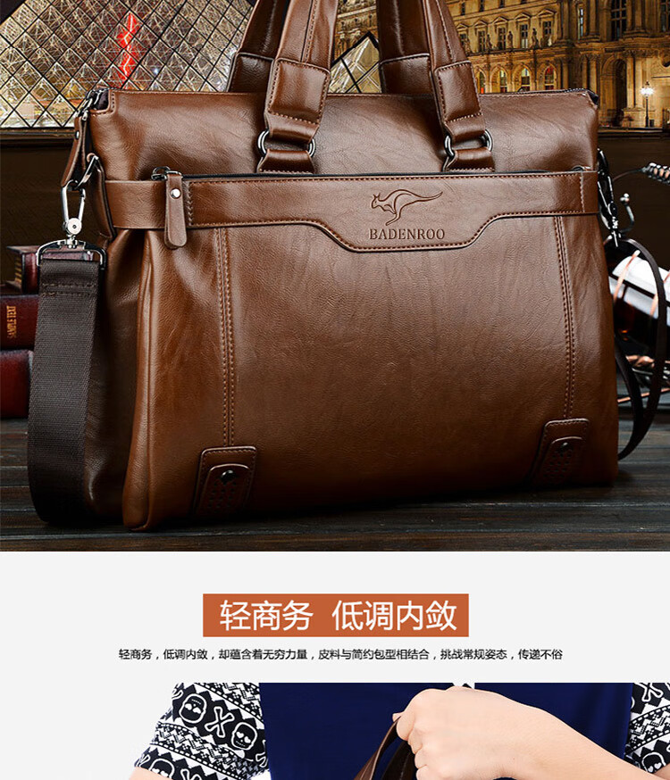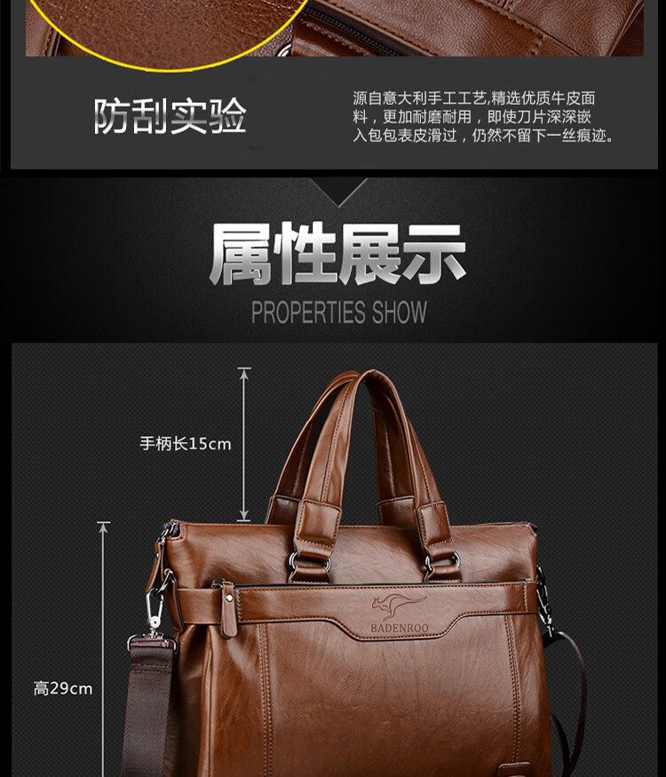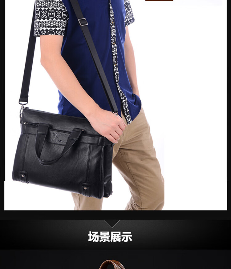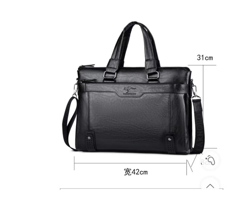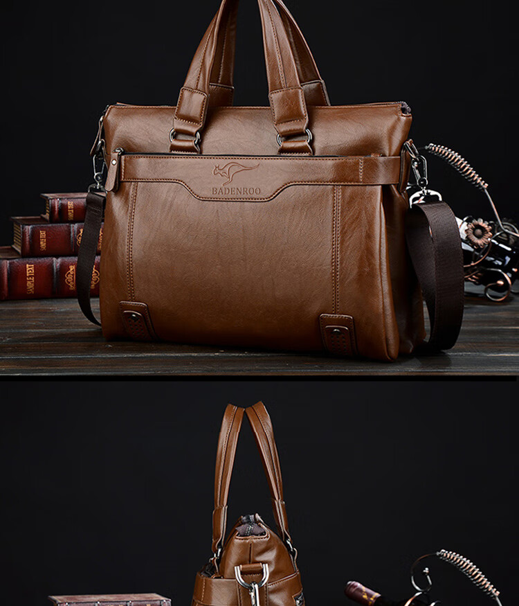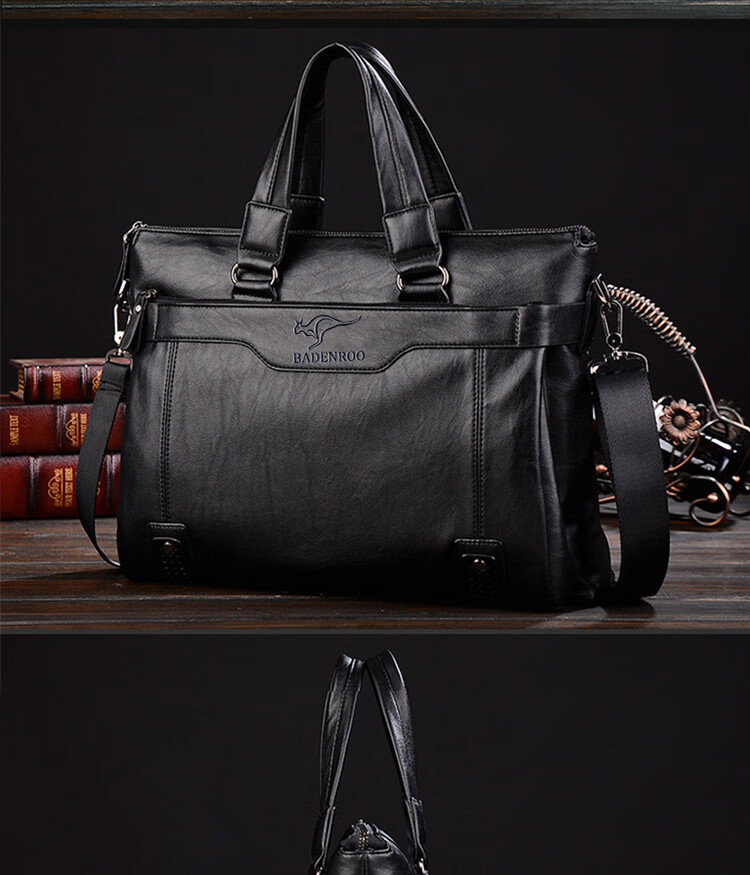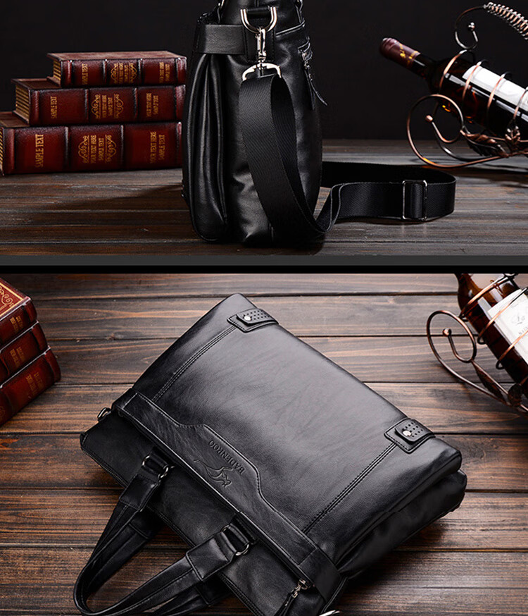 Kangaroo Men's Bag Business Briefcase Genuine Leather Men's Bag Shoulder Crossbody Bag Handbag Men Black XL 15