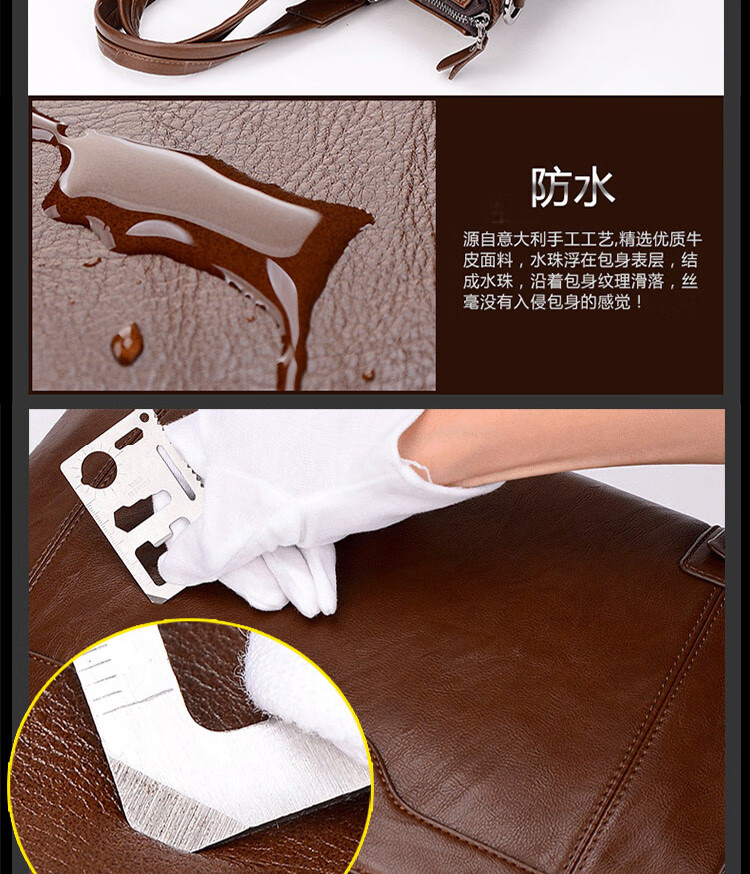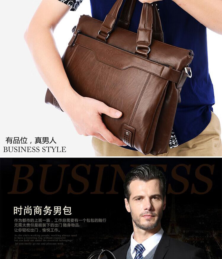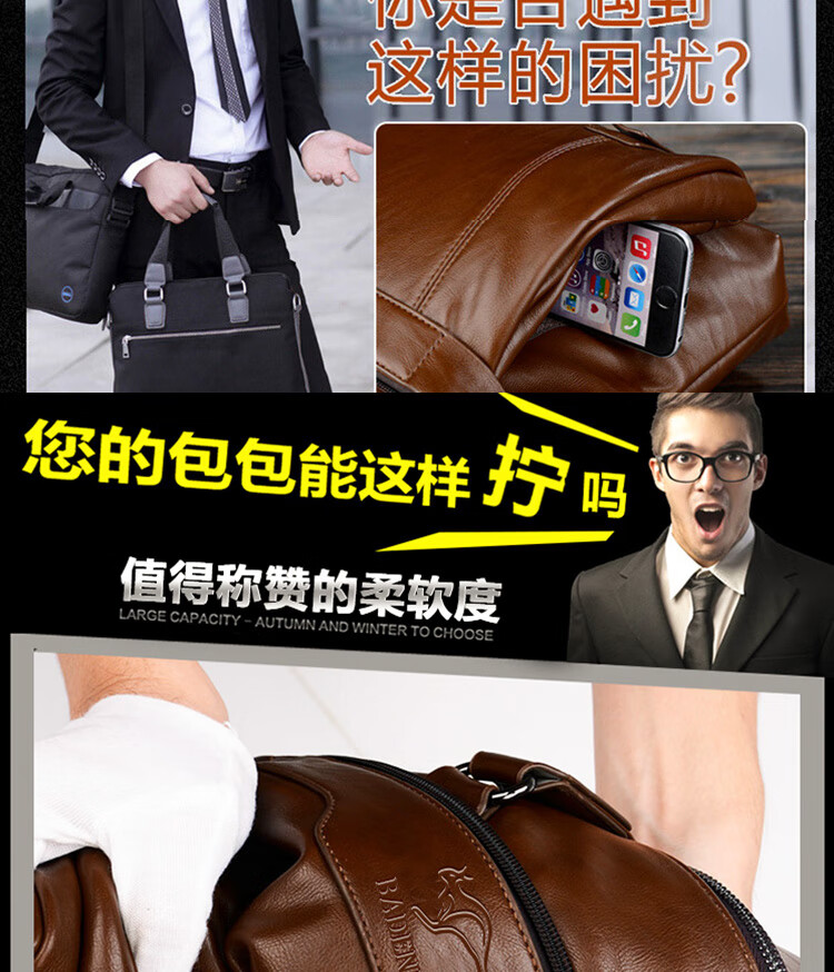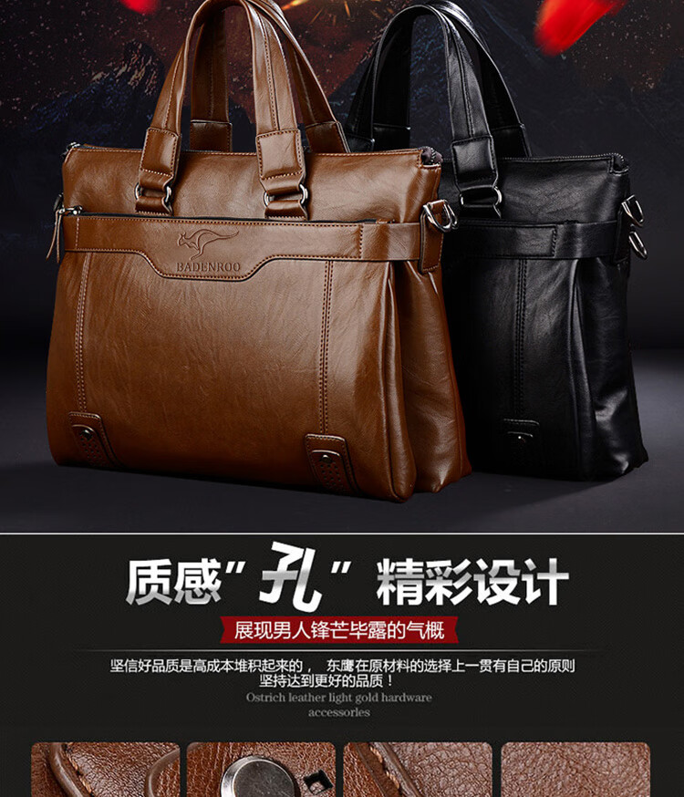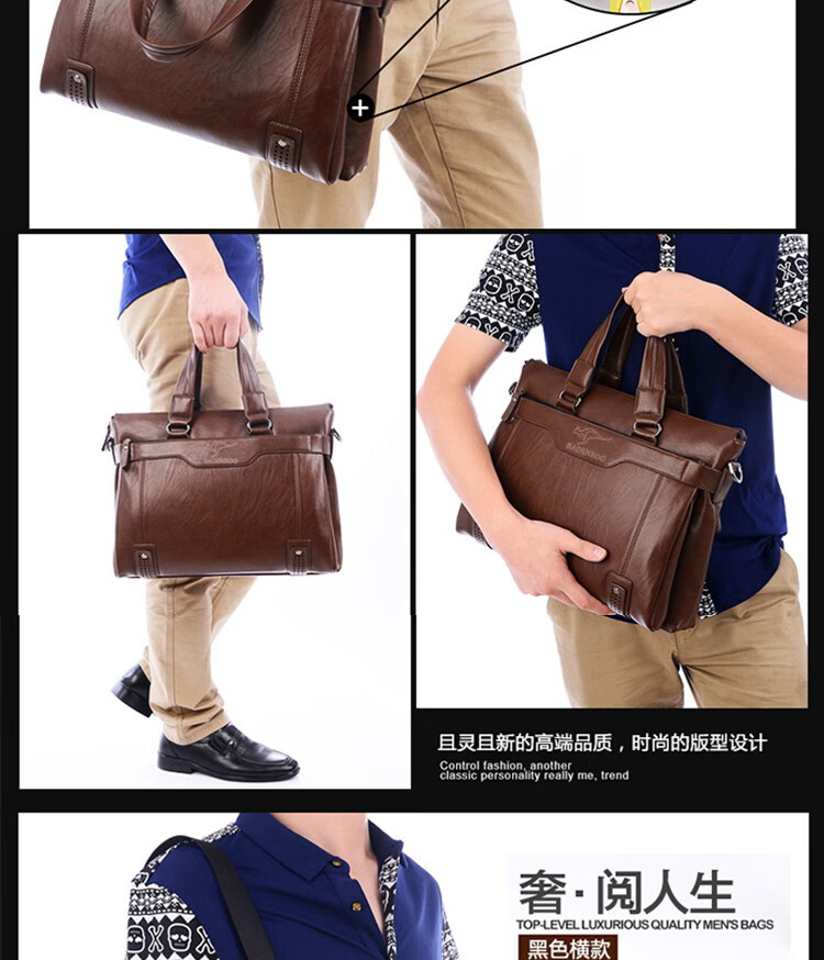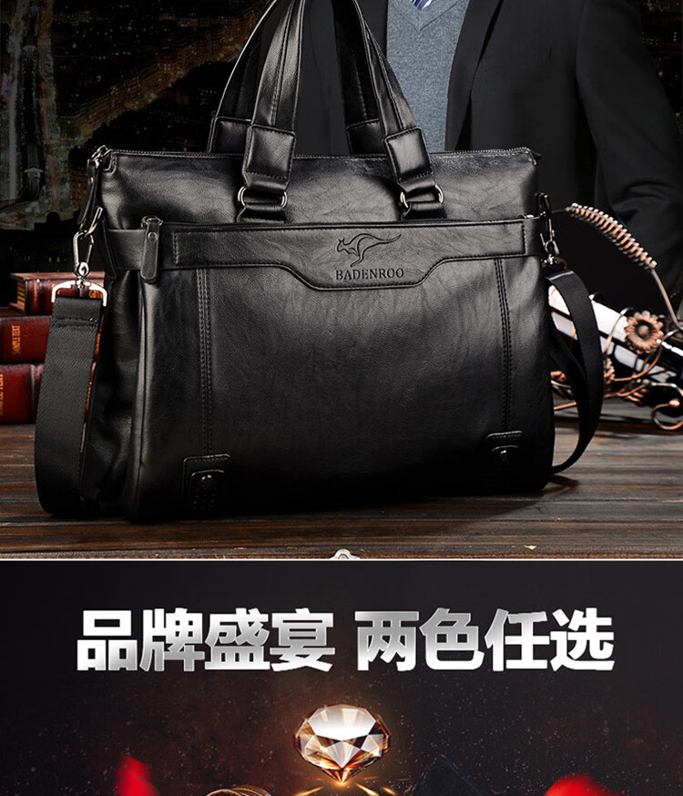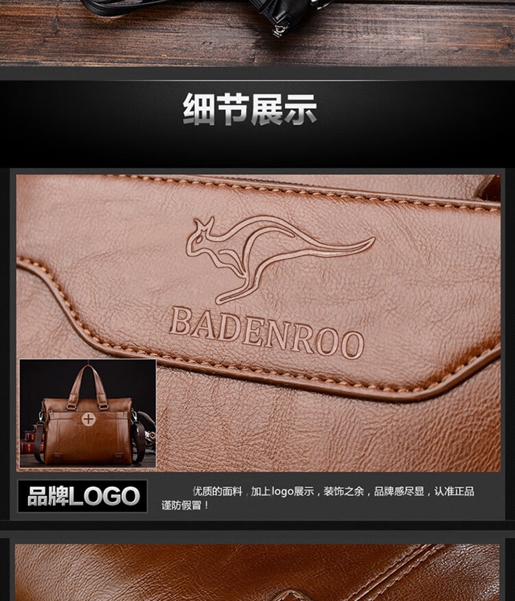 Kangaroo Men's Bag Business Briefcase Genuine Leather Men's Bag Shoulder Crossbody Bag Handbag Men Black XL 15