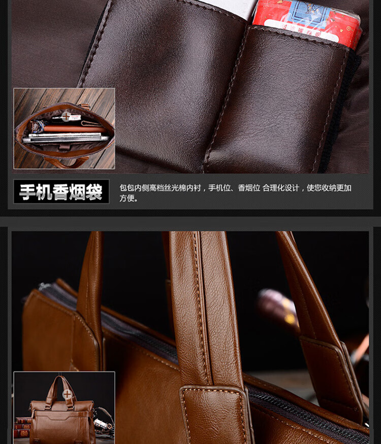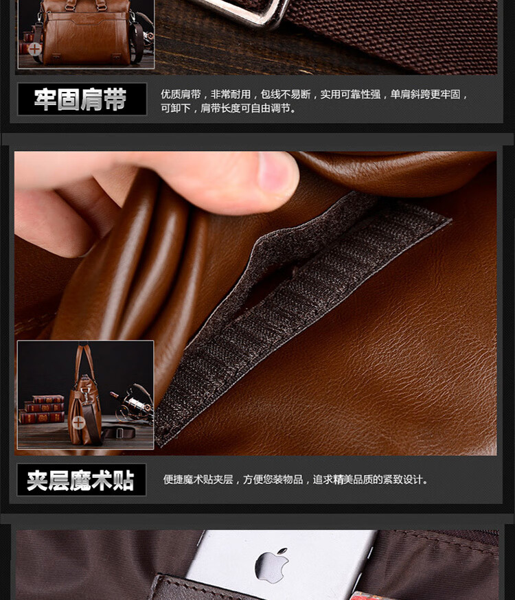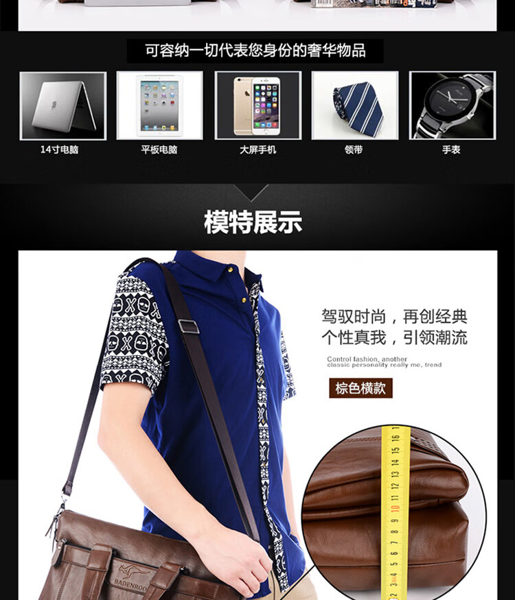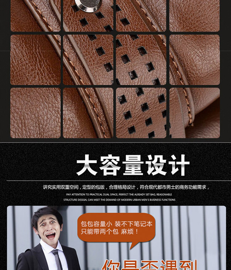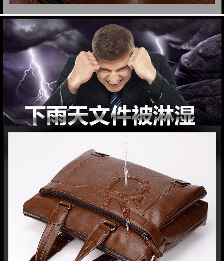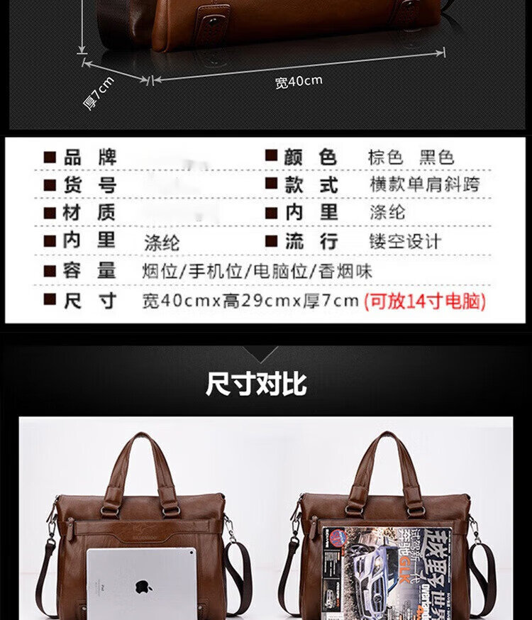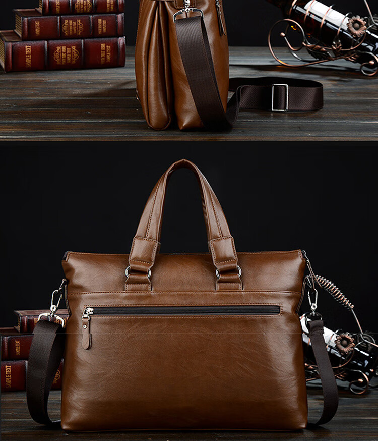 Kangaroo Men's Bag Business Briefcase Genuine Leather Men's Bag Shoulder Crossbody Bag Handbag Men Black XL 15
