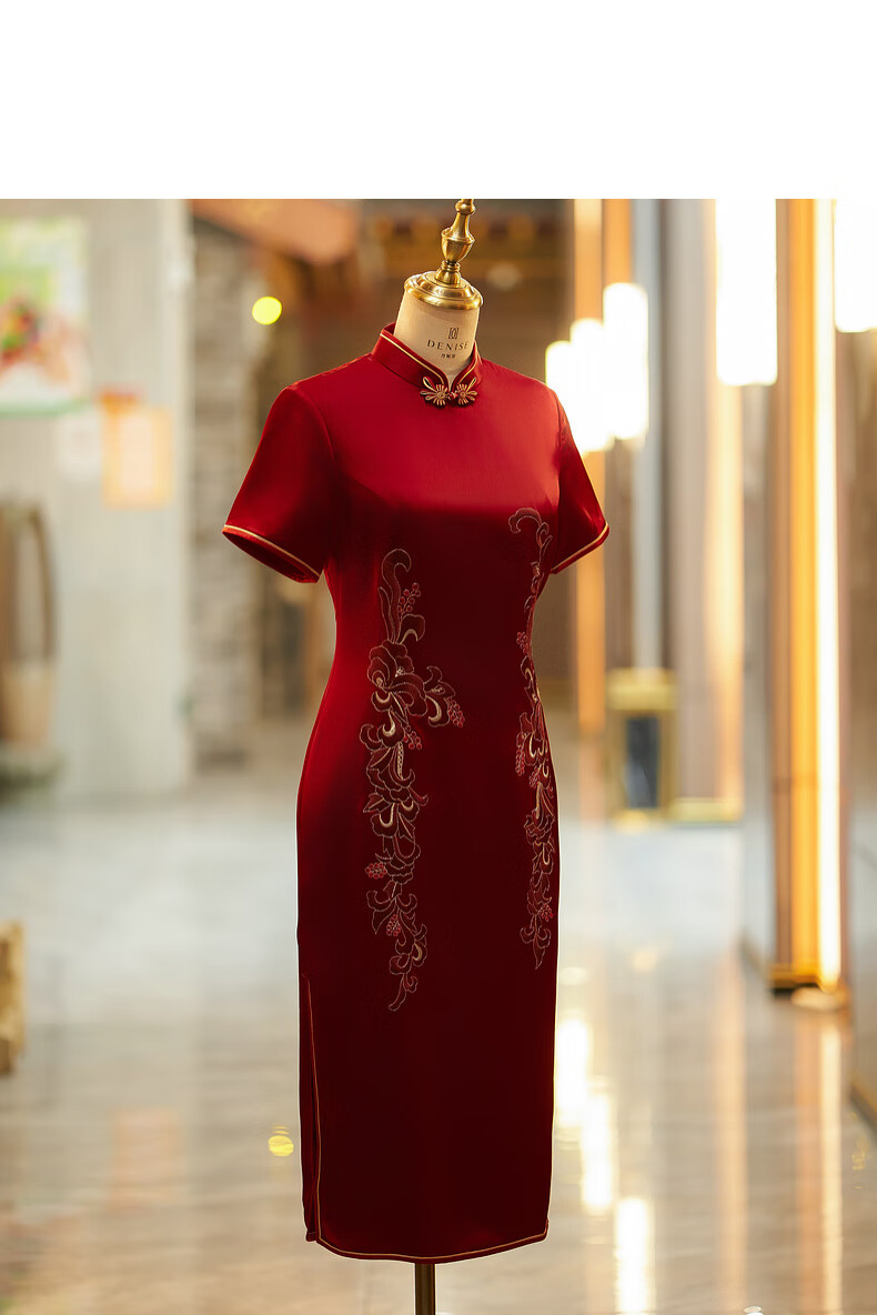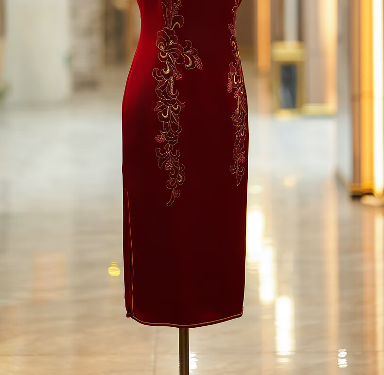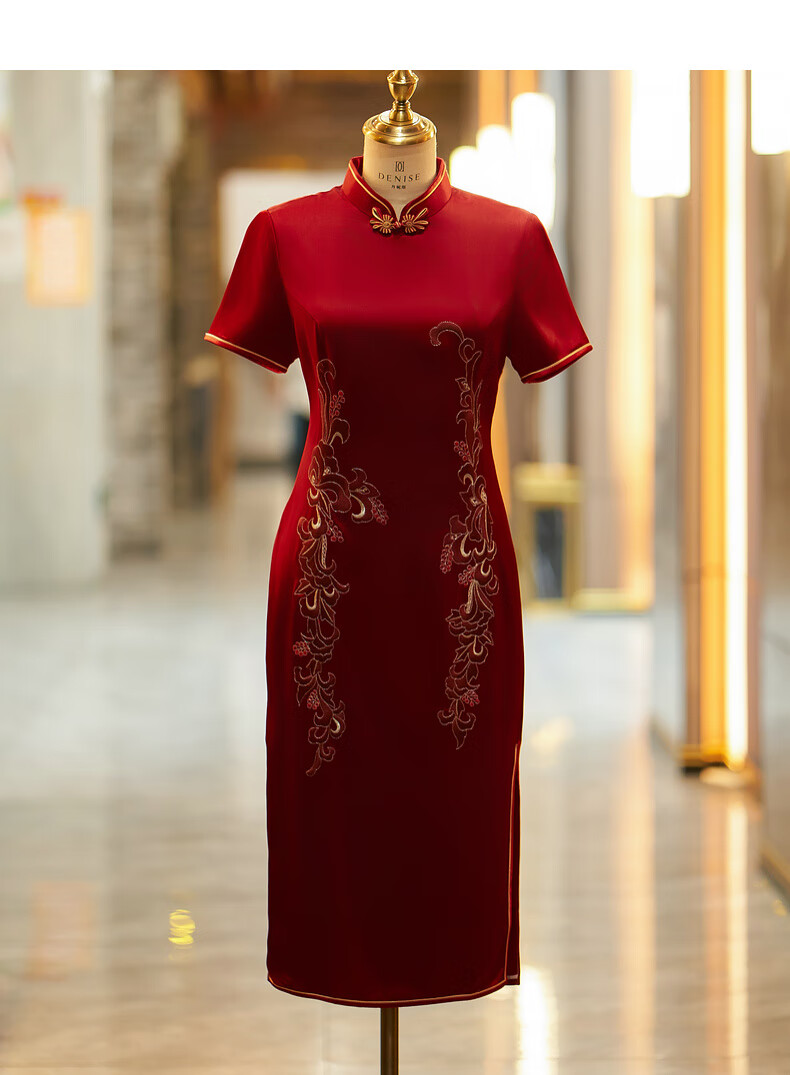 Filial piety, noble youth, 2025 new style happy mother-in-law cheongsam May Day wine red happy mother wedding banquet mother-in-law dress for women red XL
