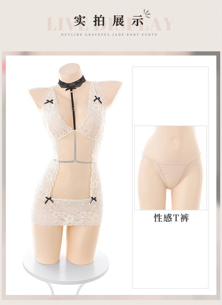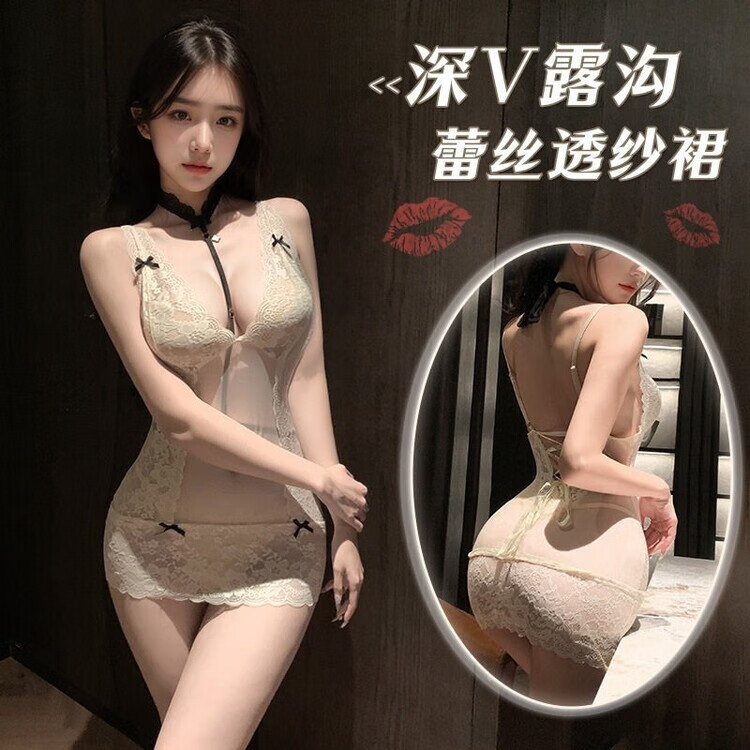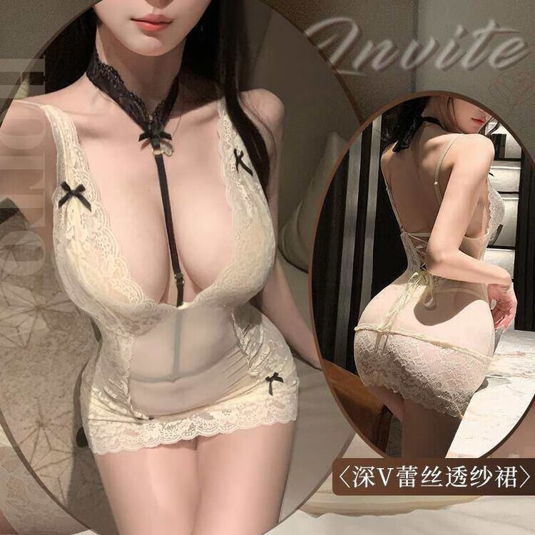 Want to try large size fat mm underwear, high-end lace temptation hip-covering nightgown, feminine pure desire mesh suspender nightgown, black + 5001 black