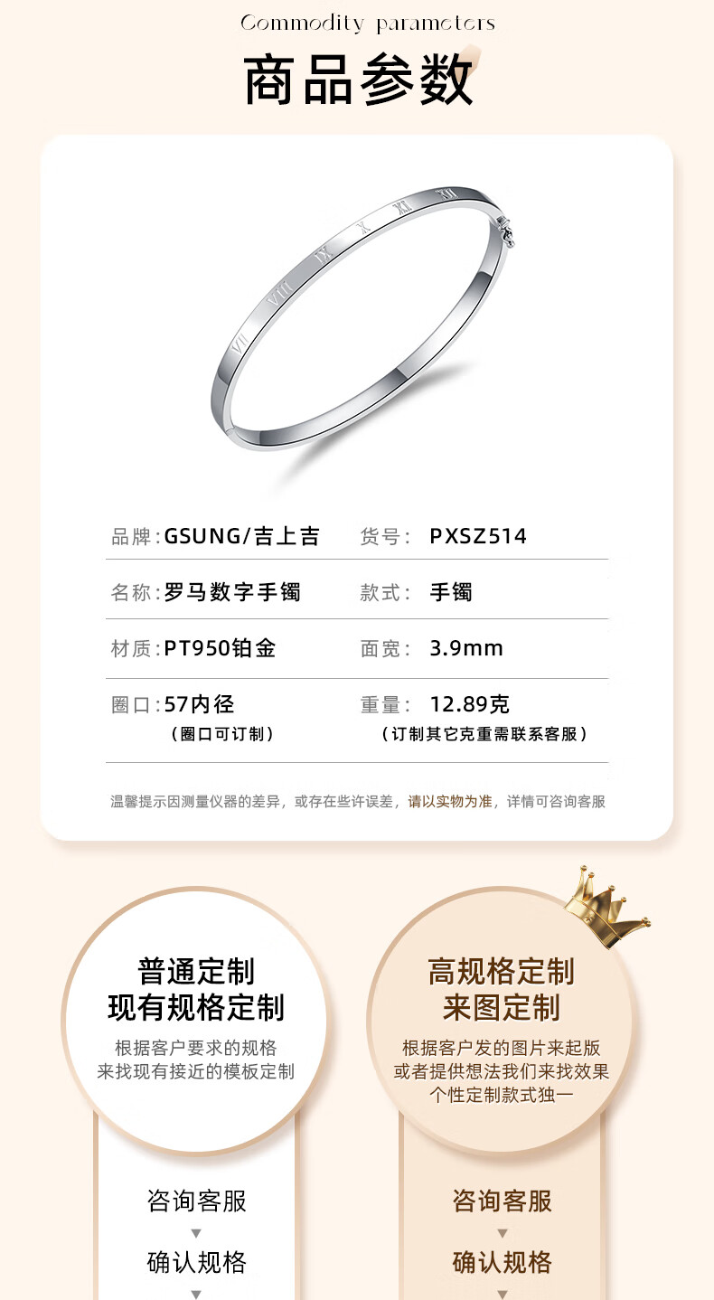 GsunG platinum PT950 fashion plain ring bracelet for women, pure white gold Roman numeral bracelet, simple hollow imperial concubine bracelet, calculated based on the gold price in the store on the day