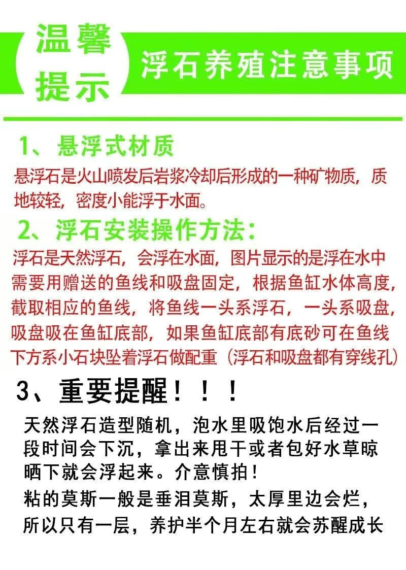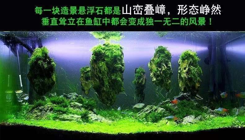 Runhuanian fish tank, water plant landscaping stone, Moss pumice stone, Avatar suspended stone, lazy water plant, water feature, fish and shrimp avoidance ornament, suspended stone package 2, two large and three small, sticky with water