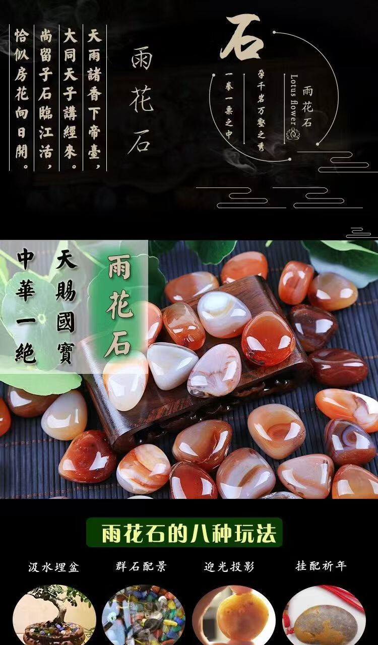 Runhuanian colorful pure colorful rain flower stone agate stone fish tank landscaping multicolored stone hydroponic flower pot color polishing 6 pieces Not supported Remarks Be careful when shooting