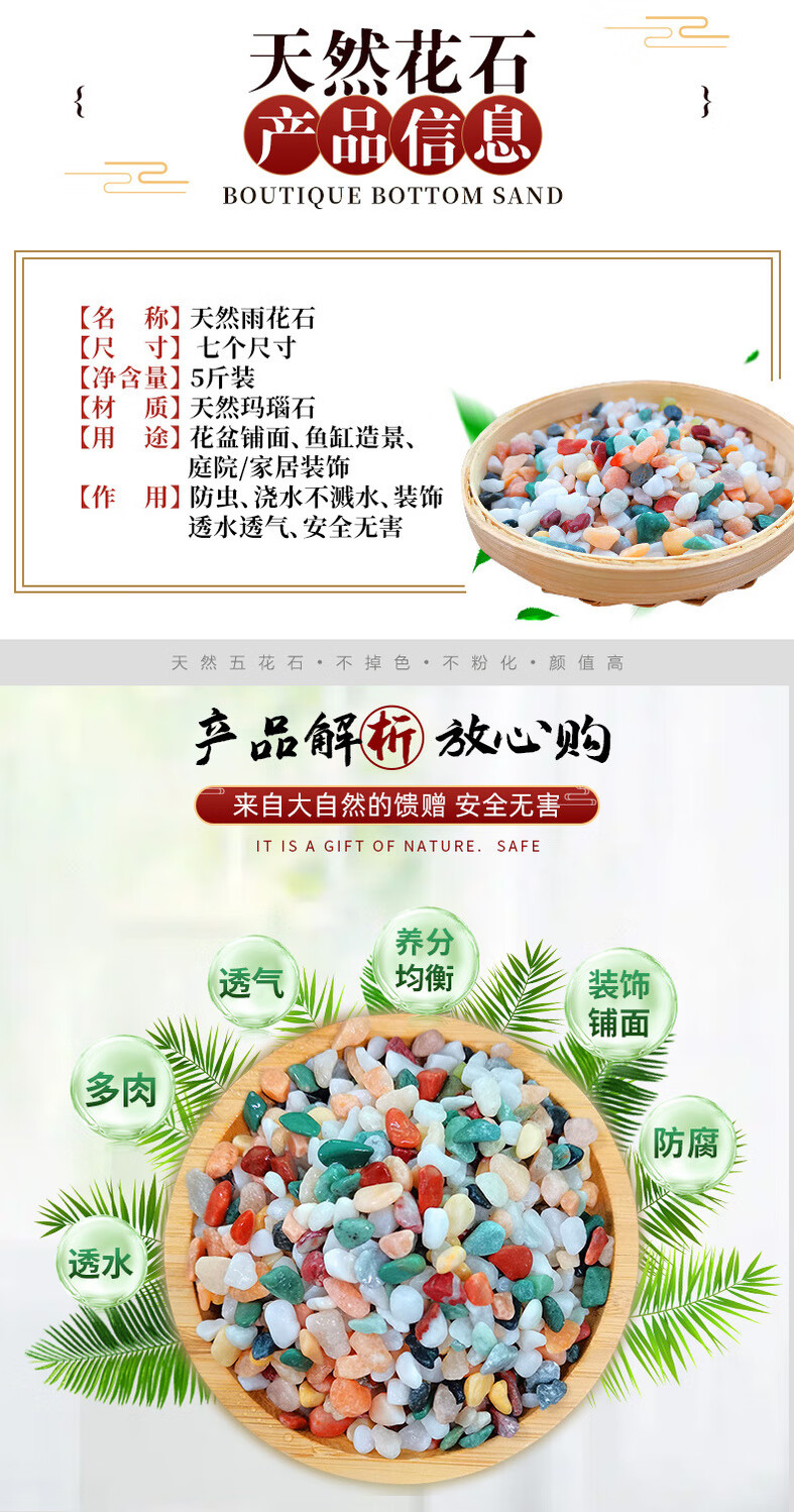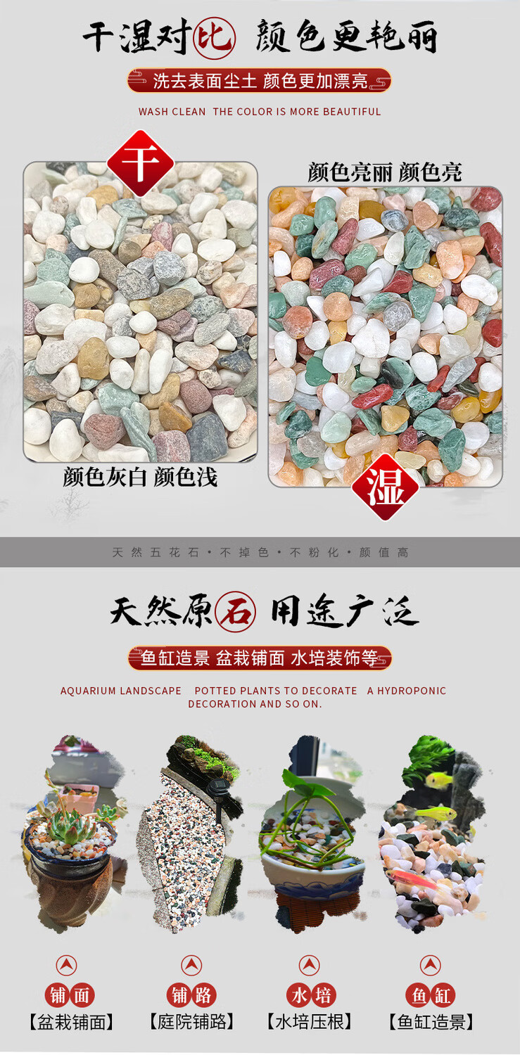 Runhua New Year's Five Colorful Small Stones Hydroponic Tulips Flower Culture Stones Succulent Paving Stones Five-Flower Stones 5-8mm 122g
