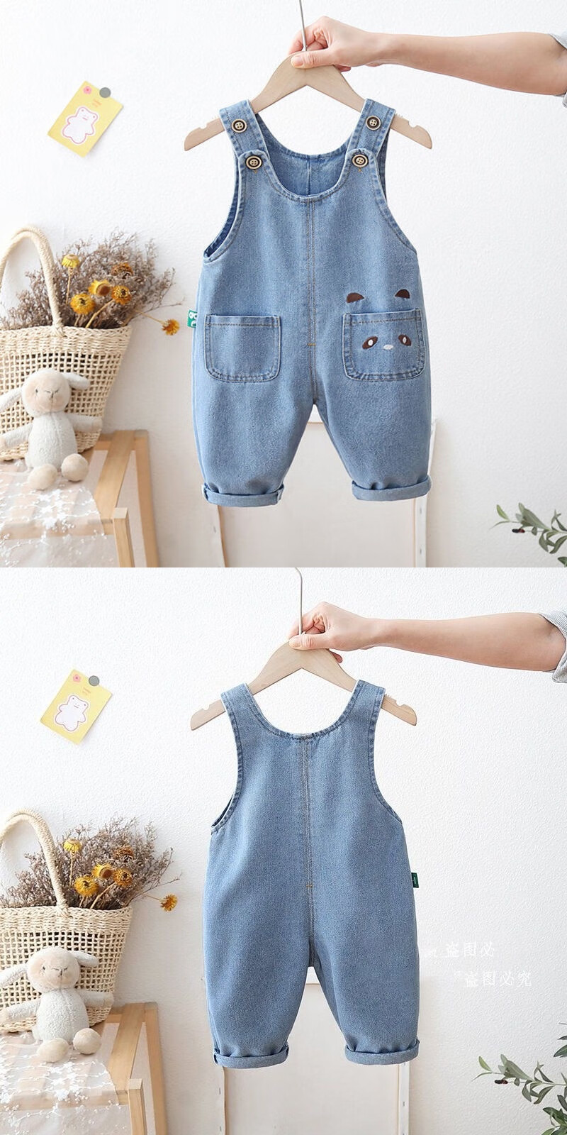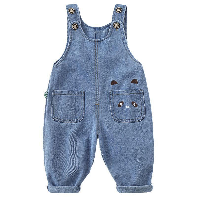 Disney (Disney) baby denim overalls, children's spring and autumn long pants for men, girls, and children's overalls, baby jumpsuits, cartoon available, blue 90 (can be opened)